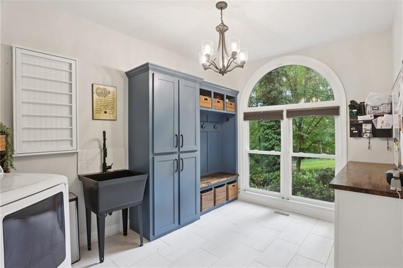 Inside, sophistication meets comfort with a fully reimagined chef’s kitchen featuring expanded space, custom cabinetry, designer shelving, and top-tier finishes. The remodeled mudroom/laundry suite adds elegance and practicality with built-ins, a custom pet feeding station, and artisan shiplap accents.