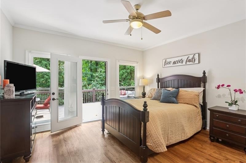 The finished terrace level is an entertainer’s masterpiece, complete with a custom-built bar, additional bedroom, and full bath, blending effortlessly with the home’s elevated ambiance.