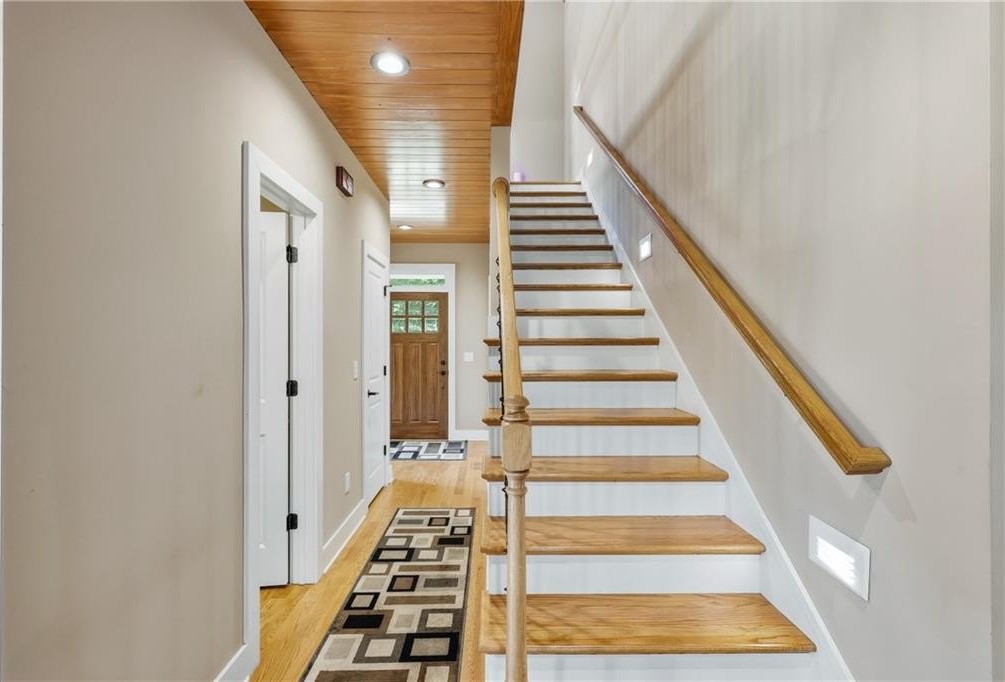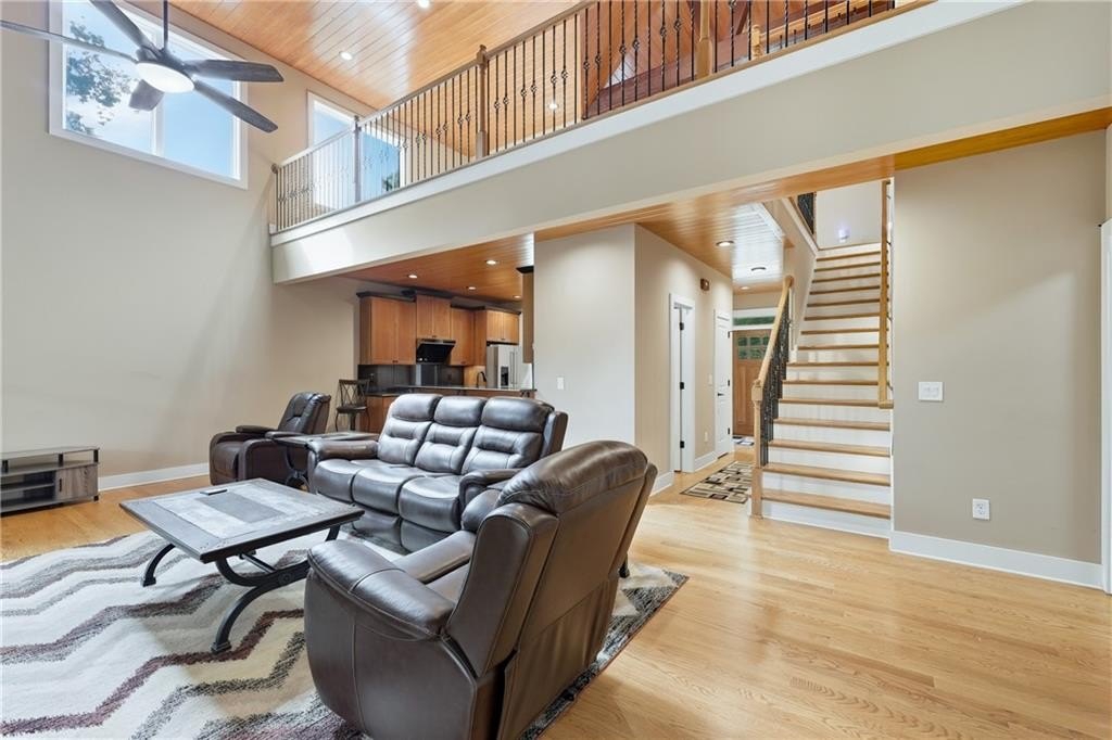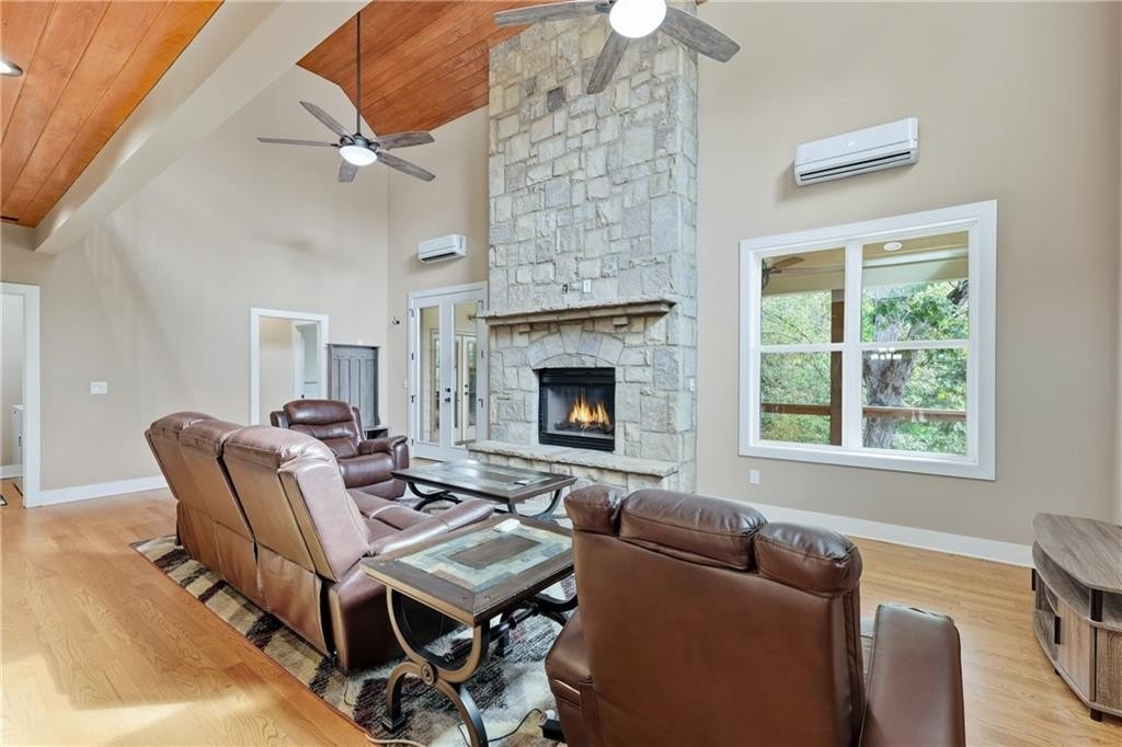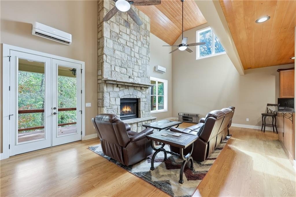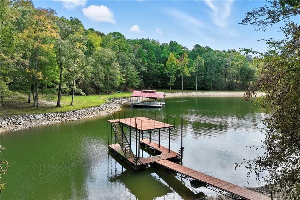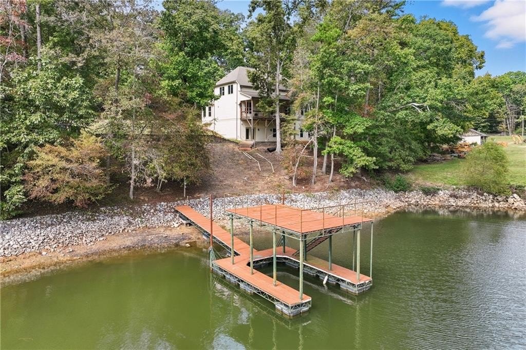 It’s hard to get any closer to the water than this! Nestled on a quiet, deep water cove near Chattahoochee Country Club, this beautiful Lake Lanier home offers the best of lakefront living with a deep-water dock (13' at full pool) and party deck—This will be everyone’s favorite gathering spot. Built in 2016, this thoughtfully designed home combines timeless craftsmanship with modern comfort and architectural detail throughout. The stunning kitchen features stainless appliances, a built-in pantry, and opens to light-filled living spaces designed to capture lake views. The separate dining room off foyer has a coffered ceiling. The main-level owner’s suite opens to a covered porch overlooking the water and includes a luxurious tiled steam shower and spacious walk-in closet. Upstairs, a spacious loft with exposed beams and tongue-and-groove ceiling is perfect for reading, relaxing, or working from home. The unfinished terrace level offers great storage or future expansion potential with a bath stubbed. A whole house Generac generator ensures peace of mind all year long. You will love the peace and quiet of this incredible lake lot—deep water, gentle walk to the shore, and unbeatable location close to Gainesville, schools, hospital, country club and all the lake’s amenities.