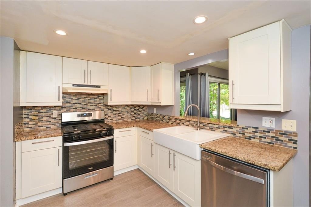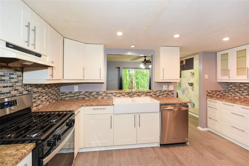 Step inside to a bright and inviting open floor plan with thoughtful updates throughout—accent walls, recessed lighting, and a cozy fireplace that adds warmth and character. The kitchen features granite countertops, stainless steel appliances, a farmhouse double-bowl sink, a convenient coffee bar, and a spacious pantry, making everyday living both functional and stylish.