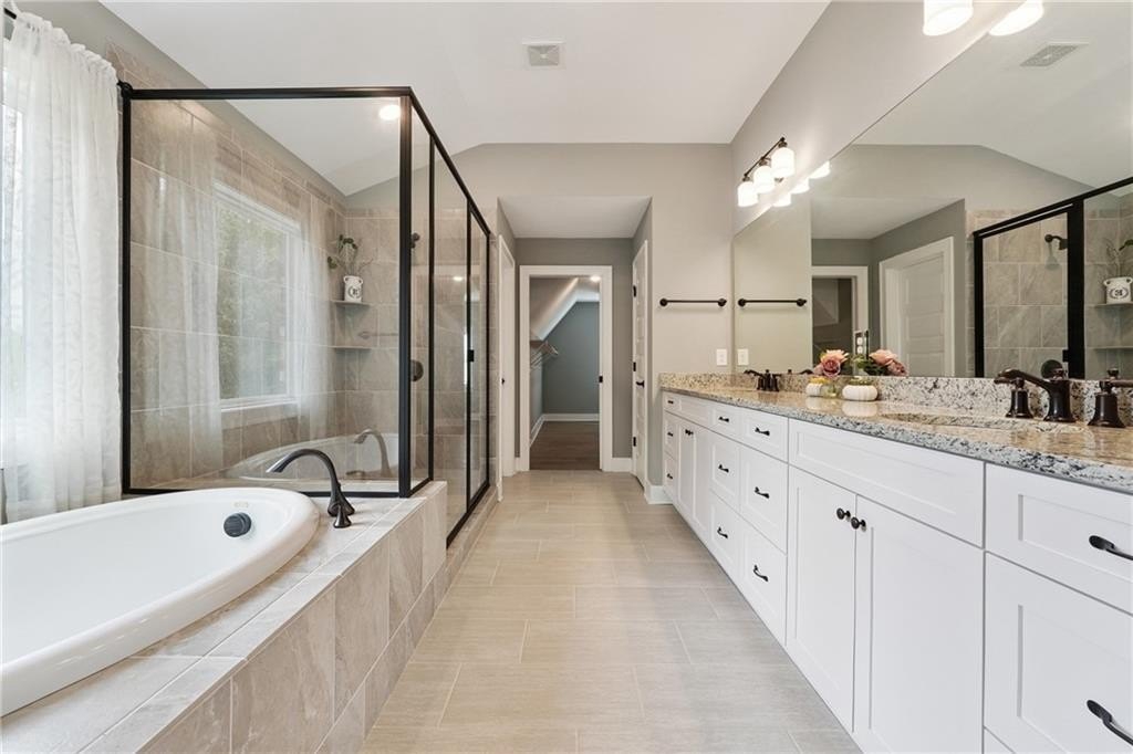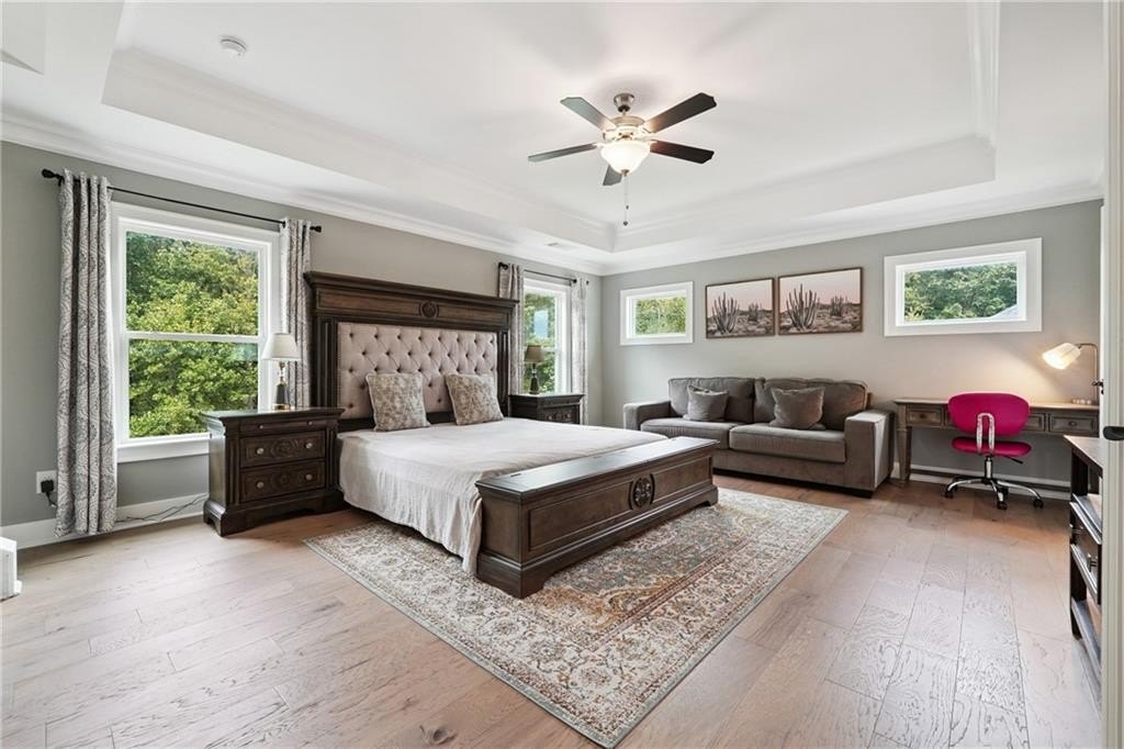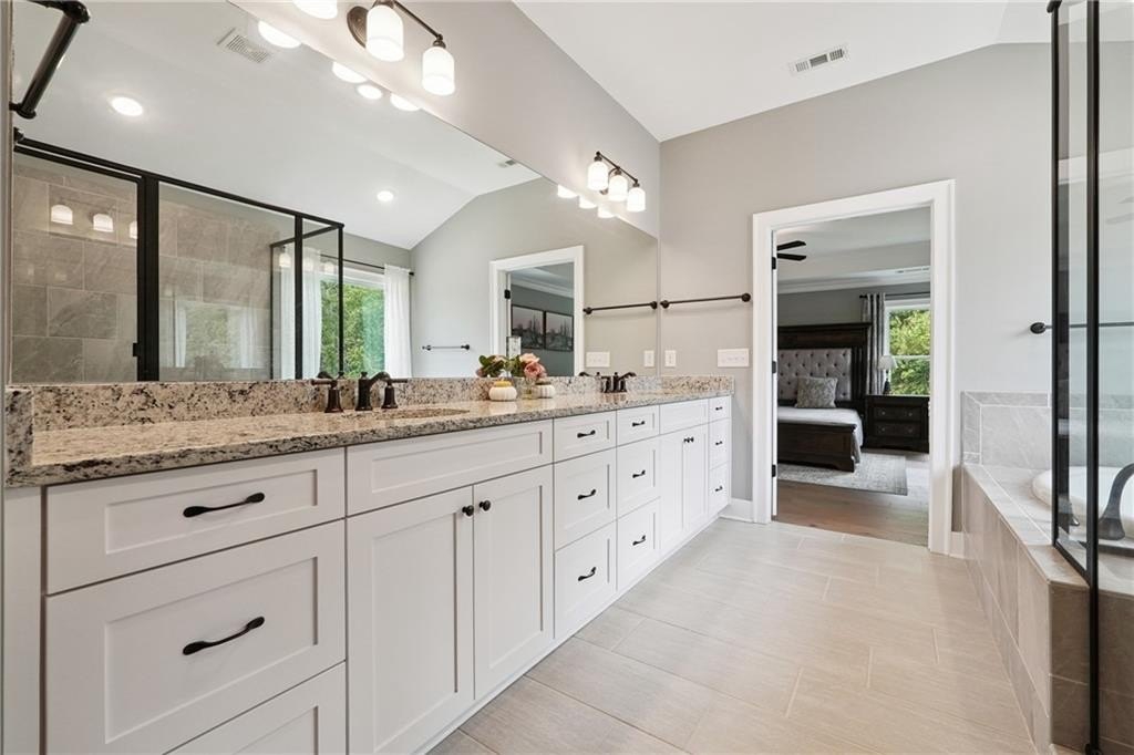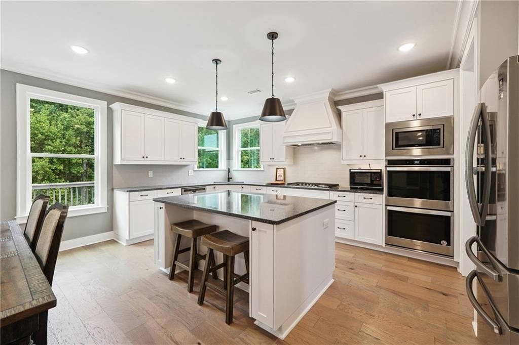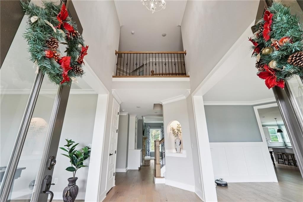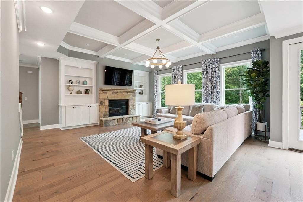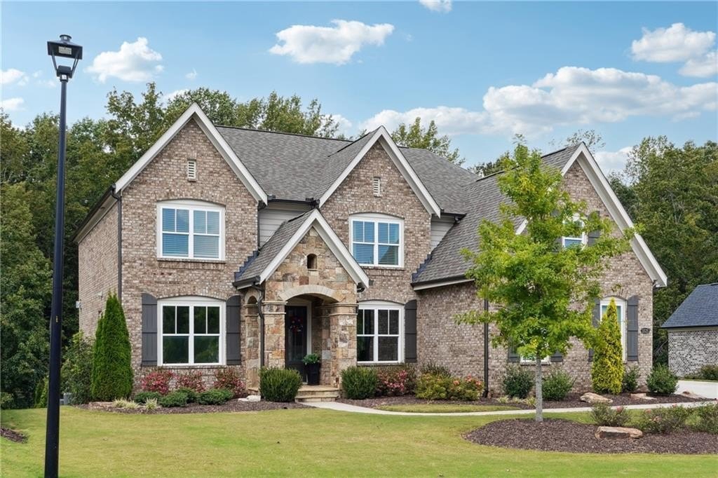 Breathtaking custom craftsman estate with 3 fully finished levels in sought after Montebello community. Walk across the street to the Olympic pool, tennis/pickle ball courts and clubhouse. Grand 2-story entry with custom double door entry with gleaming hardwood floors. Chef’s kitchen boasts granite countertops, crisp white cabinetry, an oversized island, and a hidden walk-in pantry, seamlessly flowing into the breakfast nook. Great Room impresses with coffered ceilings, custom built-ins, and a natural stone fireplace. A main-level guest suite with a full bath provides comfort and privacy for visitoMain level also offers a formal dining room and a private office. Upstairs, the owner’s suite is a true retreat, complete with a serene sitting area, spa-inspired bath, and a generous walk-in closet. Three additional bedrooms, two full baths, a media room, and a spacious laundry room complete the upper level. fully finished terrace level expands your lifestyle options—perfect for a home gym, game room, media lounge, or in-law suite—with walk-out access to a peaceful backyard. Additional highlights include a 2-car garage equipped with a Tesla EV charger, combining convenience and sustainability. Schedule your showing today!