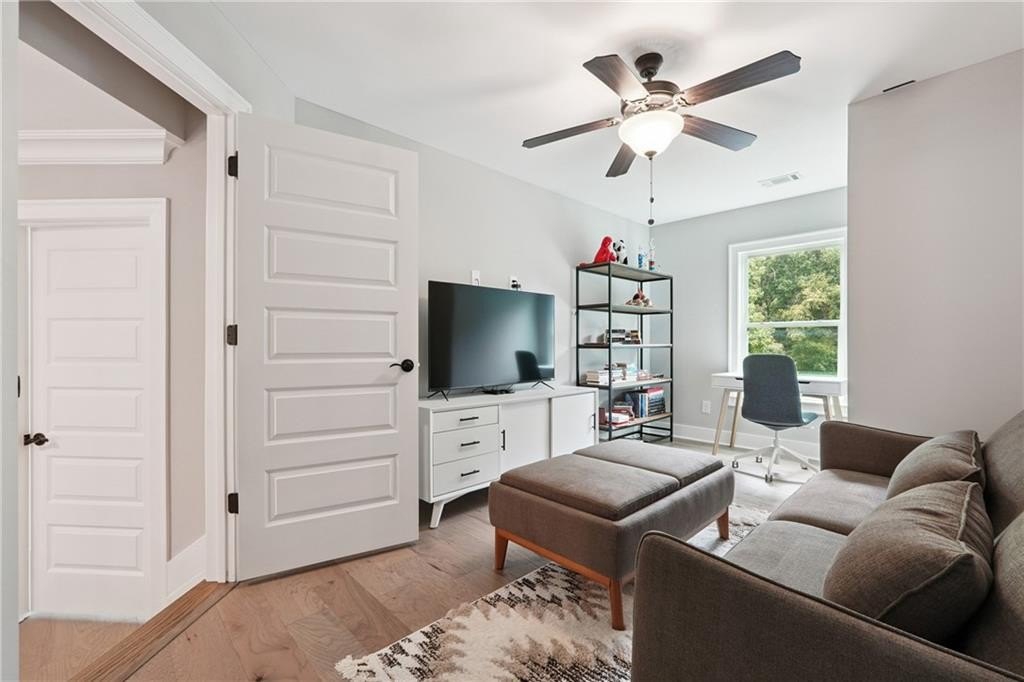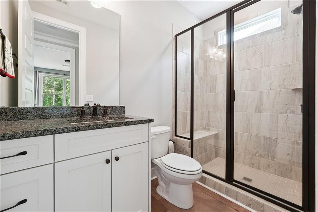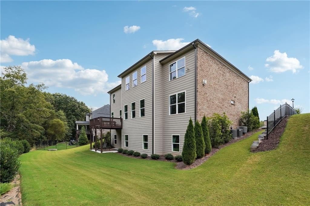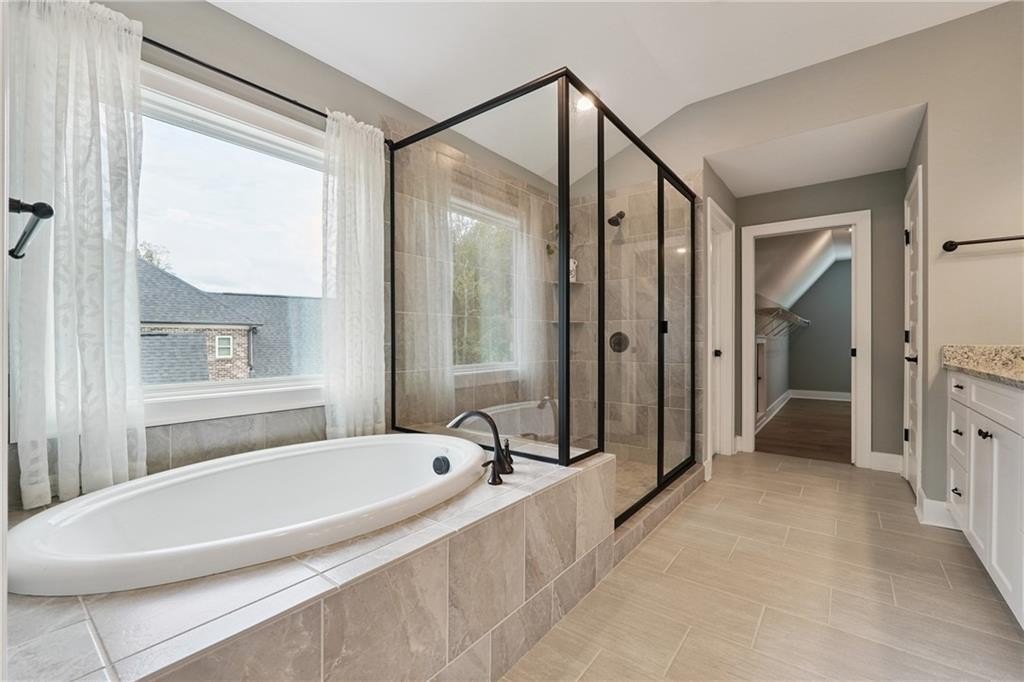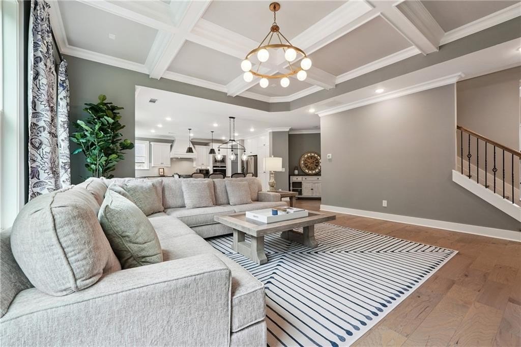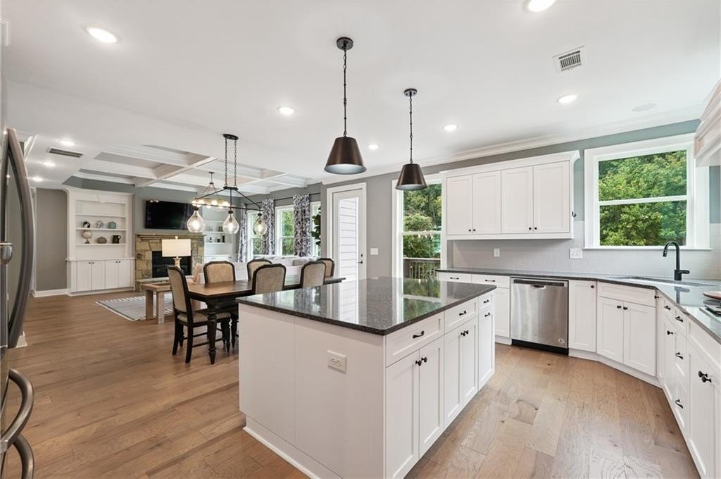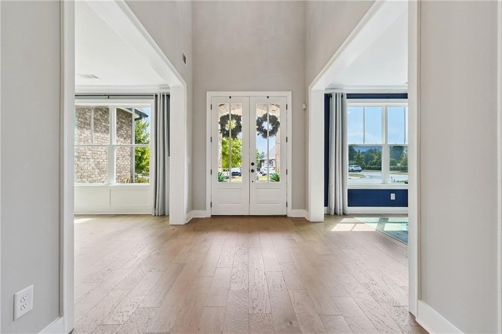 Breathtaking custom craftsman estate with 3 fully finished levels in sought after Montebello community. Walk across the street to the Olympic pool, tennis/pickle ball courts and clubhouse. Grand 2-story entry with custom double door entry with gleaming hardwood floors. Chef’s kitchen boasts granite countertops, crisp white cabinetry, an oversized island, and a hidden walk-in pantry, seamlessly flowing into the breakfast nook. Great Room impresses with coffered ceilings, custom built-ins, and a natural stone fireplace. A main-level guest suite with a full bath provides comfort and privacy for visitoMain level also offers a formal dining room and a private office. Upstairs, the owner’s suite is a true retreat, complete with a serene sitting area, spa-inspired bath, and a generous walk-in closet. Three additional bedrooms, two full baths, a media room, and a spacious laundry room complete the upper level. fully finished terrace level expands your lifestyle options—perfect for a home gym, game room, media lounge, or in-law suite—with walk-out access to a peaceful backyard. Additional highlights include a 2-car garage equipped with a Tesla EV charger, combining convenience and sustainability. Schedule your showing today!