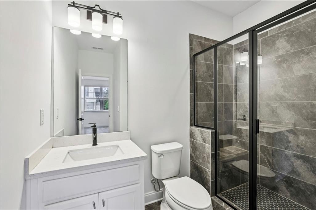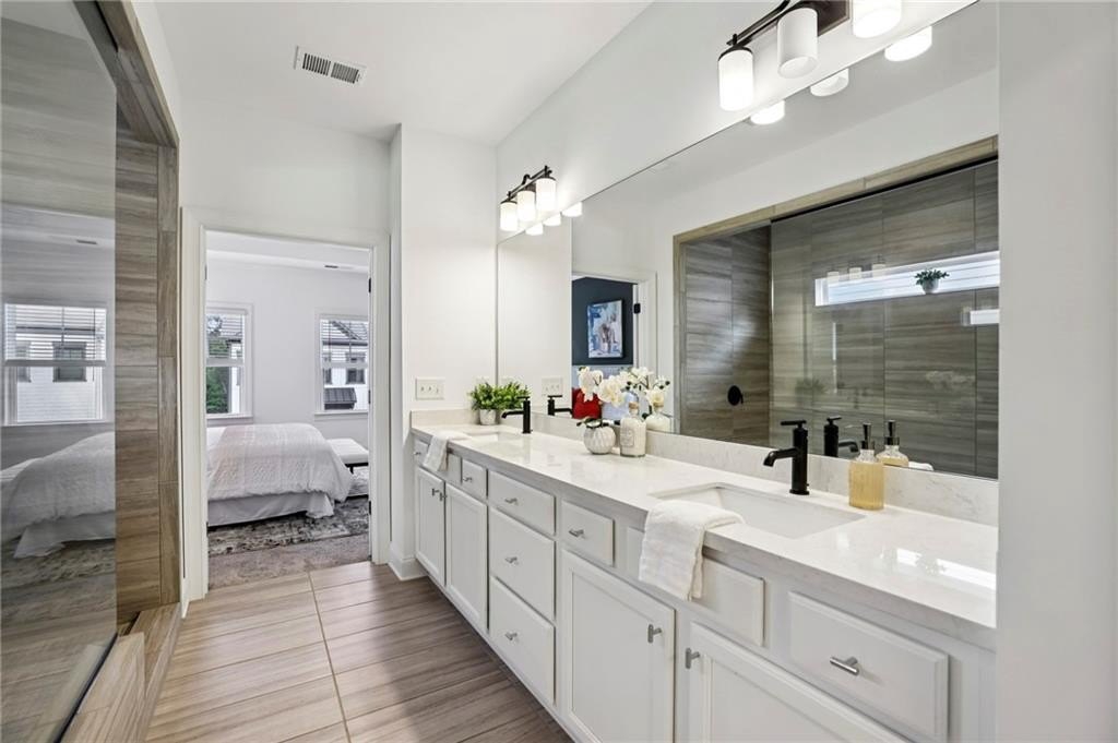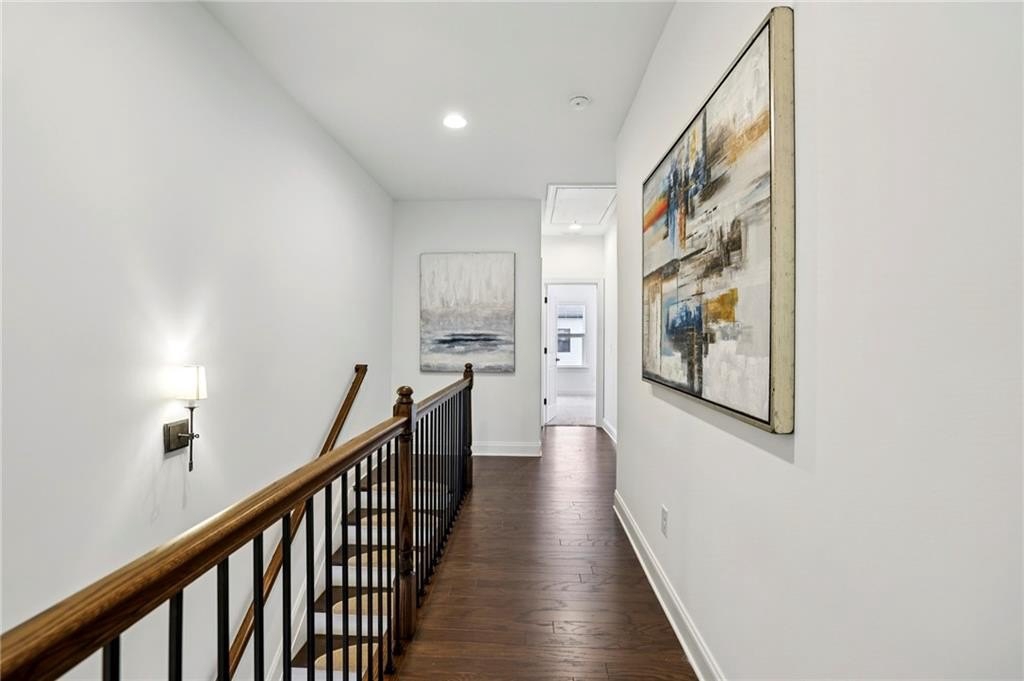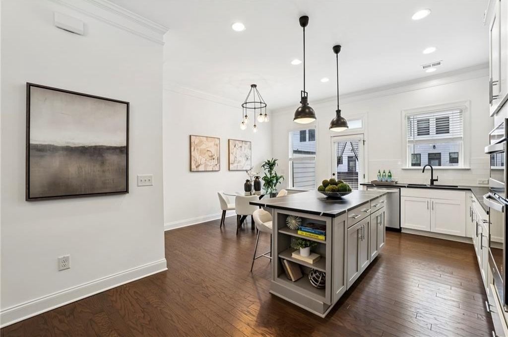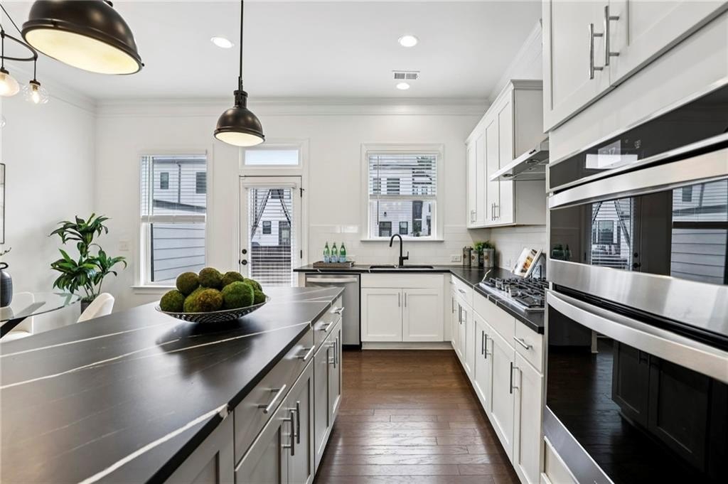 This classy, contemporary townhome in gated Dumont Place is in impeccable condition and priced to sell! Airy and light, the end unit has an open floor plan, perfect for casual everyday living and for entertaining friends. The living area features hardwood floors, a cozy fireplace with gas logs, upgraded lighting and a seamless flow to the wonderful gourmet kitchen. The striking quartz-topped island is the kitchen centerpiece and the upgraded appliances include a 5-burner cooktop and a sleek, modern vent hood. A deck off of the kitchen further extends the living area. The primary suite is spacious with a wonderful bathroom with a large vanity and an over-sized shower. The terrace level has great light in all of the rooms and is perfect for guests, an office or work-out space. The two car garage has good storage space with built-in storage racks that keep all of your items off of the floor! The resort-style community amenities include a saltwater pool with sundeck and cabana, grilling stations, private walking trails and a private community park. Unincorporated Dekalb County taxes and great schools are also benefits of this location. The community is just steps from South Peachtree Creek Trail—leading to Medlock Park, Mason Mill Park, Agape Tennis and Pickleball Center, and Emory University’s Clairmont Campus. Located just minutes from major roadways, CHOA, CDC and the vibrant Downtown Decatur square, you'll have easy access to dining, shopping, and entertainment.