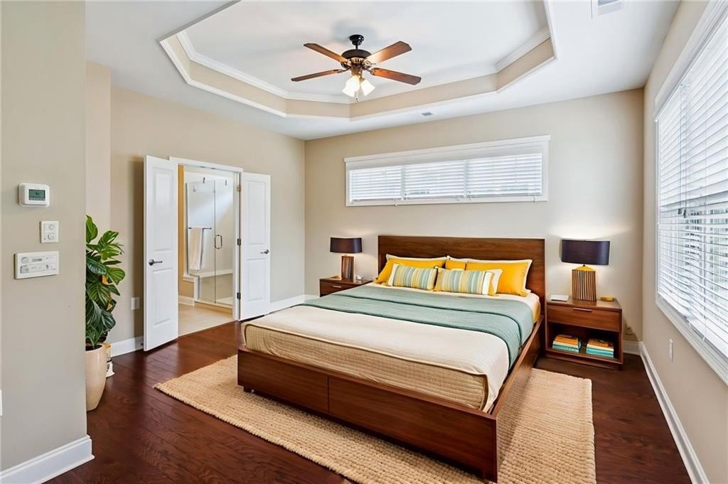 Upstairs, you’ll find a large loft area—perfect as a media room or second living space—plus a third bedroom, full bath, and dedicated office area for remote work or hobbies. The fully finished terrace level is a spacious family room and two private bedrooms, and a covered patio with backyard access—ideal for multi-generational living or entertaining. Nestled in a thriving active adult community, enjoy privacy while still participating in neighborhood events, social gatherings, and amenities. Just minutes from dining, shopping, Northside Cherokee Hospital, and leading medical professionals.
