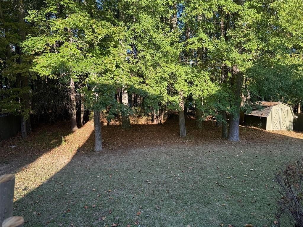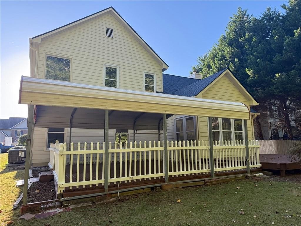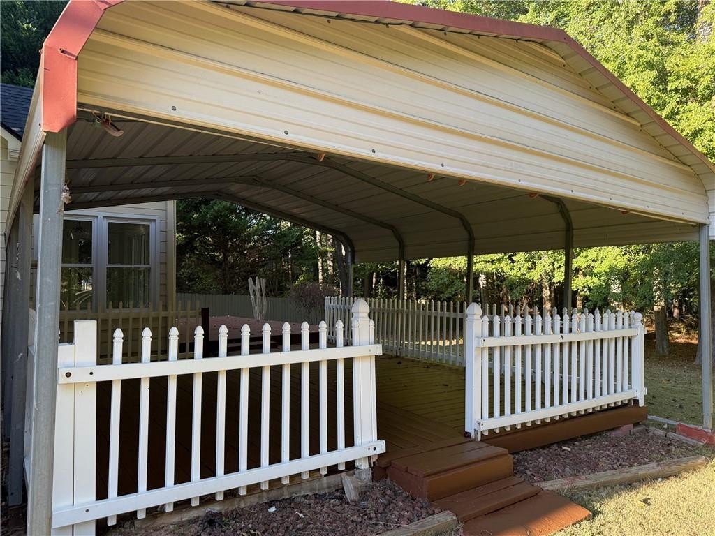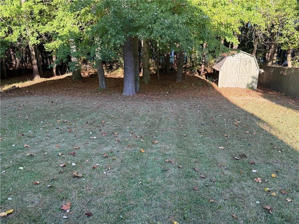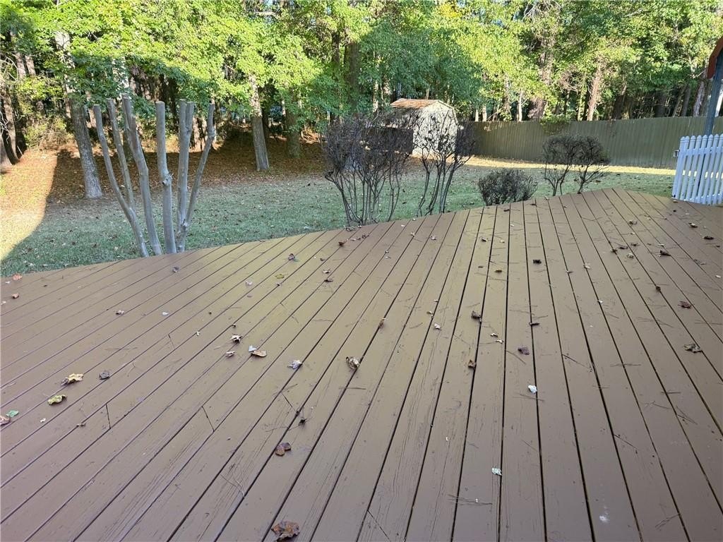 Located in the desirable location of West Cobb. Large, level yard, private back yard as you enjoy your morning coffee from your deck and enjoy family gatherings under the covered outdoor space in the back yard next to the deck. There is a storage building in the back. Large entry area and open concept