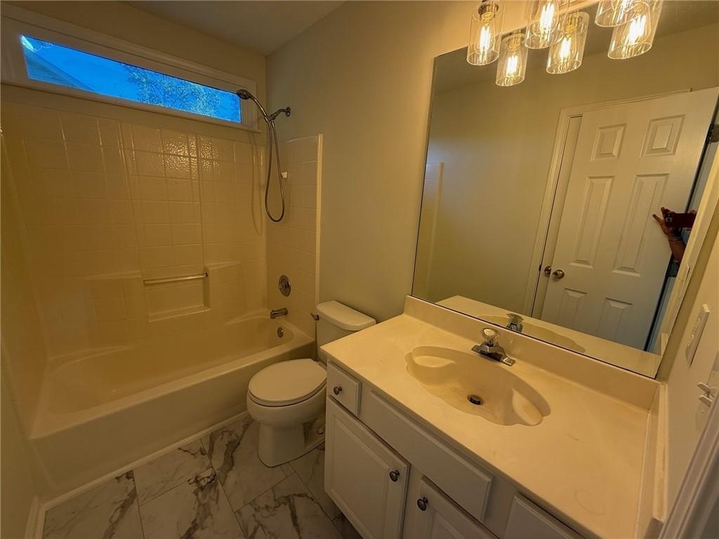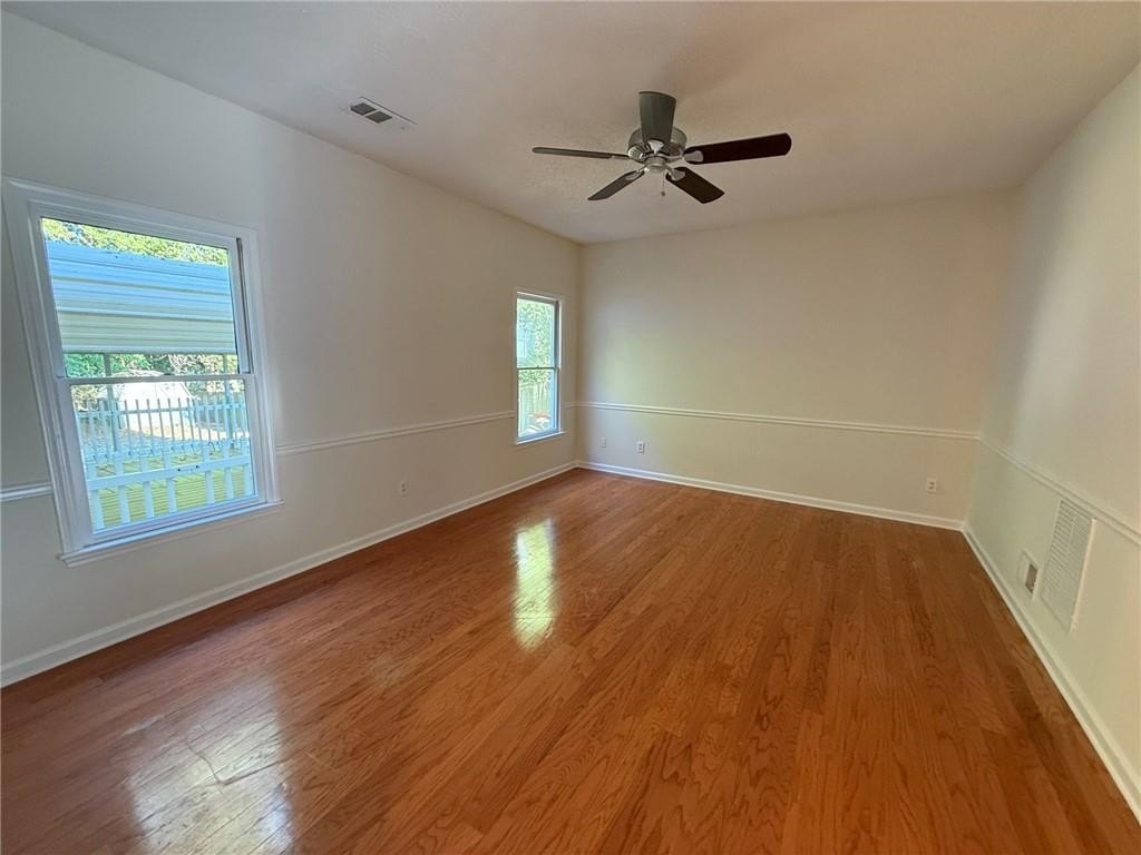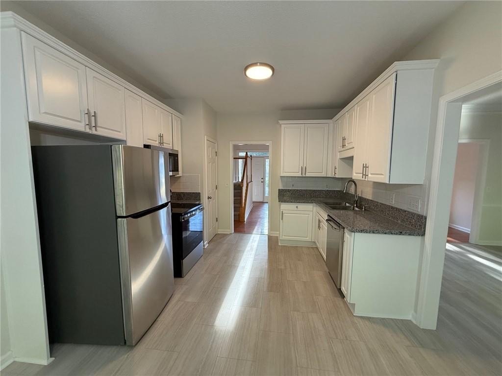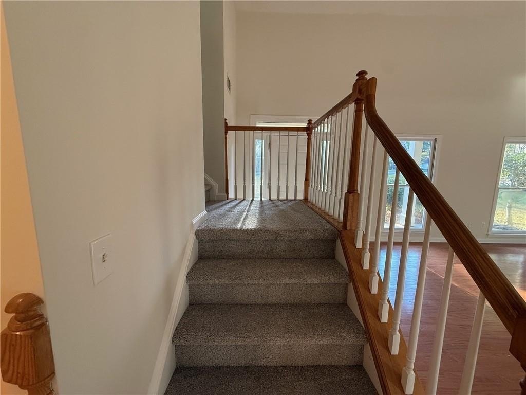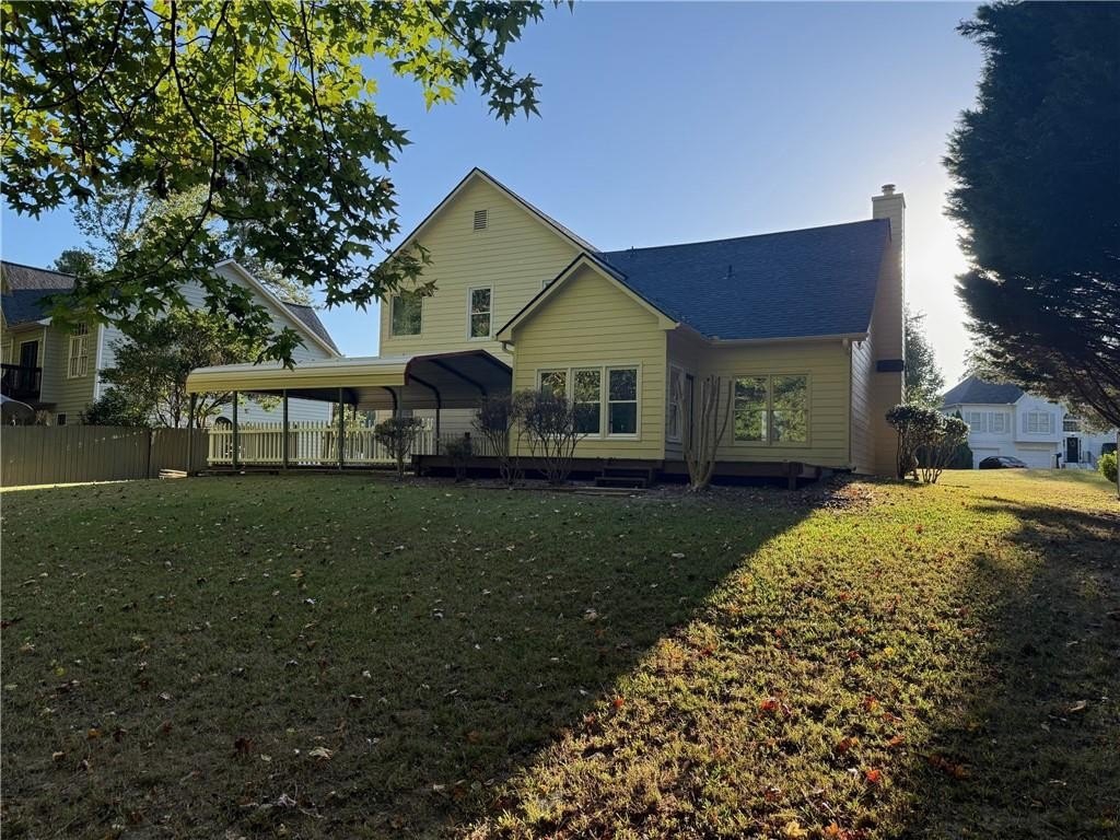 Located in the desirable location of West Cobb. Large, level yard, private back yard as you enjoy your morning coffee from your deck and enjoy family gatherings under the covered outdoor space in the back yard next to the deck. There is a storage building in the back. Large entry area and open concept