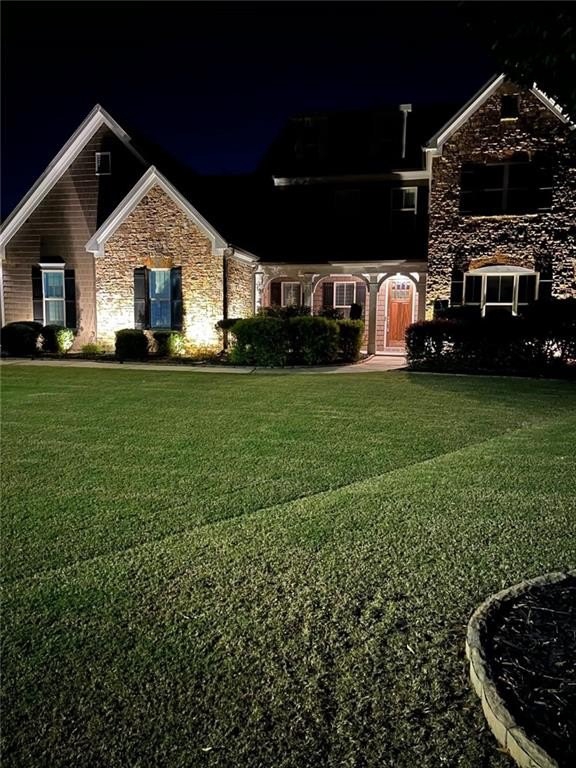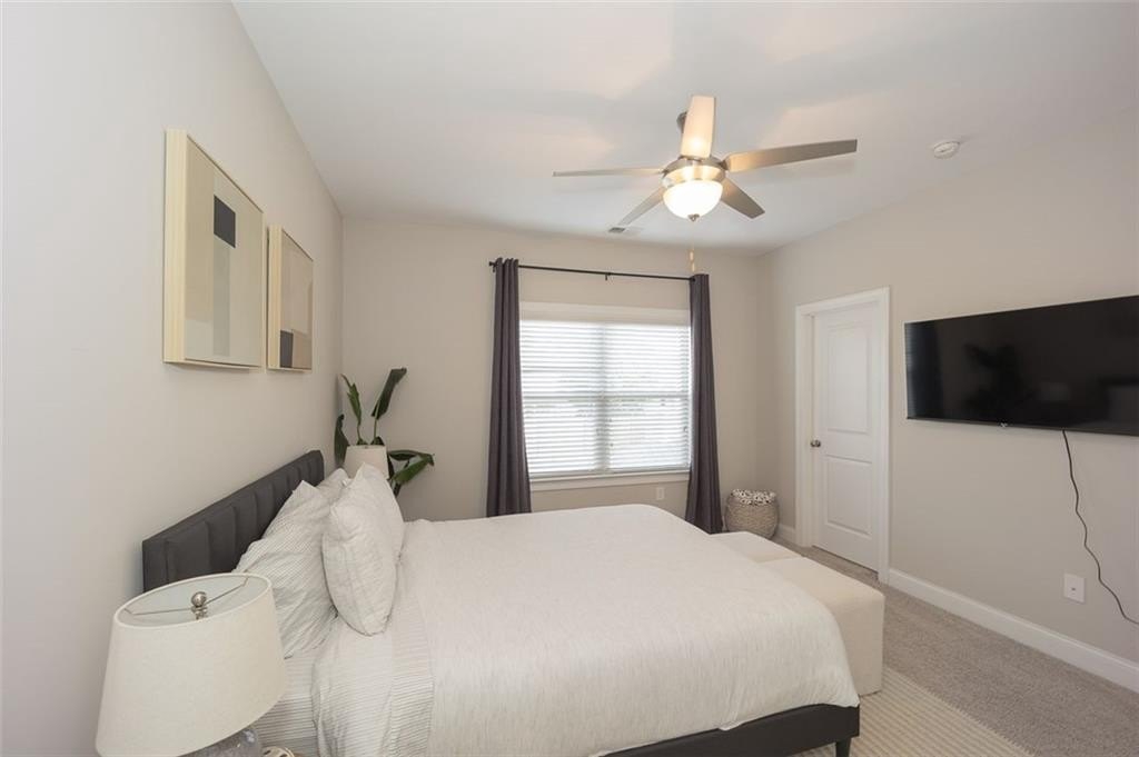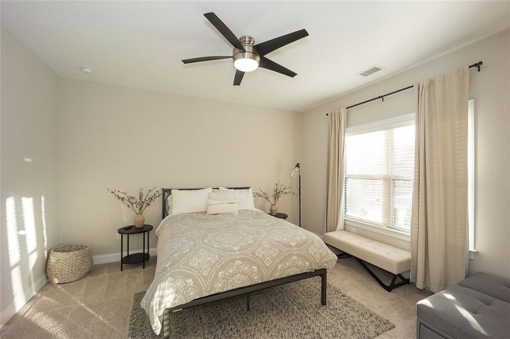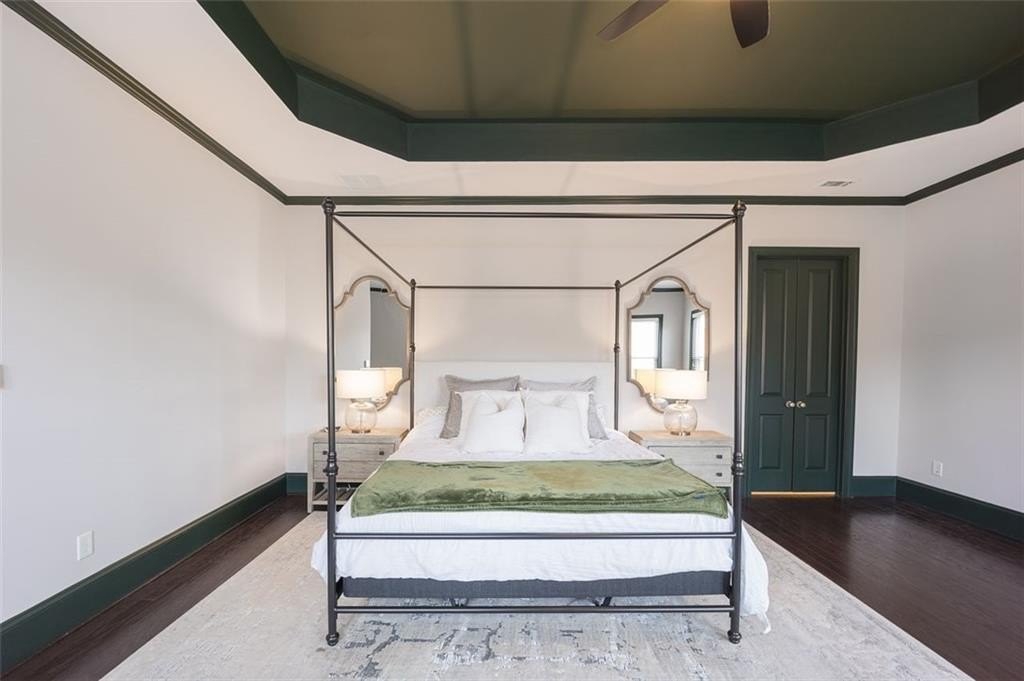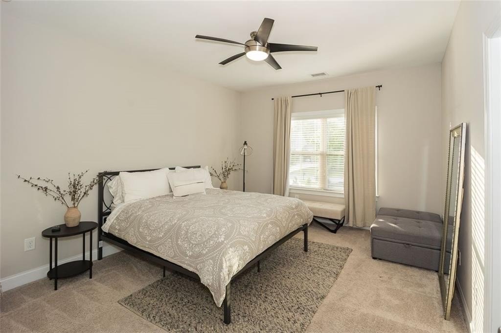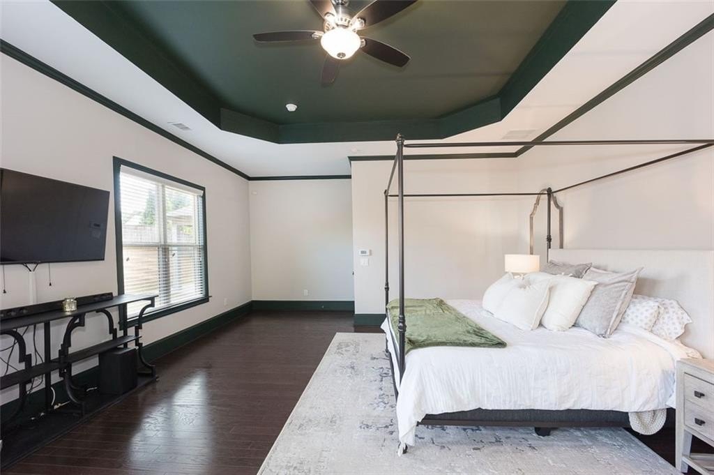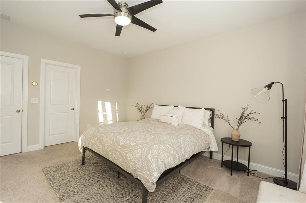 The kitchen is equipped with double ovens, stainless steel appliances, granite countertops, and a spacious center island overlooking the family room and breakfast nook. Also located on the main level is an oversized primary bedroom suite, featuring a large walk-in shower, garden tub, dual vanities, and a generous walk-in closet with direct access to the laundry room. An additional bedroom and full bath complete the first floor.