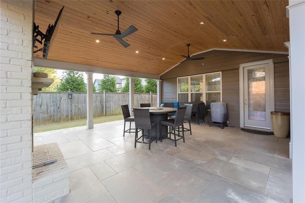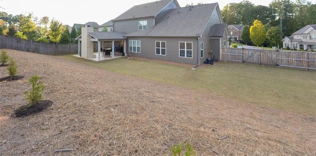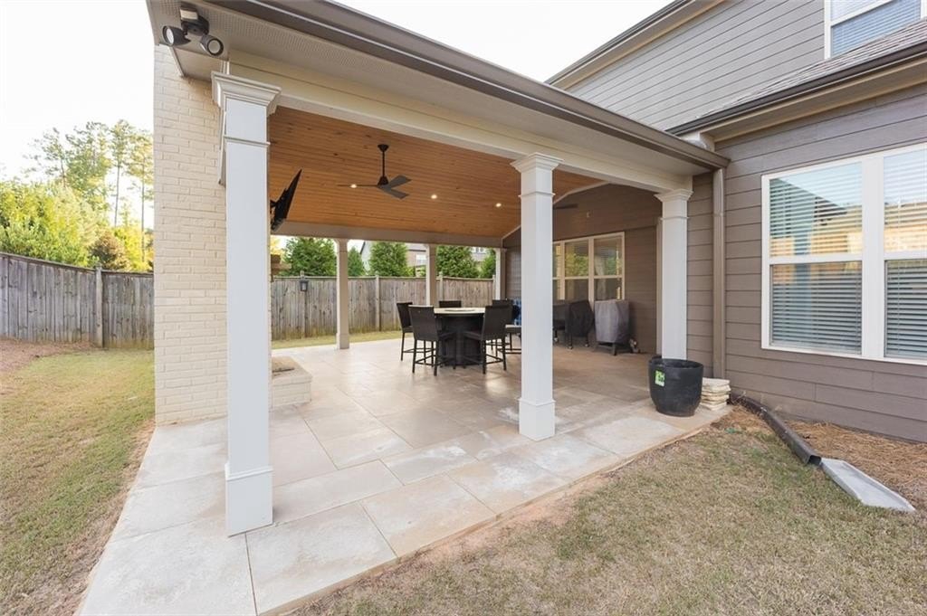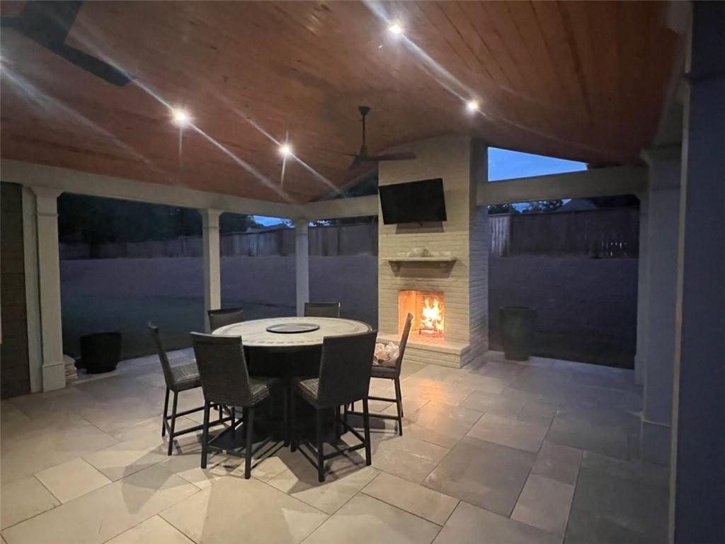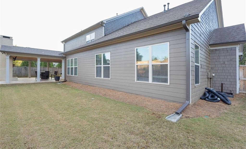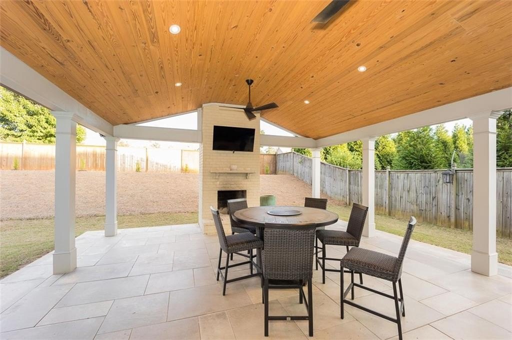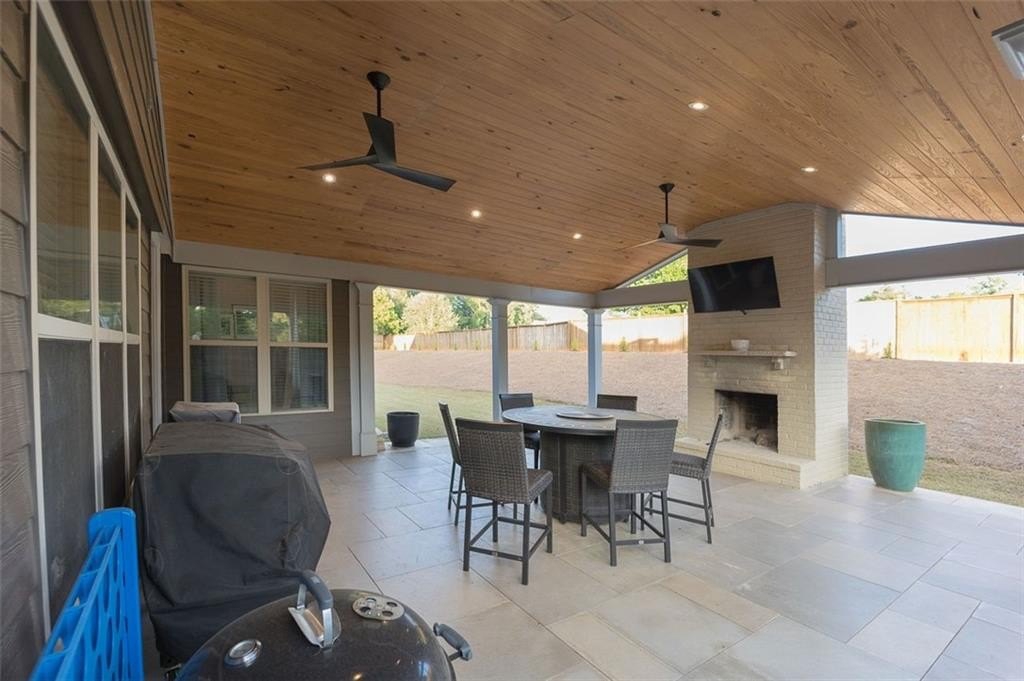 Upstairs, you'll find three more bedrooms, each with its own private bathroom and roomy closet, plus a sizable media room perfect for movie nights. The covered patio outside offers plenty of seating and includes a wood-burning fireplace, while the large backyard is fully fenced for added privacy. Additional amenities include a side-entry three-car garage and ample driveway parking. The community also provides a clubhouse, pool, and park for residents to enjoy.