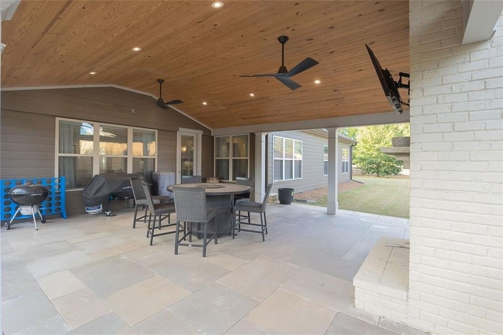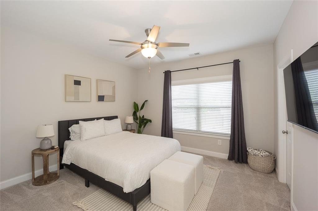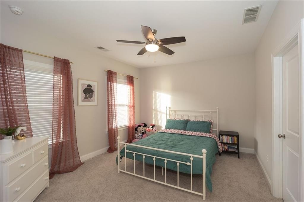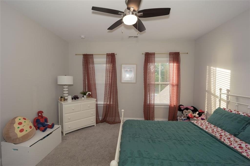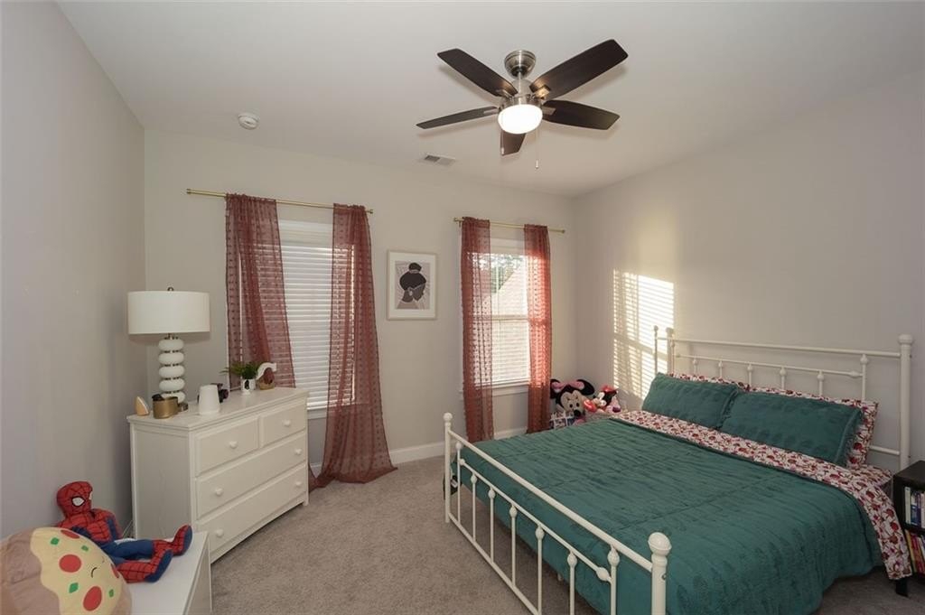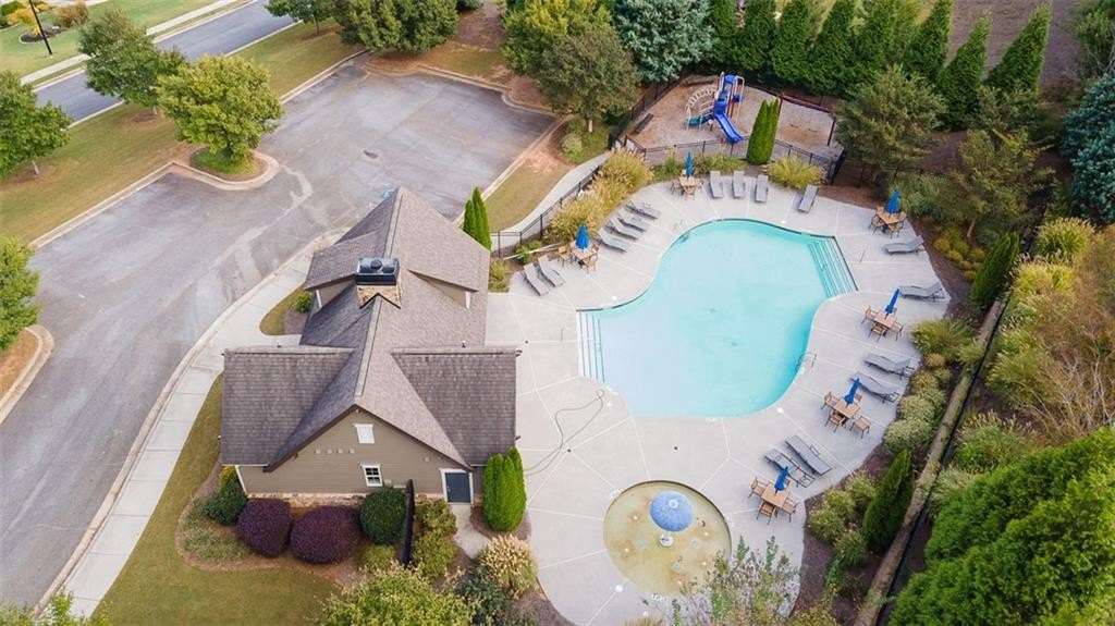 Upstairs, you'll find three more bedrooms, each with its own private bathroom and roomy closet, plus a sizable media room perfect for movie nights. The covered patio outside offers plenty of seating and includes a wood-burning fireplace, while the large backyard is fully fenced for added privacy. Additional amenities include a side-entry three-car garage and ample driveway parking. The community also provides a clubhouse, pool, and park for residents to enjoy.