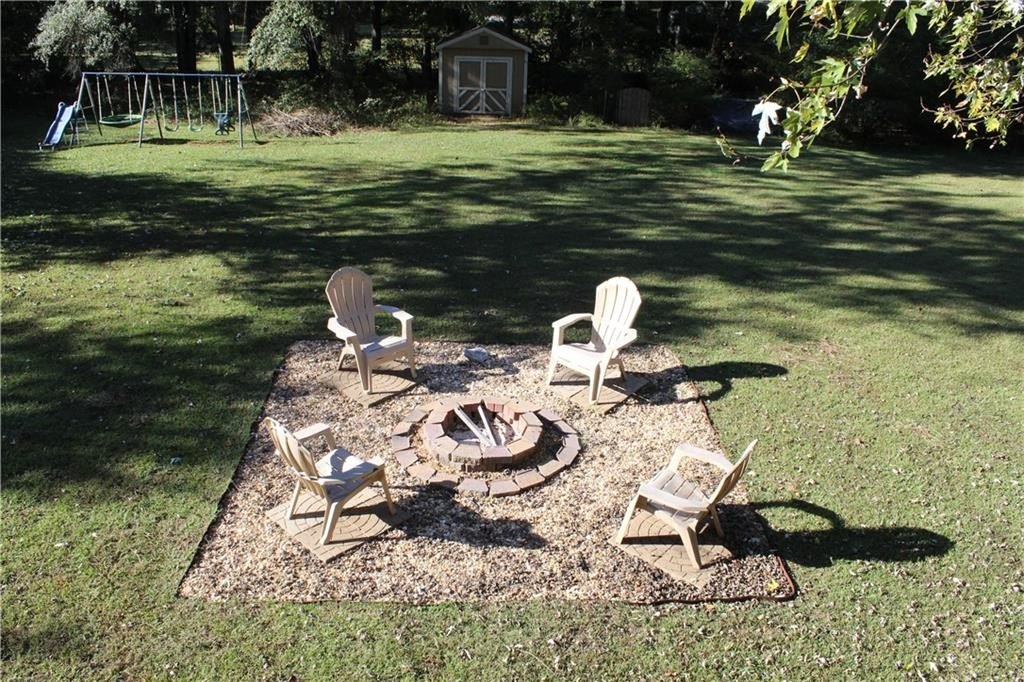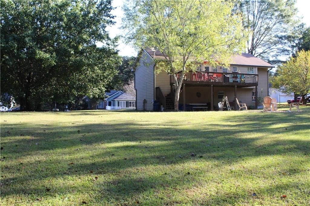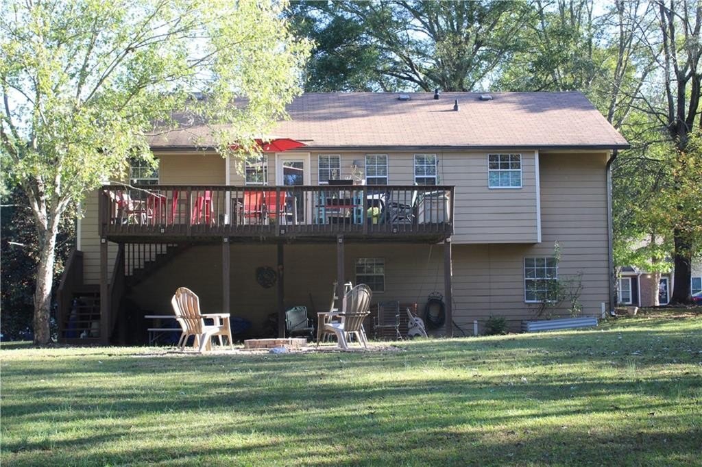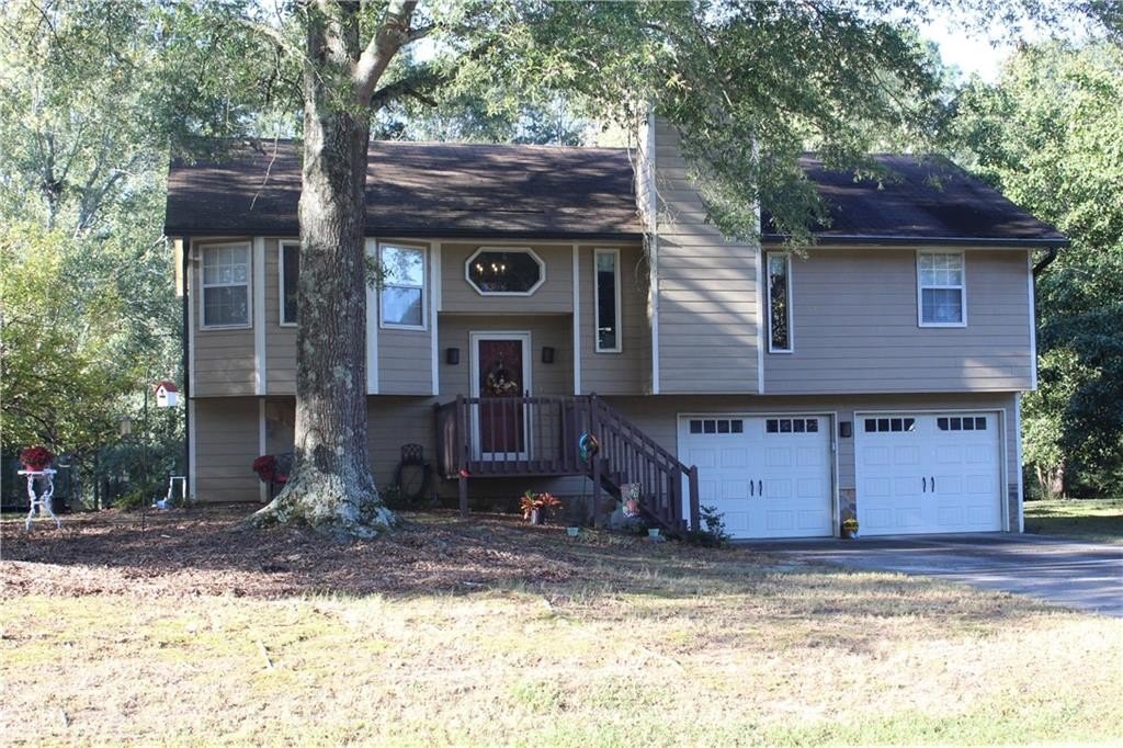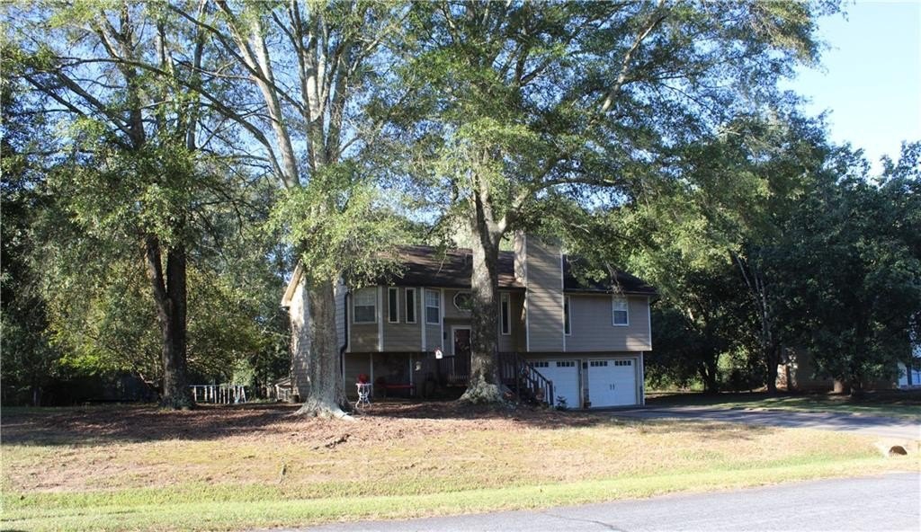 This lovely home offers a spacious floor plan for entertainment in the central hub or out on the large back deck overlooking a grand yard. The quaint fire pit will be perfect for relaxing outdoors and staying toasty warm with the coming fall temps. The outbuilding can serve as extra storage or make it your private art studio in the midst of nature’s beauty. Your pups have a place too in the 30x50 fenced dog run with a doghouse already in place. The interior of the home has 4 bedrooms tucked away for privacy with a split floor plan. The Master Bedroom has a large bay window view of the beautiful front yard oak trees, features vaulted ceilings, a large walk-in closet, ceiling fan, and a private master bath with soaking tub and separate shower. Bedrooms 2 and 3 are adjacent a full bath also conveniently located off the living room and on the opposite side of the home. High ceilings and natural light fill the kitchen, which has lots of cabinetry, tiled backsplash and stainless-steel appliances. The living room has a natural wood-burning stone fireplace where you can cozy up with family. And the lower level of the home has an oversized large 4th bedroom, media room, or playroom with tiled ceramic floors. There is also a 3rd full bath at this level along with additional storage and a utility/laundry room. The garage also offers plenty of storage and parking for two autos with separately controlled remote doors. This fantabulous home sits on over half an acre and has NO HOA! It’s a tranquil and peaceful haven nestled conveniently within a short drive of all conveniences, and easy access to I-85 and Hwy 316/29 University Pkwy. This could be the one for you! Schedule your tour today and let’s make this your new Home Sweet Home.