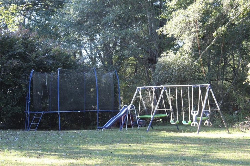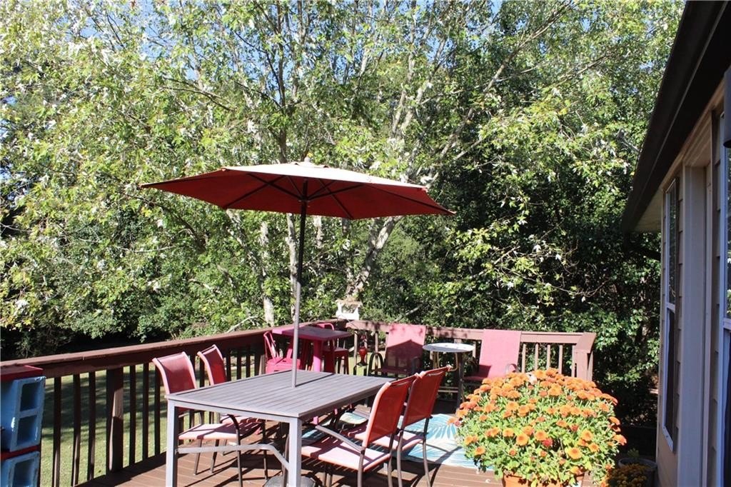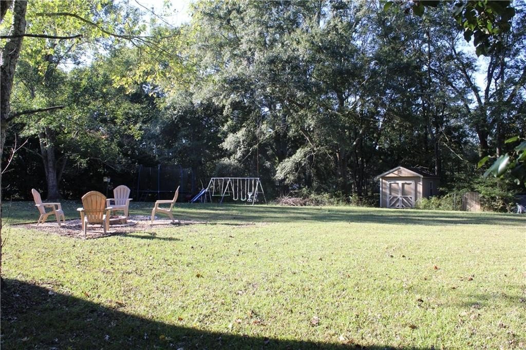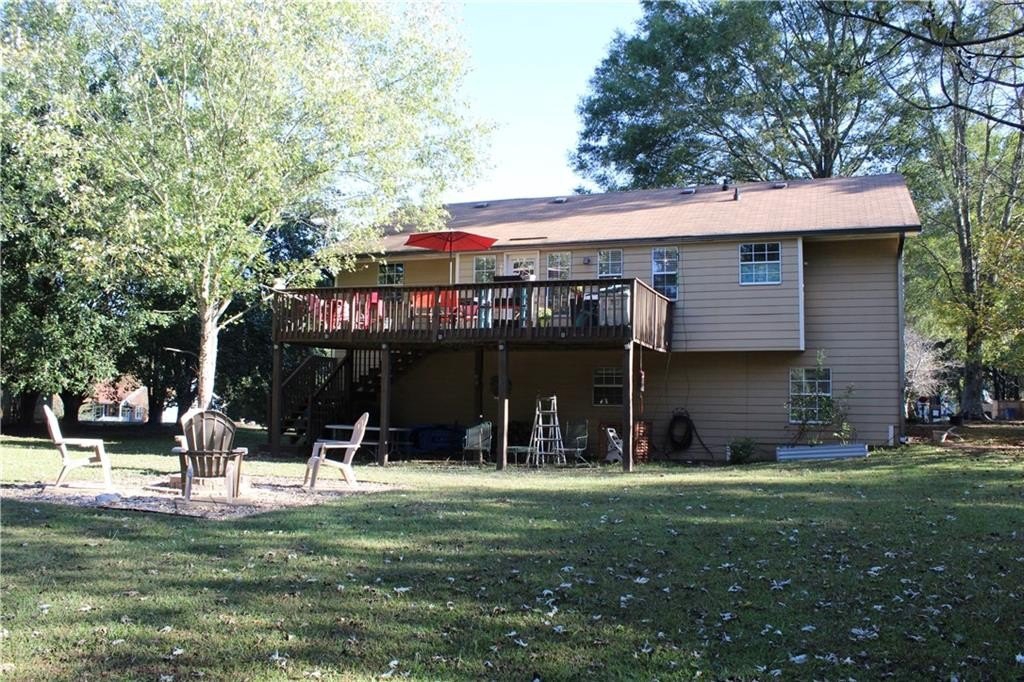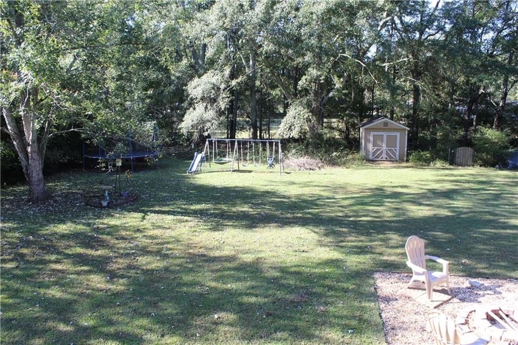 This lovely home offers a spacious floor plan for entertainment in the central hub or out on the large back deck overlooking a grand yard. The quaint fire pit will be perfect for relaxing outdoors and staying toasty warm with the coming fall temps. The outbuilding can serve as extra storage or make it your private art studio in the midst of nature’s beauty. Your pups have a place too in the 30x50 fenced dog run with a doghouse already in place. The interior of the home has 4 bedrooms tucked away for privacy with a split floor plan. The Master Bedroom has a large bay window view of the beautiful front yard oak trees, features vaulted ceilings, a large walk-in closet, ceiling fan, and a private master bath with soaking tub and separate shower. Bedrooms 2 and 3 are adjacent a full bath also conveniently located off the living room and on the opposite side of the home. High ceilings and natural light fill the kitchen, which has lots of cabinetry, tiled backsplash and stainless-steel appliances. The living room has a natural wood-burning stone fireplace where you can cozy up with family. And the lower level of the home has an oversized large 4th bedroom, media room, or playroom with tiled ceramic floors. There is also a 3rd full bath at this level along with additional storage and a utility/laundry room. The garage also offers plenty of storage and parking for two autos with separately controlled remote doors. This fantabulous home sits on over half an acre and has NO HOA! It’s a tranquil and peaceful haven nestled conveniently within a short drive of all conveniences, and easy access to I-85 and Hwy 316/29 University Pkwy. This could be the one for you! Schedule your tour today and let’s make this your new Home Sweet Home.