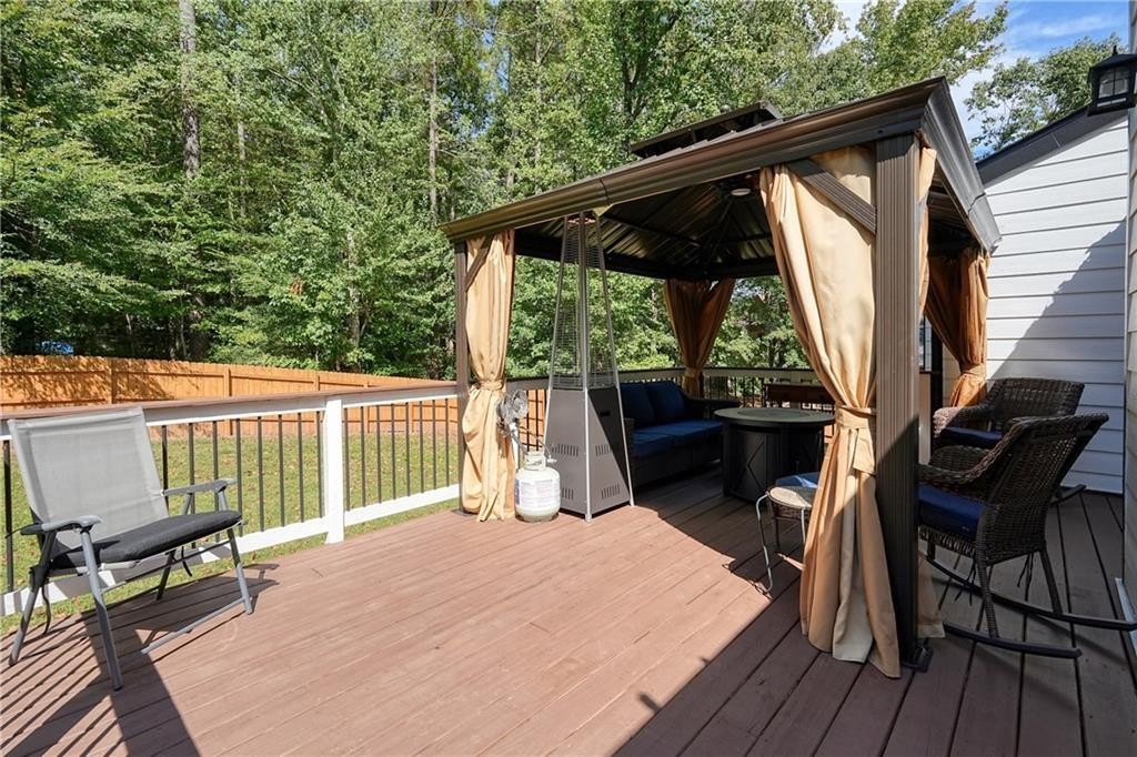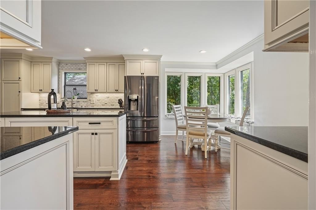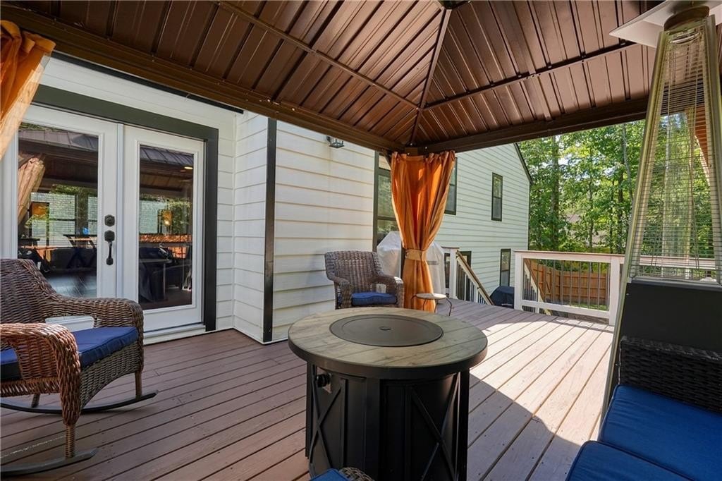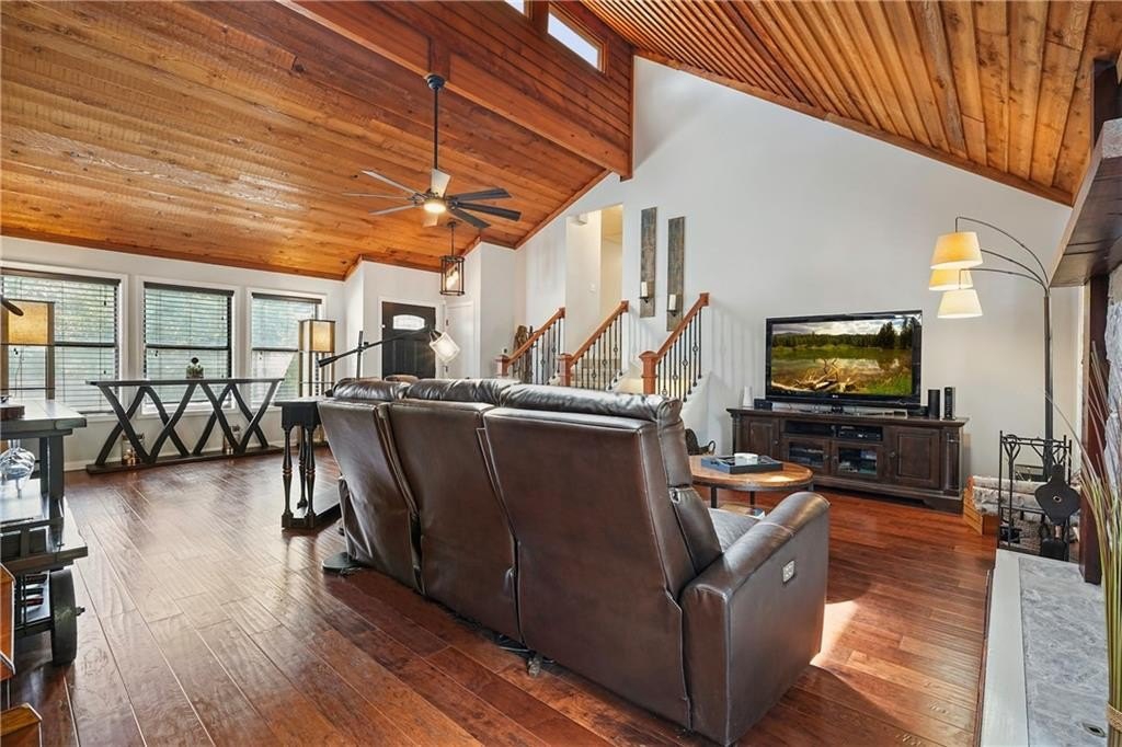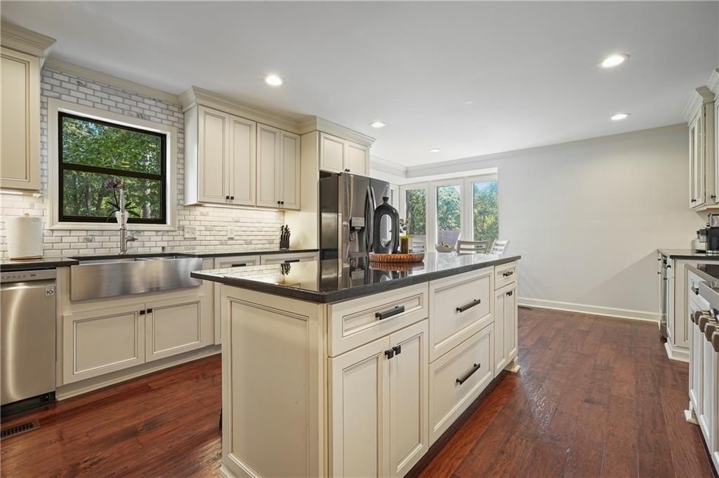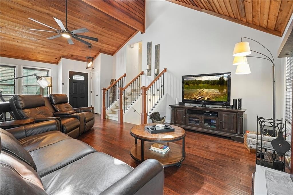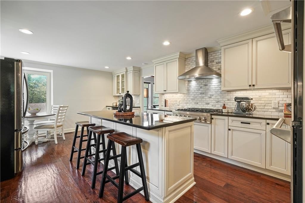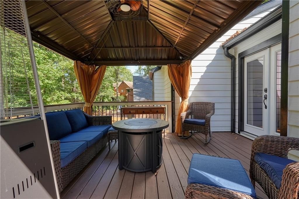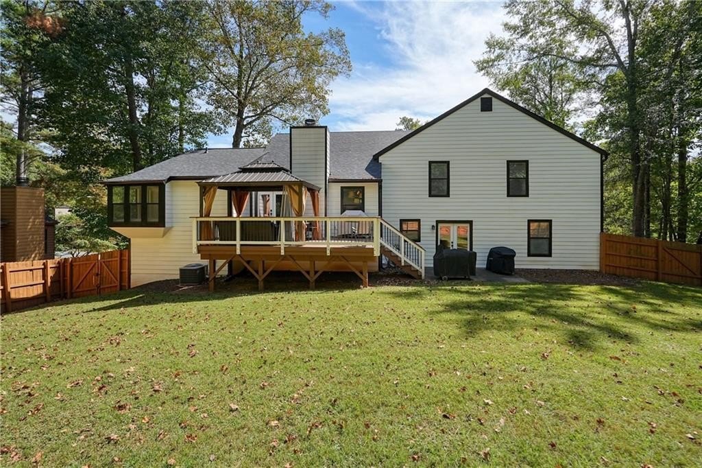 Introducing this architecturally stunning modern-contemporary residence, tucked within a quiet cul-de-sac in one of East Cobb’s premier enclave neighborhoods. Completely reimagined with a designer’s eye for detail, this home blends organic warmth and sophisticated modern style—a true showcase of craftsmanship and comfort. Step inside to soaring cedar-lined vaulted ceilings and rich walnut hardwood floors that flow seamlessly throughout the main floor. The gourmet kitchen serves as the heart of the home, boasting granite countertops, a grand center island, professional-grade cooktop range, stainless double wall ovens, and custom cabinetry—perfectly tailored for both everyday living and elevated entertaining. The formal dining room offers an elegant setting for special gatherings, while the family room impresses with its masonry stone fireplace and dramatic vaulted ceiling. The owner’s suite is a tranquil retreat featuring walk-in closets with built-in shelving and a spa-inspired bath complete with a massive dual-head shower, quartz double vanity, and wood-look tile flooring. Elegant wrought-iron balusters and designer lighting enhance the home’s contemporary aesthetic throughout. The finished terrace level expands the living experience with limitless possibilities—ideal for an in-law or guest suite, home office, gym, or game room. It includes a bedroom, full bath, recreation area, and a stylish bar, perfect for entertaining or multi-generational living. Step outdoors to your private oasis: an extended deck crowned by a custom gazebo, overlooking a lush, fenced backyard designed for relaxation and play. Located minutes from East Cobb’s top-rated schools, fine dining, boutique shopping, and entertainment, with easy access to I-75, I-575, and Downtown Atlanta, this home offers the rare combination of modern luxury and prime location.