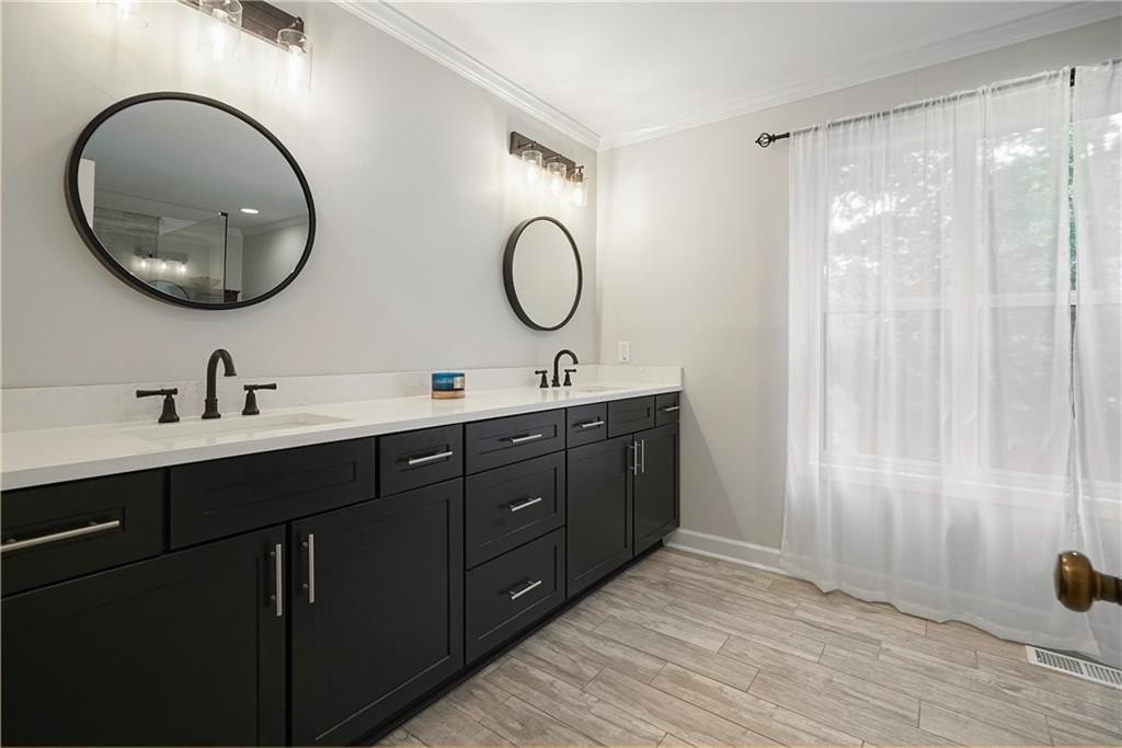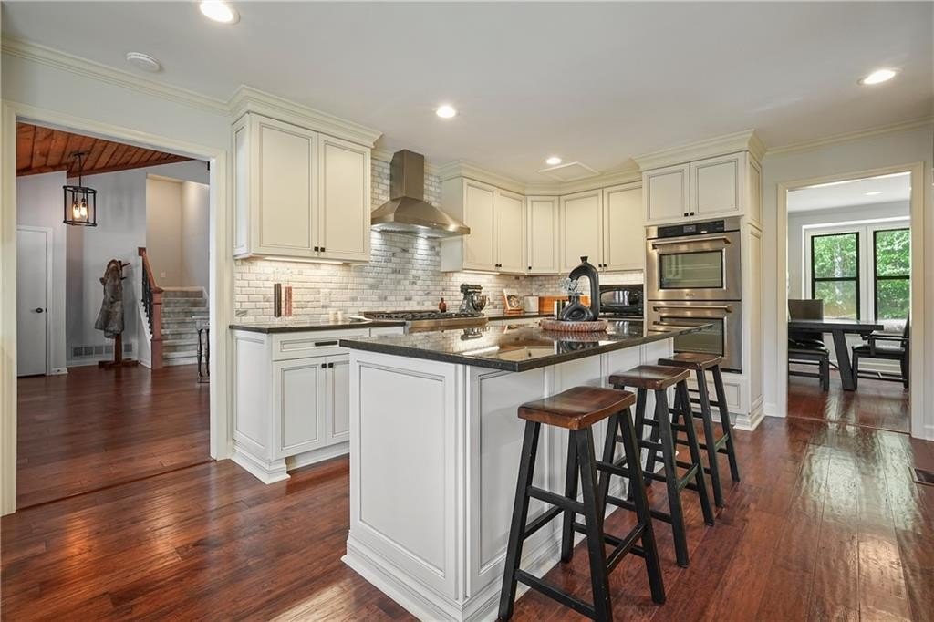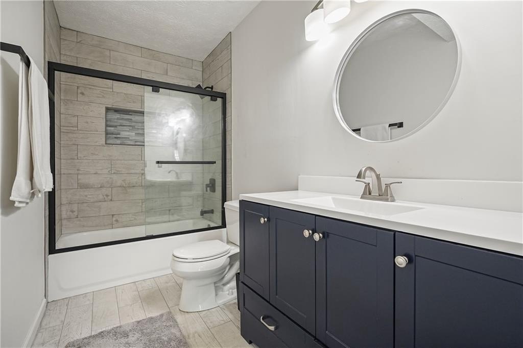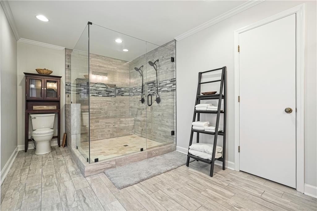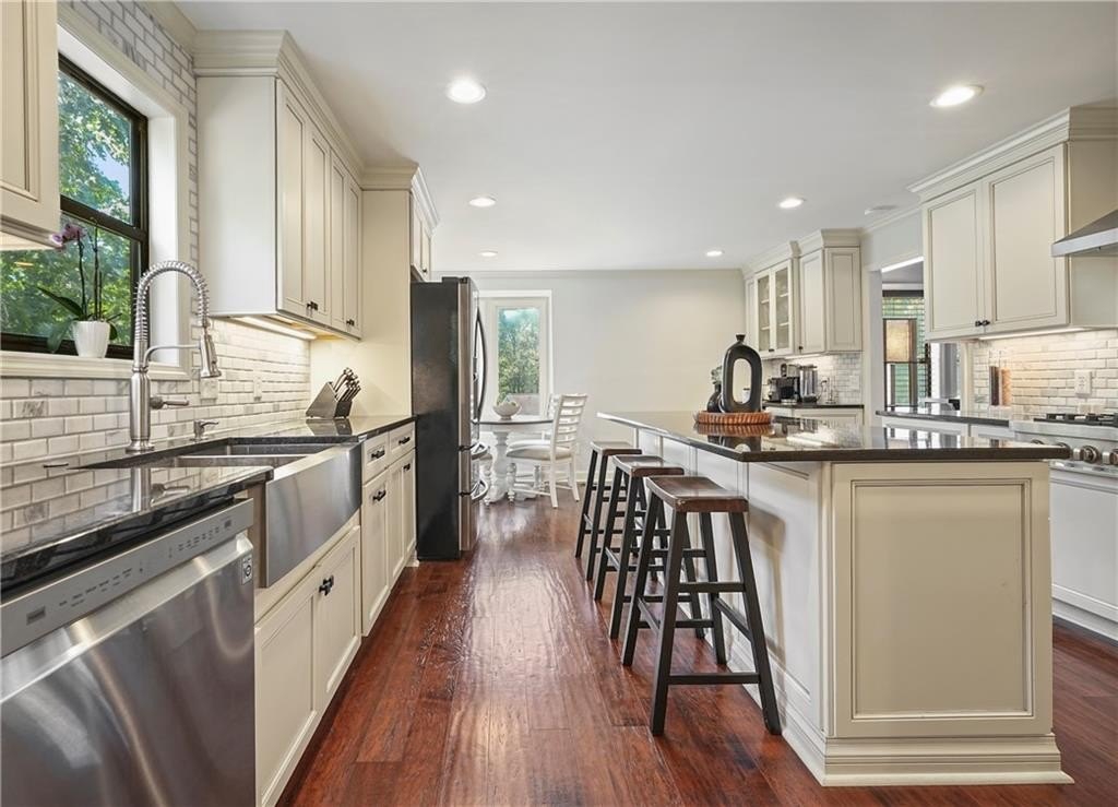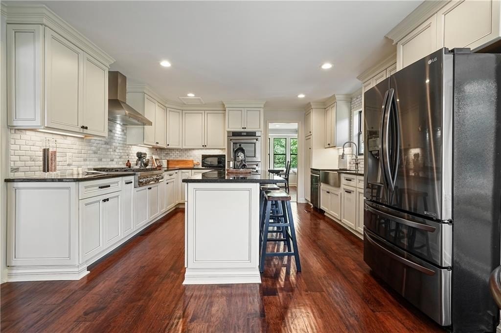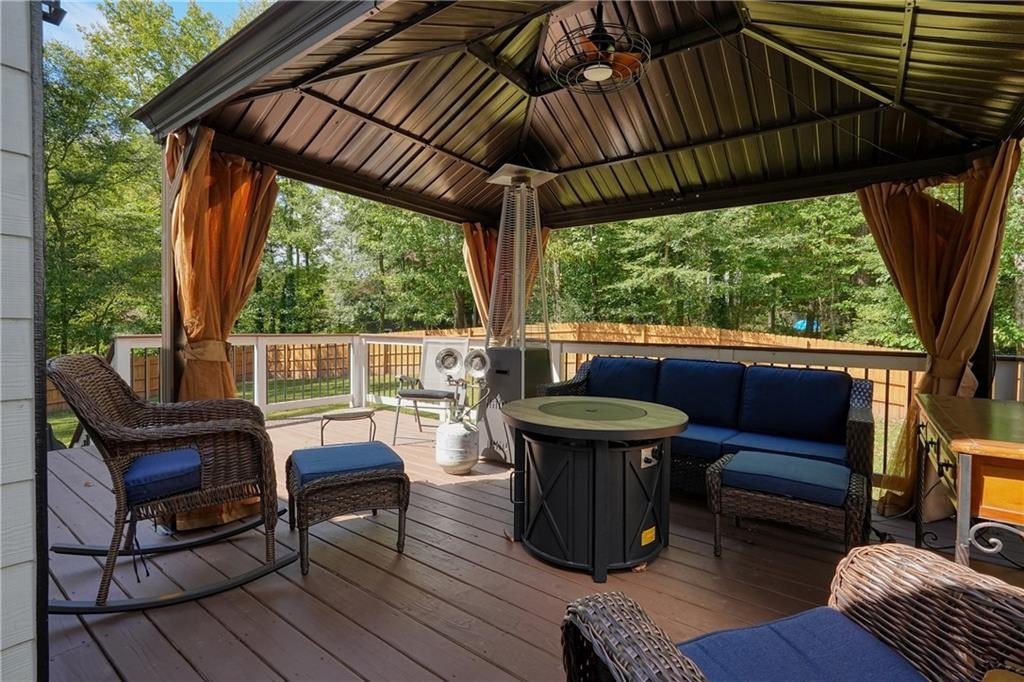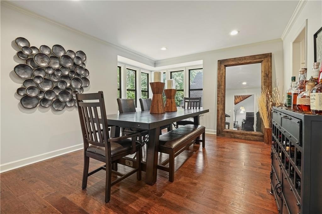 Introducing this architecturally stunning modern-contemporary residence, tucked within a quiet cul-de-sac in one of East Cobb’s premier enclave neighborhoods. Completely reimagined with a designer’s eye for detail, this home blends organic warmth and sophisticated modern style—a true showcase of craftsmanship and comfort. Step inside to soaring cedar-lined vaulted ceilings and rich walnut hardwood floors that flow seamlessly throughout the main floor. The gourmet kitchen serves as the heart of the home, boasting granite countertops, a grand center island, professional-grade cooktop range, stainless double wall ovens, and custom cabinetry—perfectly tailored for both everyday living and elevated entertaining. The formal dining room offers an elegant setting for special gatherings, while the family room impresses with its masonry stone fireplace and dramatic vaulted ceiling. The owner’s suite is a tranquil retreat featuring walk-in closets with built-in shelving and a spa-inspired bath complete with a massive dual-head shower, quartz double vanity, and wood-look tile flooring. Elegant wrought-iron balusters and designer lighting enhance the home’s contemporary aesthetic throughout. The finished terrace level expands the living experience with limitless possibilities—ideal for an in-law or guest suite, home office, gym, or game room. It includes a bedroom, full bath, recreation area, and a stylish bar, perfect for entertaining or multi-generational living. Step outdoors to your private oasis: an extended deck crowned by a custom gazebo, overlooking a lush, fenced backyard designed for relaxation and play. Located minutes from East Cobb’s top-rated schools, fine dining, boutique shopping, and entertainment, with easy access to I-75, I-575, and Downtown Atlanta, this home offers the rare combination of modern luxury and prime location.