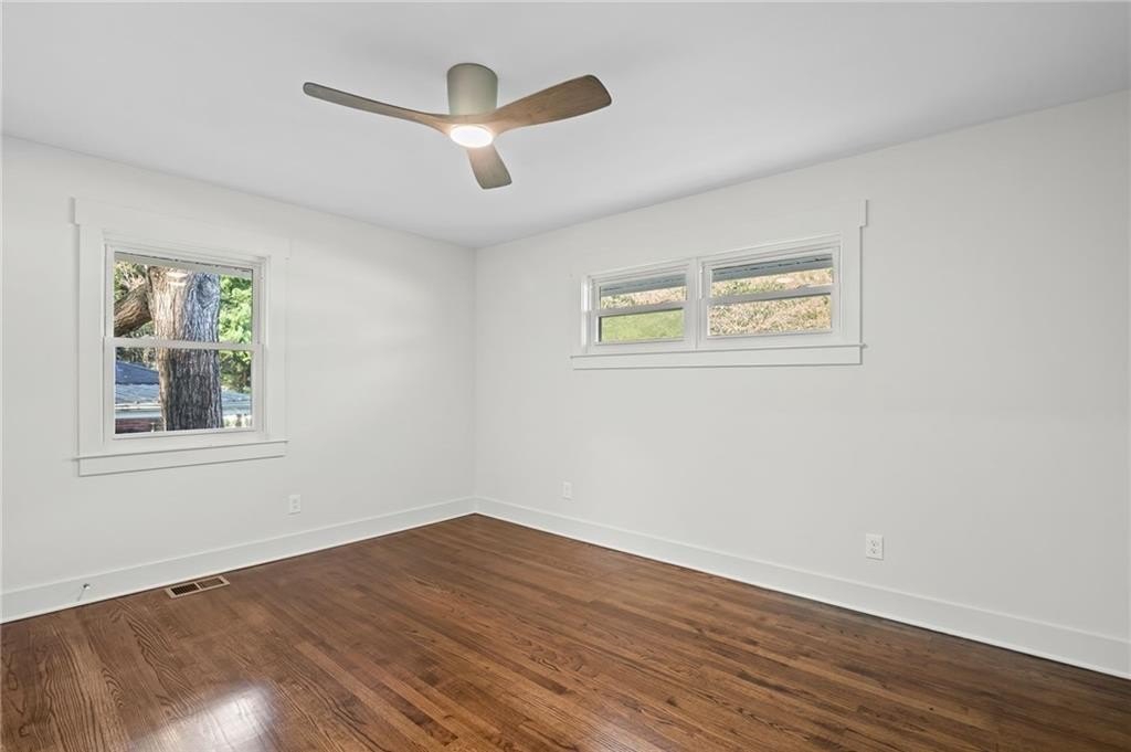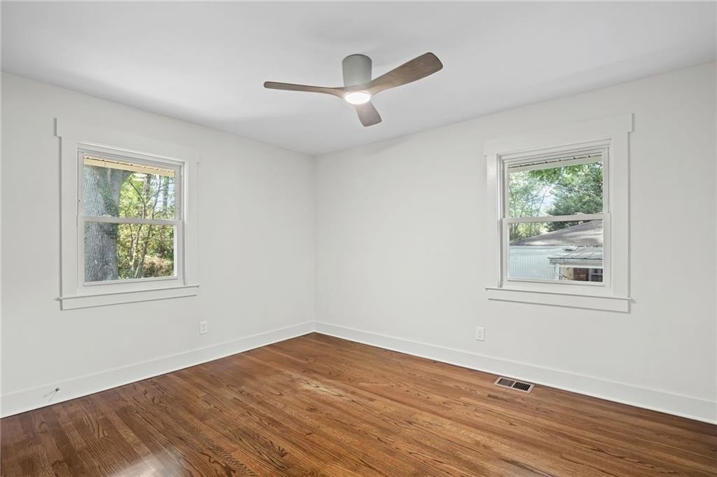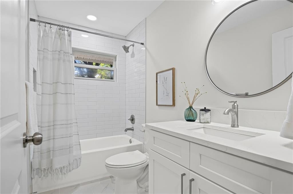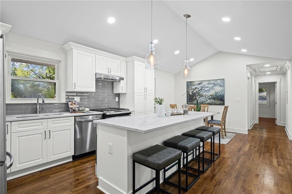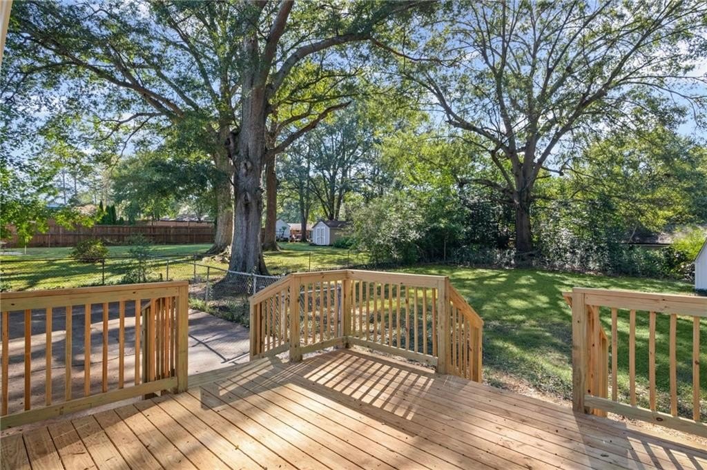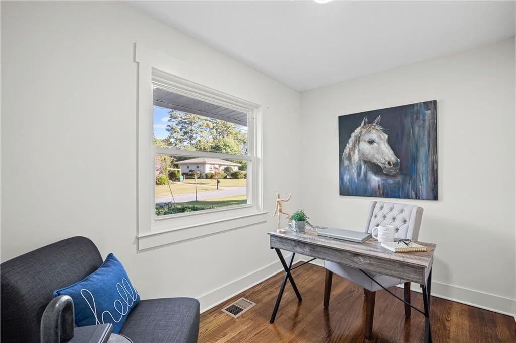 This one is it! A very rare 3-bedroom, 3-full-bathroom home with a separate office that can also be used as a 4th bedroom. Lots of storage in this house! Real hardwood floors, lots of natural light and a great location! Renovated home with gorgeous quartz countertops and a sought-after floorplan! Raised ceilings, new hot water heater, and new HVAC system! Walk into a beautiful, welcoming open living room adorned with an electric fireplace surrounded by wood shelving, a separate office in the front of the home, a separate eat in area for your dining, and upper-class kitchen! The kitchen showcases quartz counters, stainless steel appliances, a vent hood, a gas range, a tile backsplash, and a beautiful view of the backyard from your window! The master bedroom was added on with a walk-in closet! In the hall you will find your wash/dry room, pantry, and coat organizer! Nice-sized secondary bedrooms with ample closet space! Renovated bathrooms with tile backsplash, new vanities, and tiled floors! The back yard is large and flat and fenced in for your pets! A great newly built deck and a separate patio for your grilling and entertainment! Nice large shed in the back. Great schools and great location in a sought-after West Smyrn Heights community!