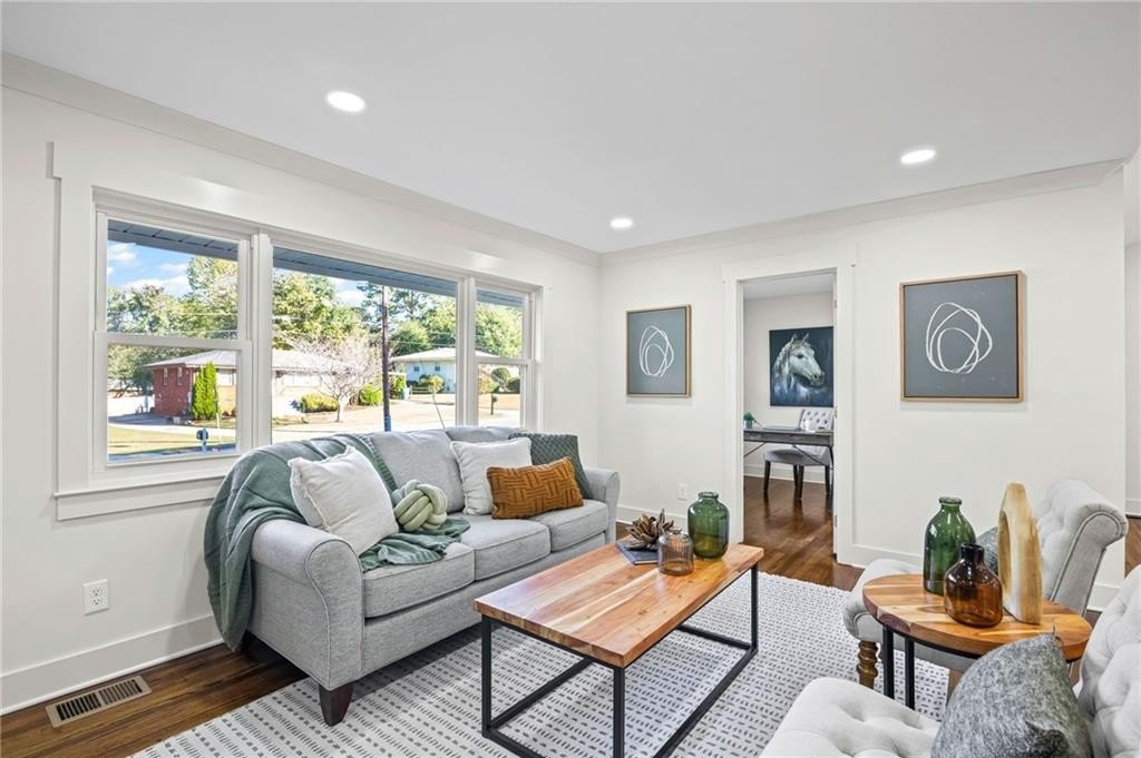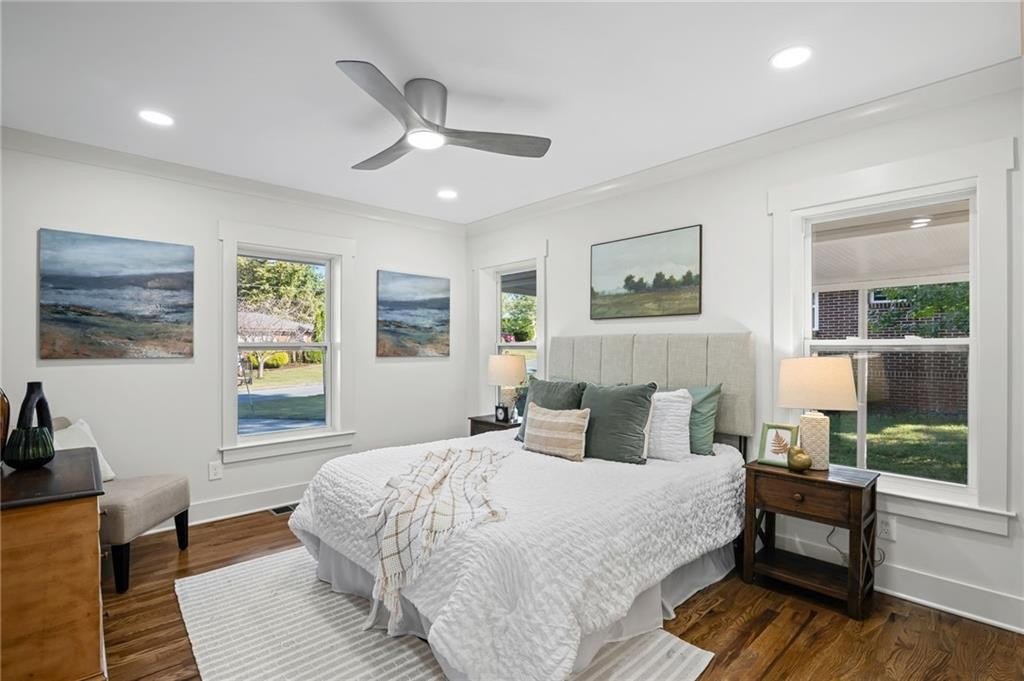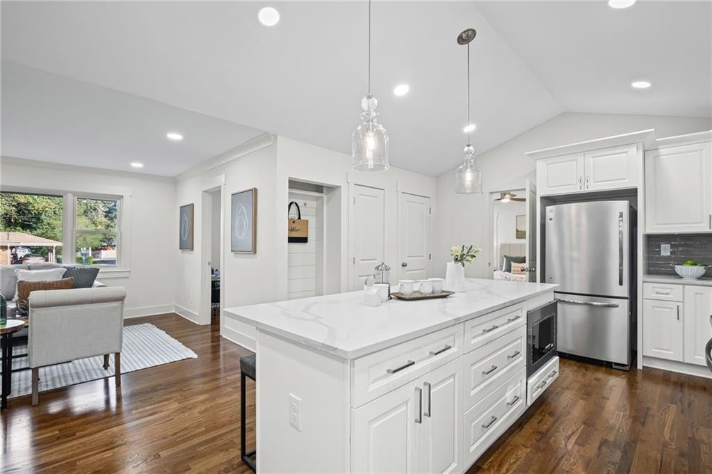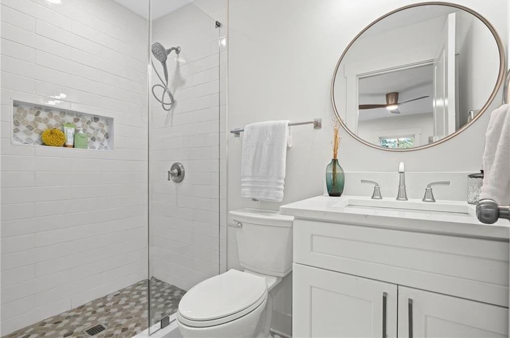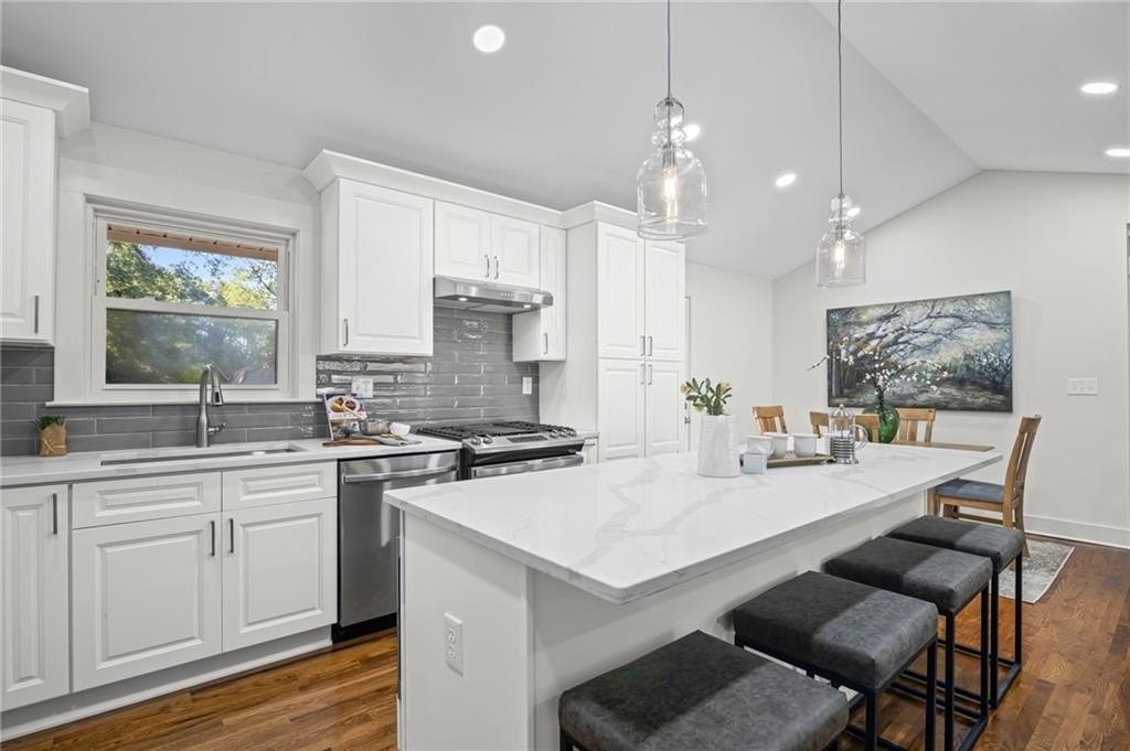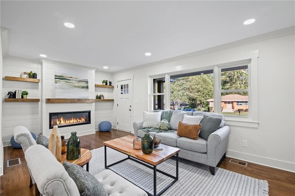 This one is it! A very rare 3-bedroom, 3-full-bathroom home with a separate office that can also be used as a 4th bedroom. Lots of storage in this house! Real hardwood floors, lots of natural light and a great location! Renovated home with gorgeous quartz countertops and a sought-after floorplan! Raised ceilings, new hot water heater, and new HVAC system! Walk into a beautiful, welcoming open living room adorned with an electric fireplace surrounded by wood shelving, a separate office in the front of the home, a separate eat in area for your dining, and upper-class kitchen! The kitchen showcases quartz counters, stainless steel appliances, a vent hood, a gas range, a tile backsplash, and a beautiful view of the backyard from your window! The master bedroom was added on with a walk-in closet! In the hall you will find your wash/dry room, pantry, and coat organizer! Nice-sized secondary bedrooms with ample closet space! Renovated bathrooms with tile backsplash, new vanities, and tiled floors! The back yard is large and flat and fenced in for your pets! A great newly built deck and a separate patio for your grilling and entertainment! Nice large shed in the back. Great schools and great location in a sought-after West Smyrn Heights community!