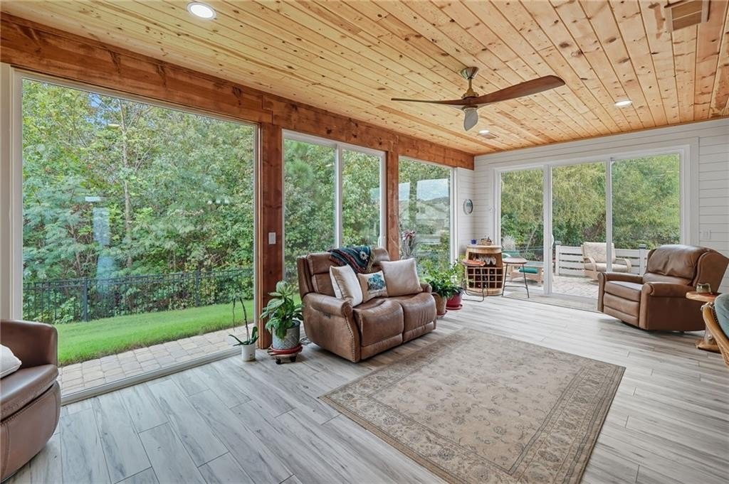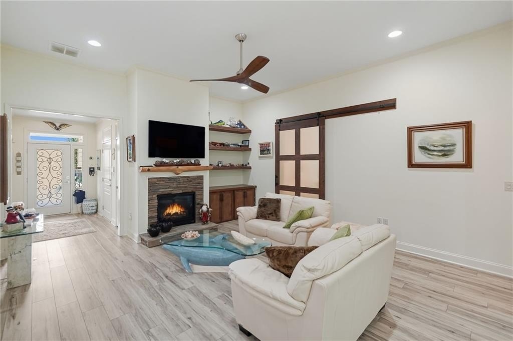 Absolutely STUNNING, complete top to bottom remodel with expansion of this Soleil cottage on a massive, private lot - very hard to find a lot like this in Soleil Laurel Canyon. Owners spared no expense making this home a true show-stopper. From the moment you open the front door, the floor to ceiling windows in the sunroom will render you speechless, it's just gorgeous!! Kitchen features NEW real wood cabinets, NEW Taj Mahal Quartzite counters with a chiseled edge and matte leather finish, high-end stainless steel Bosch appliances including BRAND new induction stove and convection microwave, stainless steel vent hood, stone island and backsplash, pull-out drawers, pot-filler, oversized stainless steel sink, instant hot water tap at the sink, plus huge walk-in pantry with cabinets for extra storage. Open concept so the kitchen flows seamlessly into the dining area and living room. Living room features a cedar mantle and fireplace. Jaw-dropping 22x14ft sunroom addition features floor-to-ceiling windows, cedar beams, shiplap walls and tongue and groove ceiling. Sunroom overlooks 50-ft tree buffer in the back and opens to side courtyard patio and massive side yard - property extends all the way to the pink stake. Gorgeous LVP floors throughout home, all new fixtures and ceiling fans plus plantation shutters. Master suite with trey ceiling, walk in closet and totally renovated bathroom including walk-in shower. Bedroom/office area off living room is perfect for the grandkids. Front 2nd bedroom (with closet) was expanded and made into an incredible 16x28ft office, den, and bar area. The sellers love having this extra living and work space. Epoxy floor and built-in cabinets in the garage - MOST cabinets will remain but a few lower unattached ones will go. Lastly, the side yard and greenspace adds privacy no other home in Soleil Laurel Canyon has. Enjoy privacy all year round with no neighbor 2 sides. This home is unlike anything else you will find "behind the gate" in Soleil Laurel Canyon, and is perfect for those who aren't ready to downsize their living space. Soleil offers a "lock and leave" lifestyle with HOA covering 24 hour gate, lawn maintenance, and amenities galore including 30,000sf clubhouse, indoor and outdoor pools, gardens, tennis / pickle ball, commercial catering kitchen, over 50 active clubs, fitness center, walking trails, plus 18 hole golf is also available. Show today!!