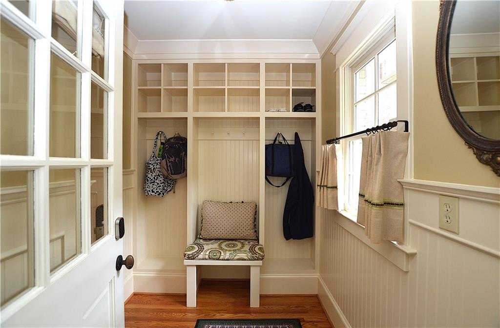 Thermador high-end gas range, Stainless dishwasher and built-in refrigerator lay the perfect groundwork for culinary bliss and quick meal prep for active lifestyles. Farmhouse sink, enormous island with space to dine, bountiful custom floor-to-ceiling cabinetry, wine rack, pantry – all conducive for day-to-day living & impressive entertainment. Kitchen fluidly connects to cozy mud room with bench, cubbies, hooks and a gorgeous, screened side porch. What breezy haven, complete with Bahama shutters! Multiple French doors flow to & from the Family Room with built-in shelves and spectacular view of the level, landscaped, manicured and fenced private back yard.