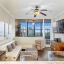 - Expansive living area with luxury flooring and high ceilings for maximum comfort