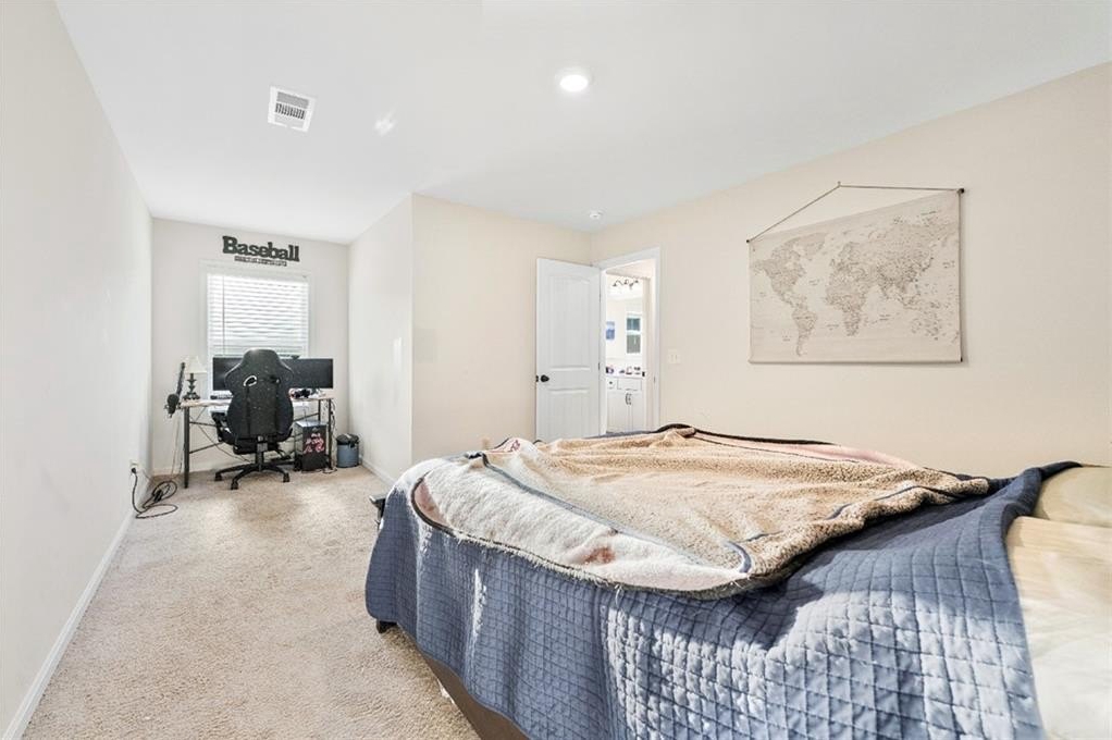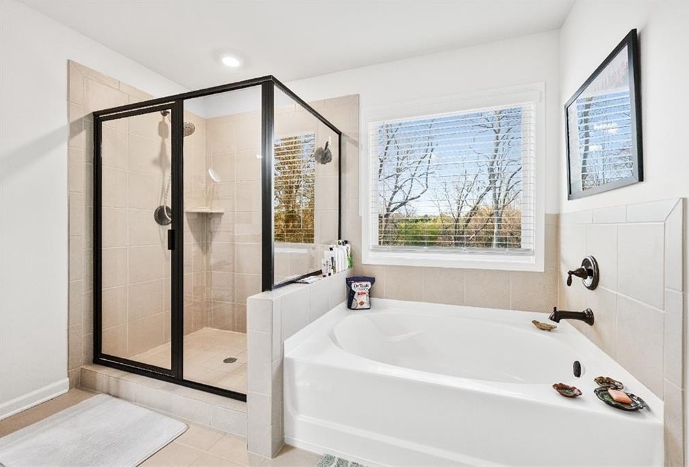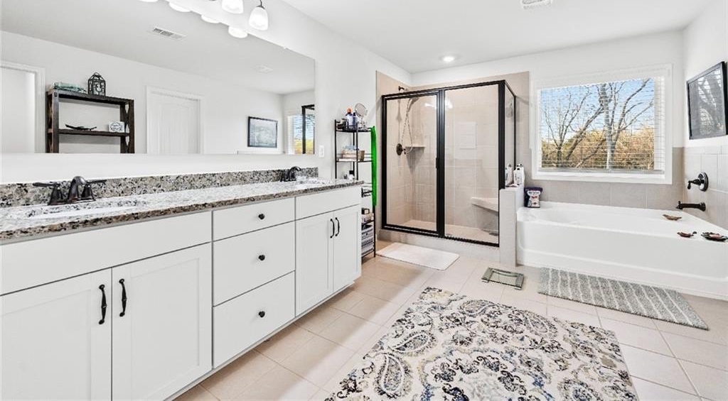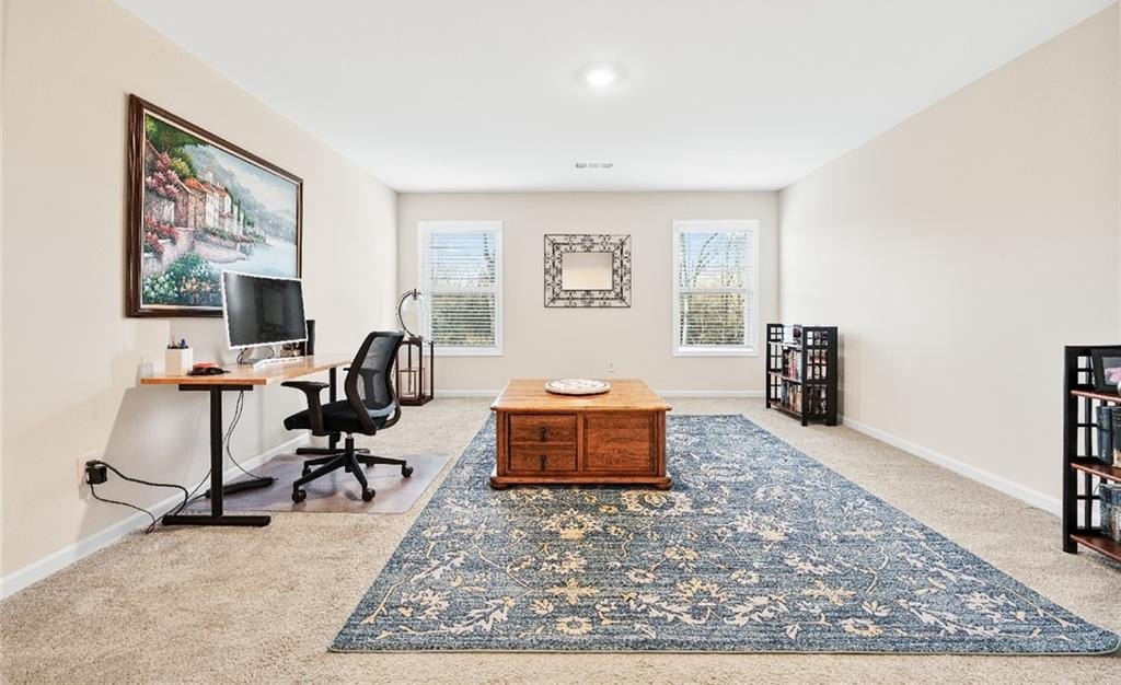 The serene primary suite boasts a luxurious bath with double vanities, a soaking tub, a separate shower, and walk-in closet. The two additional bedrooms upstairs are generously sized with ample closet space and share a full bath. The second level also contains a huge bonus room to use as your flex space.
