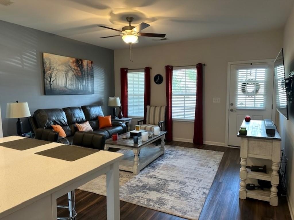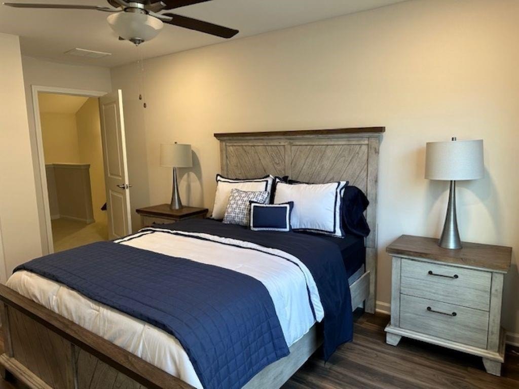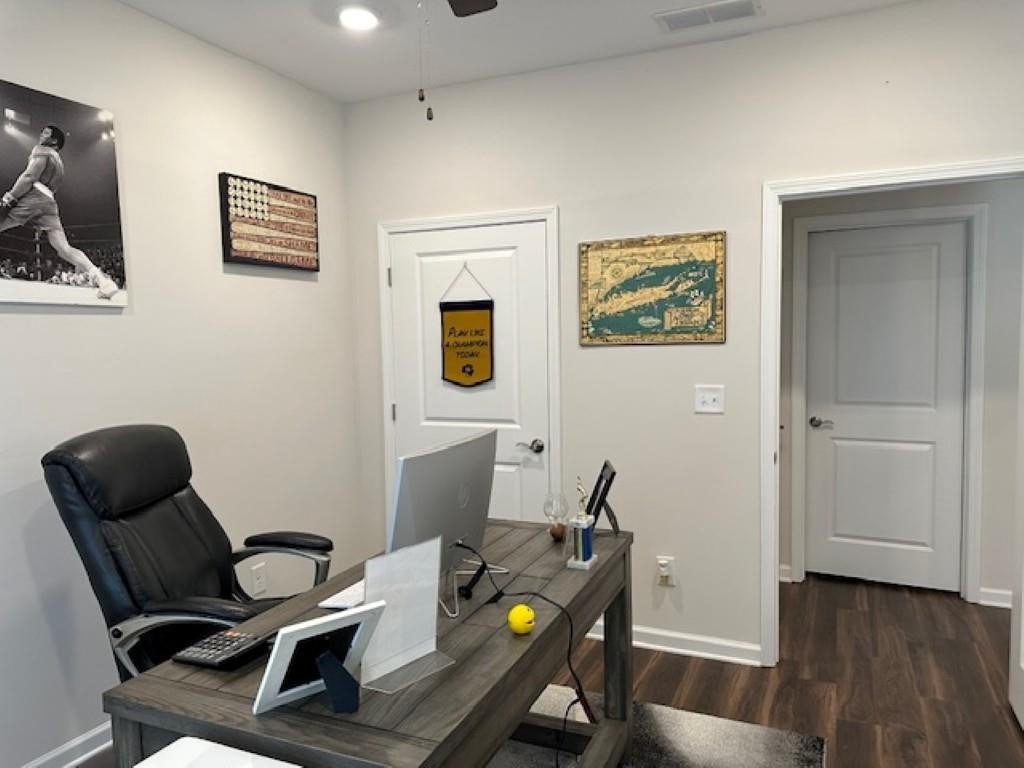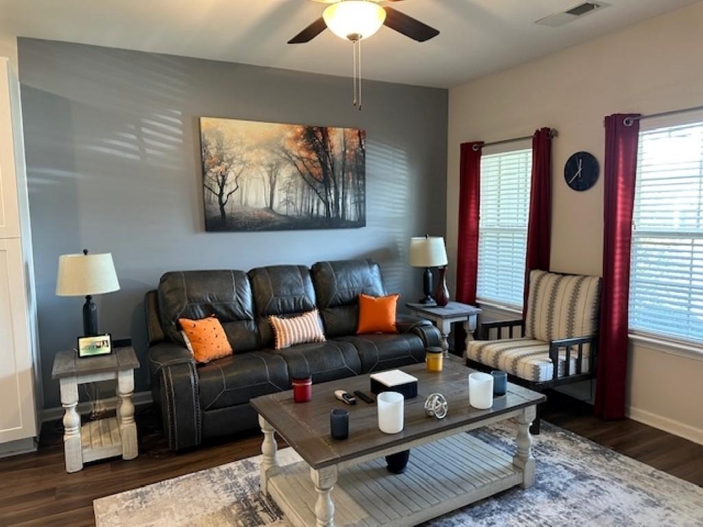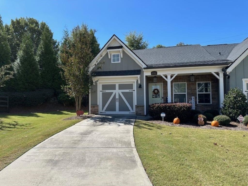WELCOME HOME! Rare Opportunity! Immaculate 3 Bedroom and 3 Full Bath Townhome. This is an End Unit with a Cozy Covered Front Porch and a private back and side yard. This home features the Primary Bedroom plus one other bedroom on main level. It also has a private upstairs ensuite with a small loft area. This home has designer features throughout such as Quartz Kitchen Counters, White Cabinets, Double Oven Range and Luxury Vinyl Plank flooring. The Main Level Primary suite has plenty pf room for a Kingsize bed, two nightstands and Dresser. The Primary Spa-Like Bath features a recently added a large Custom Shower with high end designer finishes. The other main level bedroom is currently used as an Office. This could be a bedroom or a flex space depending upon your needs. All Bedrooms have high end ceiling fans already installed. This great Community is located close to so many things, such as Restaurants, shopping, Banking, Lake Lanier recreational activities and of course the University of North Georgia Campus. This is a perfect home that is "Move-in Ready. A large One Car Garage with a sealed floor has plenty of space for a SUV. The long Driveway offers additional parking. Lawn Maintenance is included in your HOA Dues.