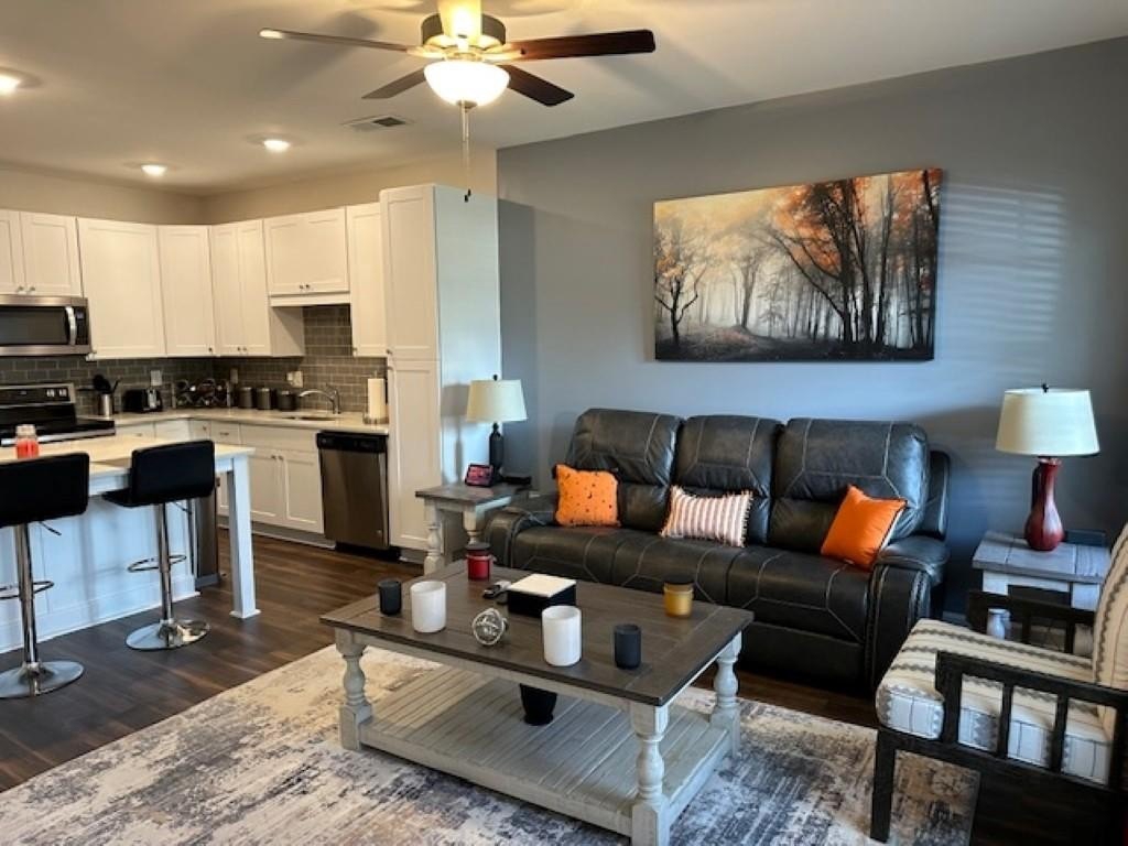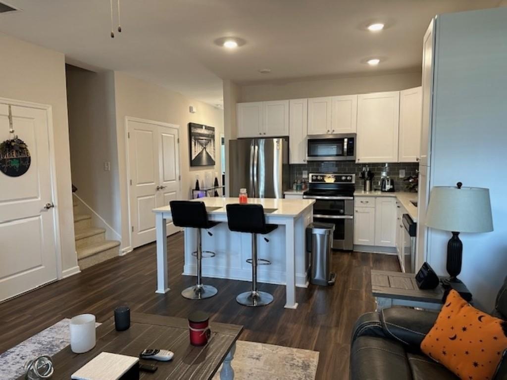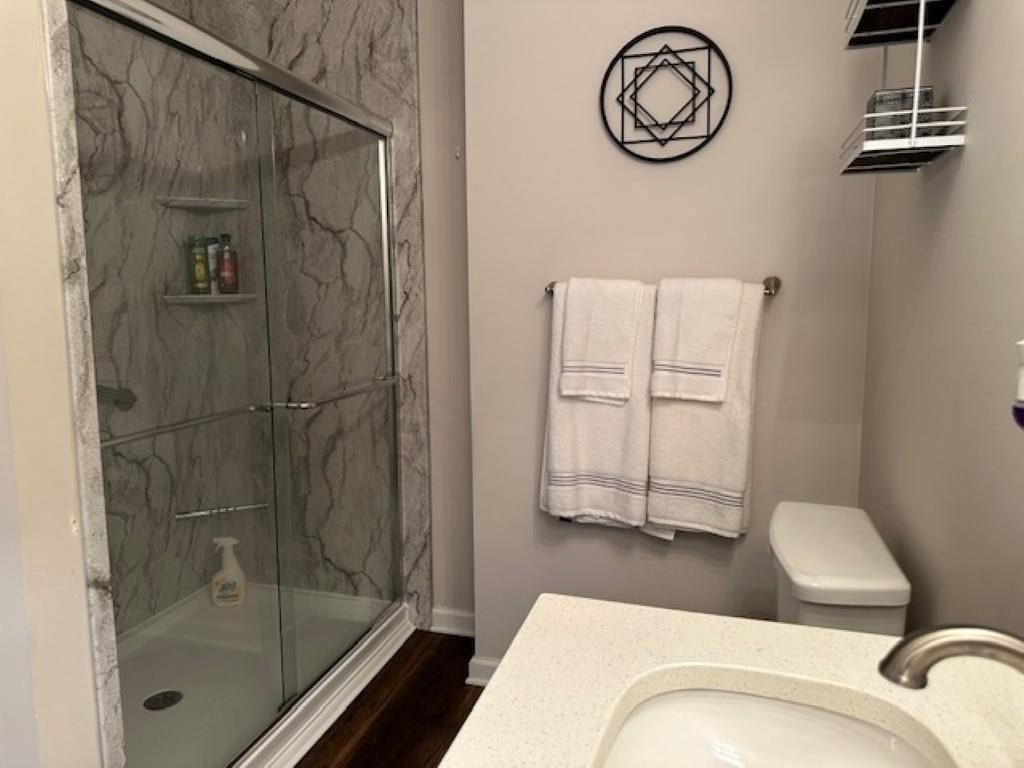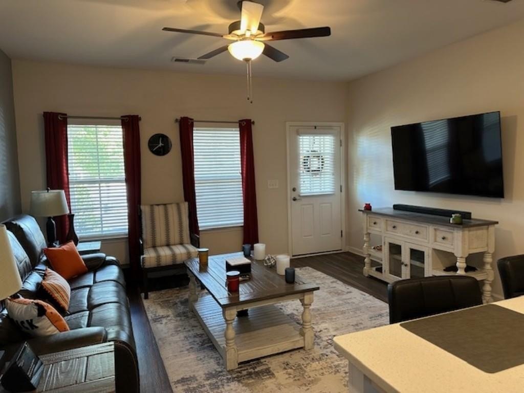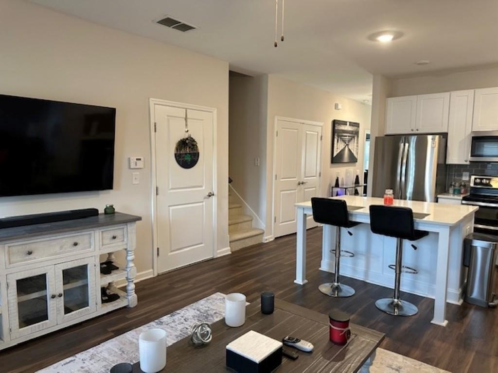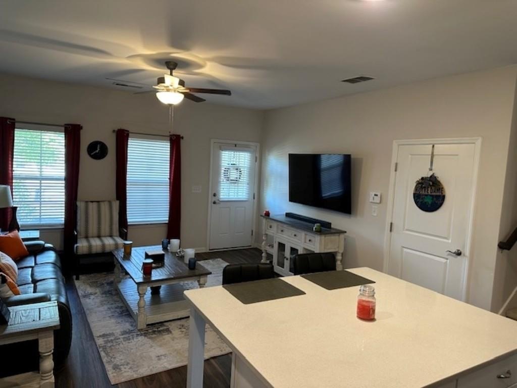 WELCOME HOME! Rare Opportunity! Immaculate 3 Bedroom and 3 Full Bath Townhome. This is an End Unit with a Cozy Covered Front Porch and a private back and side yard. This home features the Primary Bedroom plus one other bedroom on main level. It also has a private upstairs ensuite with a small loft area. This home has designer features throughout such as Quartz Kitchen Counters, White Cabinets, Double Oven Range and Luxury Vinyl Plank flooring. The Main Level Primary suite has plenty pf room for a Kingsize bed, two nightstands and Dresser. The Primary Spa-Like Bath features a recently added a large Custom Shower with high end designer finishes. The other main level bedroom is currently used as an Office. This could be a bedroom or a flex space depending upon your needs. All Bedrooms have high end ceiling fans already installed. This great Community is located close to so many things, such as Restaurants, shopping, Banking, Lake Lanier recreational activities and of course the University of North Georgia Campus. This is a perfect home that is "Move-in Ready. A large One Car Garage with a sealed floor has plenty of space for a SUV. The long Driveway offers additional parking. Lawn Maintenance is included in your HOA Dues.