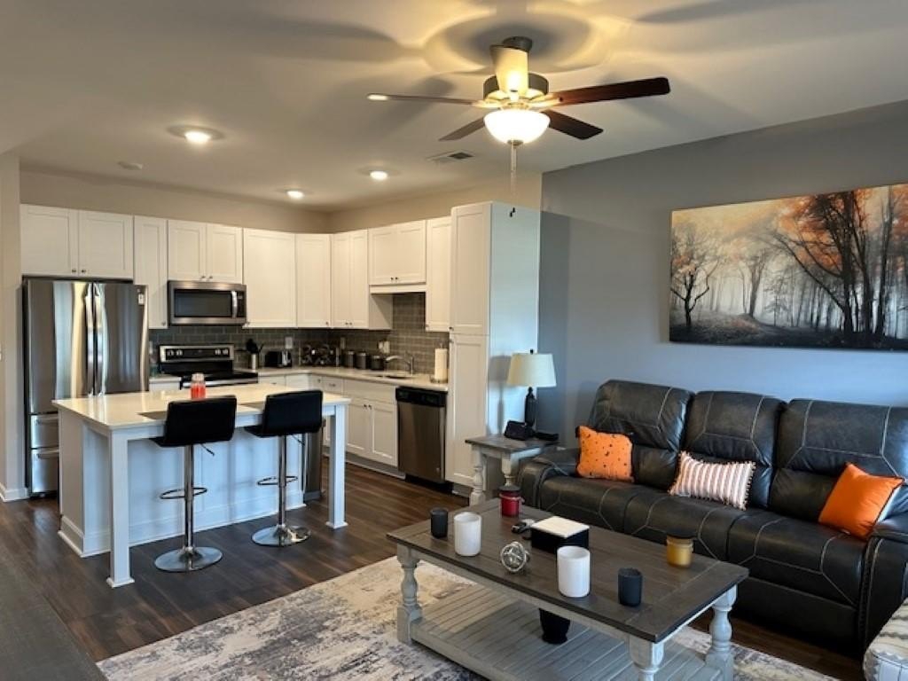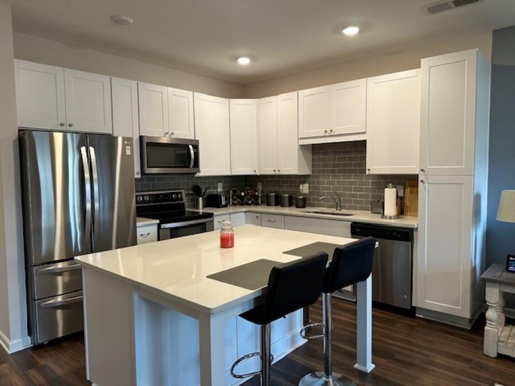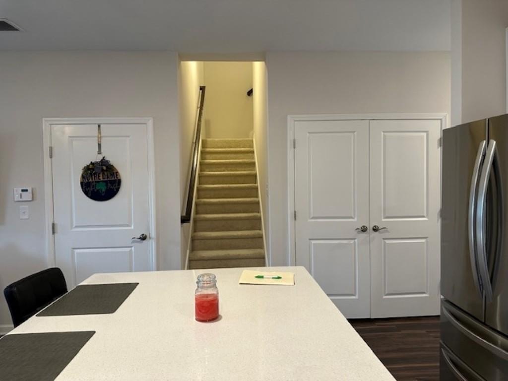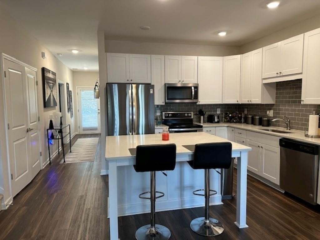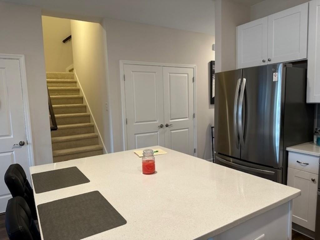 WELCOME HOME! Rare Opportunity! Immaculate 3 Bedroom and 3 Full Bath Townhome. This is an End Unit with a Cozy Covered Front Porch and a private back and side yard. This home features the Primary Bedroom plus one other bedroom on main level. It also has a private upstairs ensuite with a small loft area. This home has designer features throughout such as Quartz Kitchen Counters, White Cabinets, Double Oven Range and Luxury Vinyl Plank flooring. The Main Level Primary suite has plenty pf room for a Kingsize bed, two nightstands and Dresser. The Primary Spa-Like Bath features a recently added a large Custom Shower with high end designer finishes. The other main level bedroom is currently used as an Office. This could be a bedroom or a flex space depending upon your needs. All Bedrooms have high end ceiling fans already installed. This great Community is located close to so many things, such as Restaurants, shopping, Banking, Lake Lanier recreational activities and of course the University of North Georgia Campus. This is a perfect home that is "Move-in Ready. A large One Car Garage with a sealed floor has plenty of space for a SUV. The long Driveway offers additional parking. Lawn Maintenance is included in your HOA Dues.