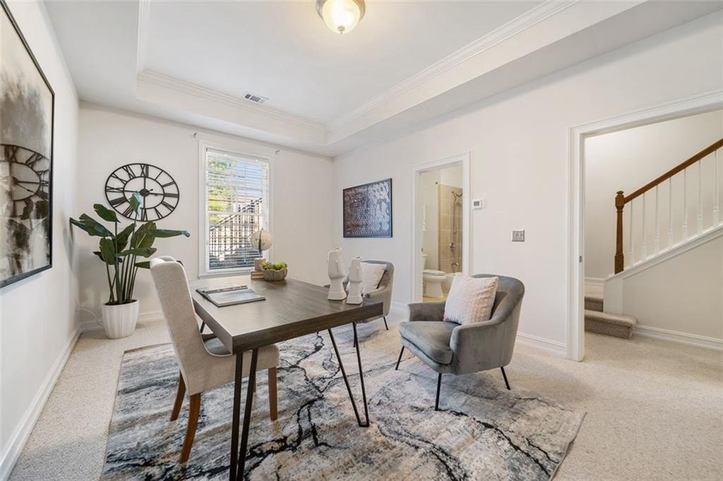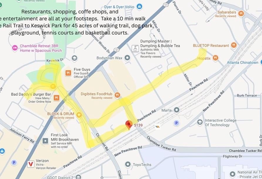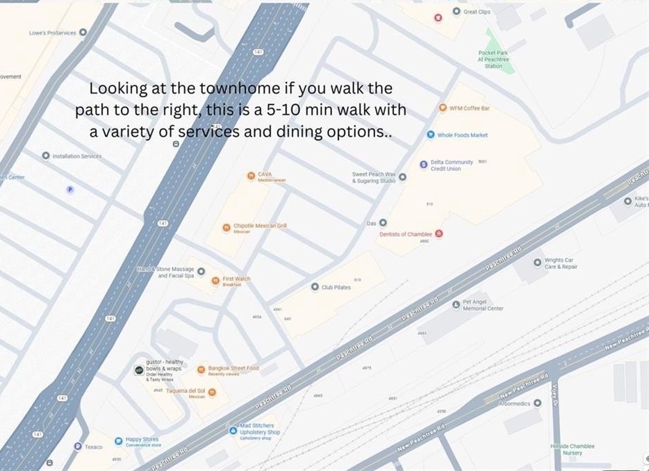Welcome to 5139 Peachtree Road at Chalfont on Chambleee! RARE opportunity to live in this gated 25-home brownstone community, in walkable historic Chamblee! This property is about LOCATION LOCATION LOCATION! Literally anything you need in just a few steps in each direction. Restaurants, pilates, fitness, grocery stores, shops, parks, etc. Located along Chamblee's Rail Trail, the community sits on a 10’ sidewalk along Peachtree Rd. This freshly painted beauty invites you in on the main level with beautiful hardwoods, soaring 10’ ceilings, a generous dining room w/an adjacent butler's pantry. Stainless steel kitchen appliances and a breakfast bar that opens to the fireside living room with a tree-top view and Trex deck! Upstairs, the spacious Owner's suite features a large walk-in closet, and an alcove or nook area for relaxing or work space, and a Juliet balcony. The Owner’s bath features dual vanities, tub, and separate shower. Another en suite and laundry room complete the upper level. The terrace level features a bedroom or office with a full bath. The generous two garage completes the terrace level. Take a 10-minute walk along the Rail Trail to Keswick Park for 45 acres of walking trails, a dog park, a playground, a community center, ball fields, tennis courts & a basketball court! Or, a 5-minute walk one way to Whole Foods, Cava, Chipotle, Taqueria Del Sol, Bangkok Thai Street Food, Starbucks, First Watch, and Moondog Pub, or the other way to Southbound, Blue Top, Frosty Caboose, Vintage Pizza, Yuzu Sushi, Hopstix, Golf & Social, Sabaraba's Mediterranean, Kin Coffee & Co, Walmart, Gamestop, Dumpling Master & Bubble Tea, Digibites Seafood and everything that downtown Chamblee has to offer! There are so many options! Seconds from Marta for easy downtown and airport access. It's a quick summer stroll down Peachtree to City Hall for the Chamblee Summer Concert Series! Or, roll out and jump on your bike for a rail ride! Truly the easiest access to anywhere in the city via 85, 285, 400. Coveted Montgomery Elementary, and top-rated Chamblee Middle and High Schools! Come see for yourself! HOA Covers all exterior maintenance and repairs, landscaping, and roof.