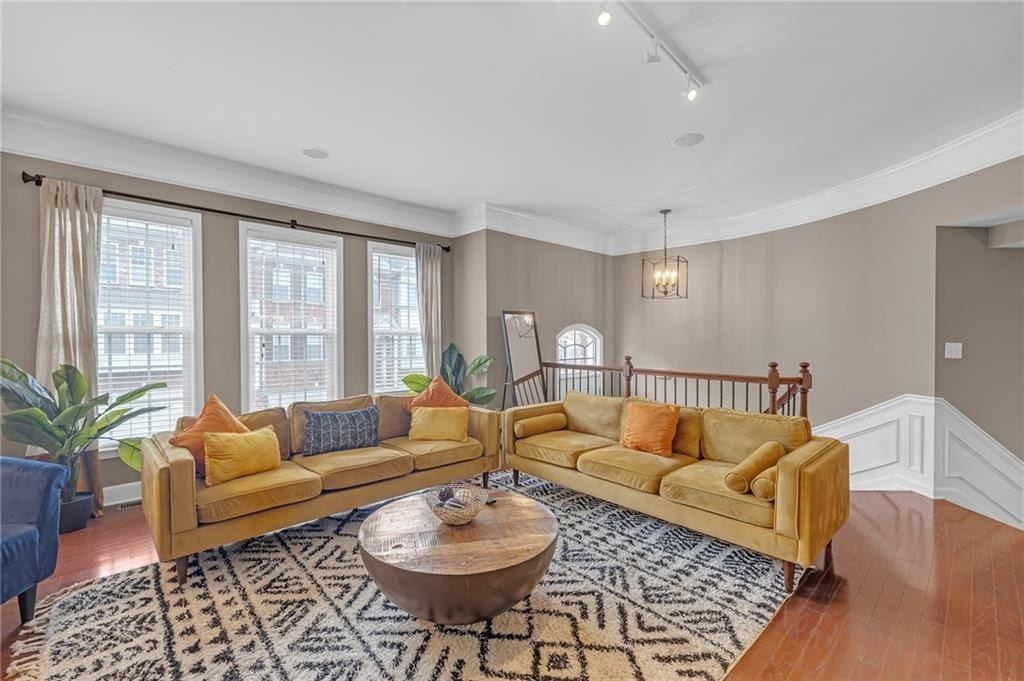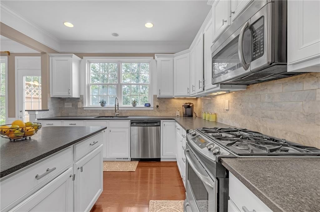 Experience this luxurious, three-story townhome in one of Atlanta's most desirable areas, offering access to everything the Vinings/Smyrna area has to offer. ****With unbelievable living space (2376 sq ft.), the main floor boasts an open-concept design featuring beautiful hardwood floors throughout. Walk into a cozy family room anchored by a warm fireplace that seamlessly flows into your gourmet kitchen, equipped with ceiling and cabinetry recessed lighting, a large island, granite countertops, and stainless steel appliances. ***Architectural details such as tray ceilings and wainscot chair rail molding along the stairways and dining areas, oversized (floor to ceiling) windows on every floor, illuminating natural light. Imagine enjoying a cup of coffee on your private deck or in your dining room, gazing out the window at a beautifully landscaped scenic view. ****The primary suite is complete with a spa-like bathroom featuring a soaking tub, separate shower, and his-and-hers vanities with walk-in closets. ****The terrace level features the Guest Quarters, a 4th bedroom/flex room that is ideal for a teen/in-law suite, home office, or as a space for unlimited entertainment options. It includes a butlery/laundry Room with a wine cooler, built-in cabinets, and a butcher block counter over the laundry units, which leads out to the patio area. ****This family and pet-friendly community provides swimming, dog park and stations, walking trail, and guest parking, all covered by low monthly HOA dues that also include water, sewer, trash, and a termite bond. ****Enjoy a premier location, just minutes from the I-285 Interstate, schools, shopping, restaurants, and entertainment, including the popular Truist Park/The Battery, the Chattahoochee River Trail, and historic Downtown Smyrna, Midtown, Downtown Atlanta, and Hartsfield-Jackson Airport. ****100% Financing Available with preferred lenders **** Water Heater Replaced*** Well Maintained Home*** This home is ready for immediate occupancy. Schedule your showing today!