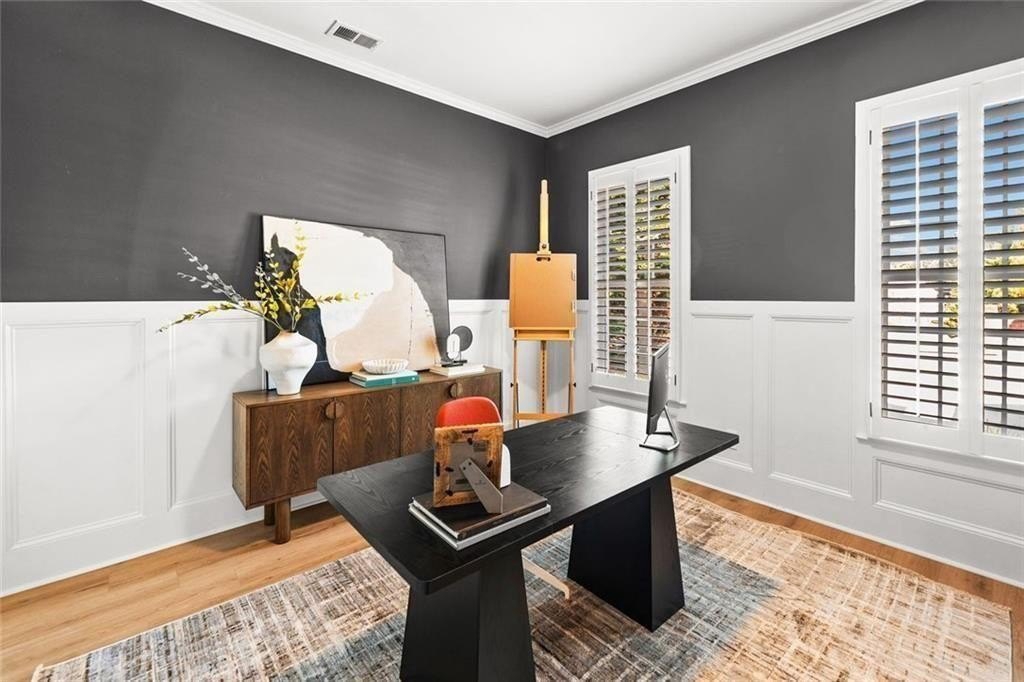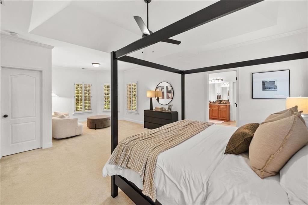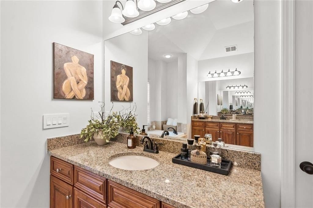 Welcome to 4550 Wigley Estates Road - a stylish executive home in East Cobb! This beautifully updated 3-sided brick residence offers the perfect blend of luxury, functionality, and location. Nestled on a private, flat, fully fenced lot with mature trees, this home features a 3-car garage and a spacious, thoughtfully designed floorplan ideal for modern living. Step inside to discover new LVP flooring throughout the main level, fresh neutral paint, and striking updated lighting fixtures. The home exudes contemporary elegance, with soaring ceilings and stylish finishes throughout. The powder bath has been fully remodeled and features a dramatic black Calacatta Monaco waterfall sink that makes a bold statement. The main level includes a dedicated office and a versatile guest suite with an ensuite bath - currently used as a home gym. Entertain effortlessly with a formal dining room, a spacious family room with an updated fireplace, an additional cozy sitting room, and a second updated fireplace for added charm. Culinary enthusiasts will appreciate the well-appointed kitchen, complete with stainless steel appliances, and ample cabinetry. Upstairs, retreat to the expansive primary suite with a serene sitting area, luxurious bathroom with his-and-hers vanities, a soaking tub, separate shower, and an impressively large walk-in closet. Two secondary bedrooms share a convenient Jack-and-Jill bath, while a third bedroom enjoys its own ensuite. A large bonus room completes the upper level - ideal as a media room or home theater. Located approximately a mile off Sandy Plains Road, this home is minutes from shopping, dining, and entertainment in both Downtown Woodstock and Downtown Roswell. Zoned for top-rated East Cobb schools, this property offers exceptional value and lifestyle in one the area's most sought-after communities. Stylish, spacious, and move-in ready, this one checks all the boxes. Come see it for yourself!