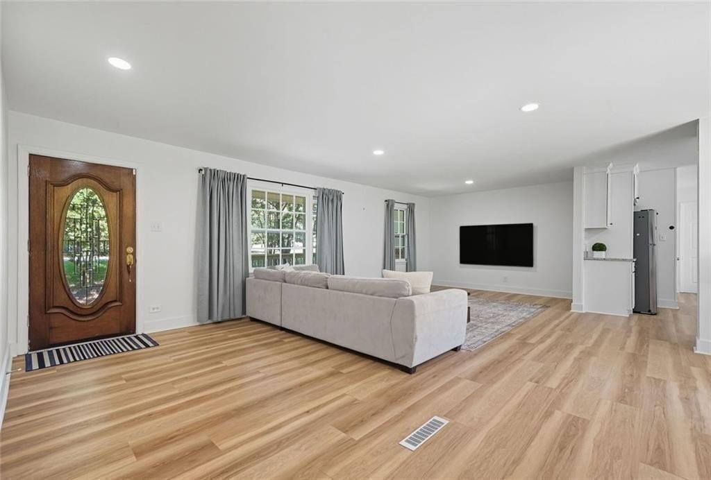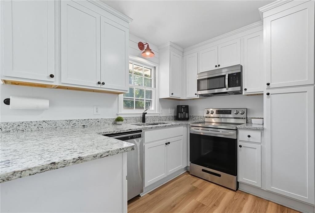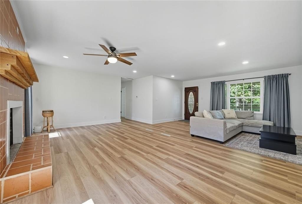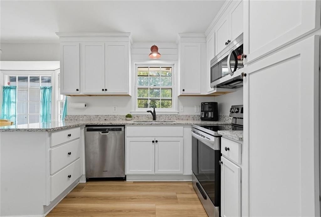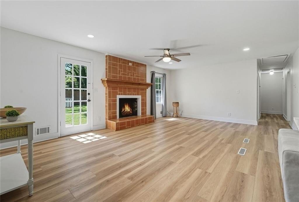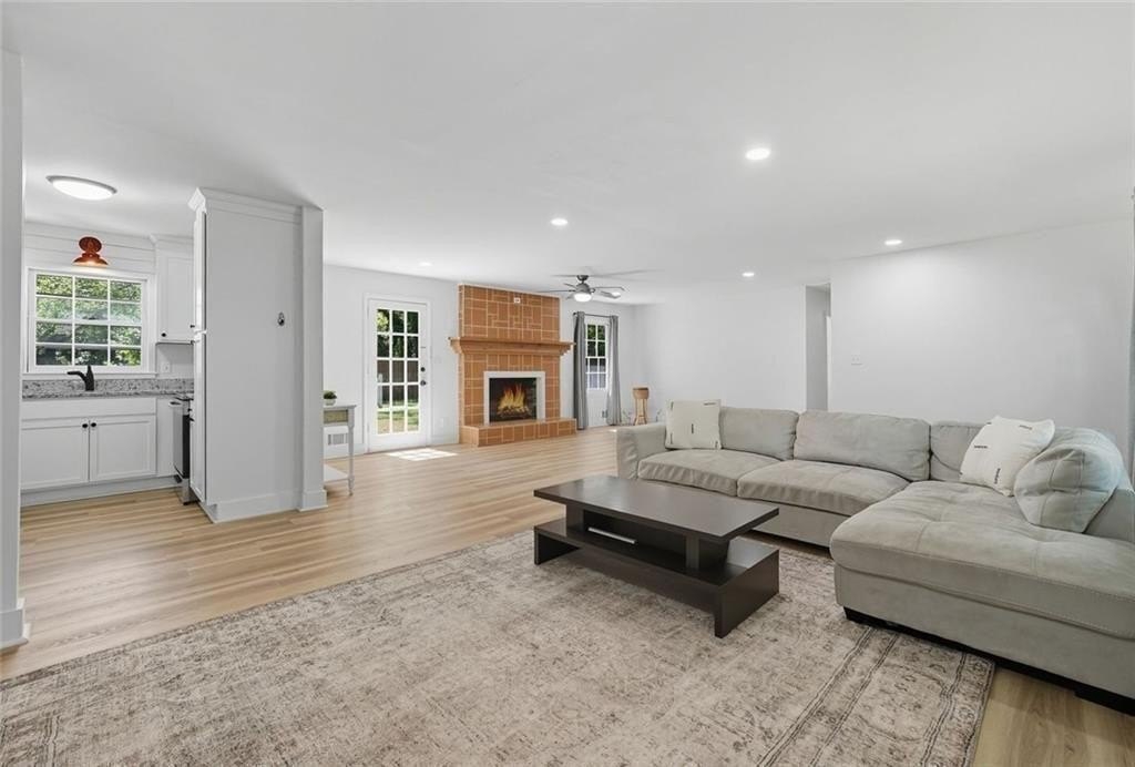 Freshly updated ranch living on a huge corner lot in the heart of Snellville! This move-in ready 3-bedroom, 2-bath home has been reimagined with a wide-open floor plan that brings the living and dining spaces together for effortless flow. Natural light pours in across brand-new flooring (2024), while a cozy fireplace anchors the living room. The kitchen features white cabinetry, granite counters, stainless steel appliances, and a cheerful breakfast nook. The primary suite is paired with two additional bedrooms and updated bathrooms, offering everyday comfort and convenience. Practical updates include a brand-new HVAC unit (2024) and a sealed crawl space for peace of mind. Outside, the fenced backyard is ready for pets and play, with an additional outbuilding that could easily be transformed into an apartment, studio, or workshop. With plenty of yard space, a flexible detached structure, and a true open-plan layout inside, this home is set up for modern living with room to grow.