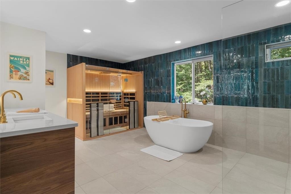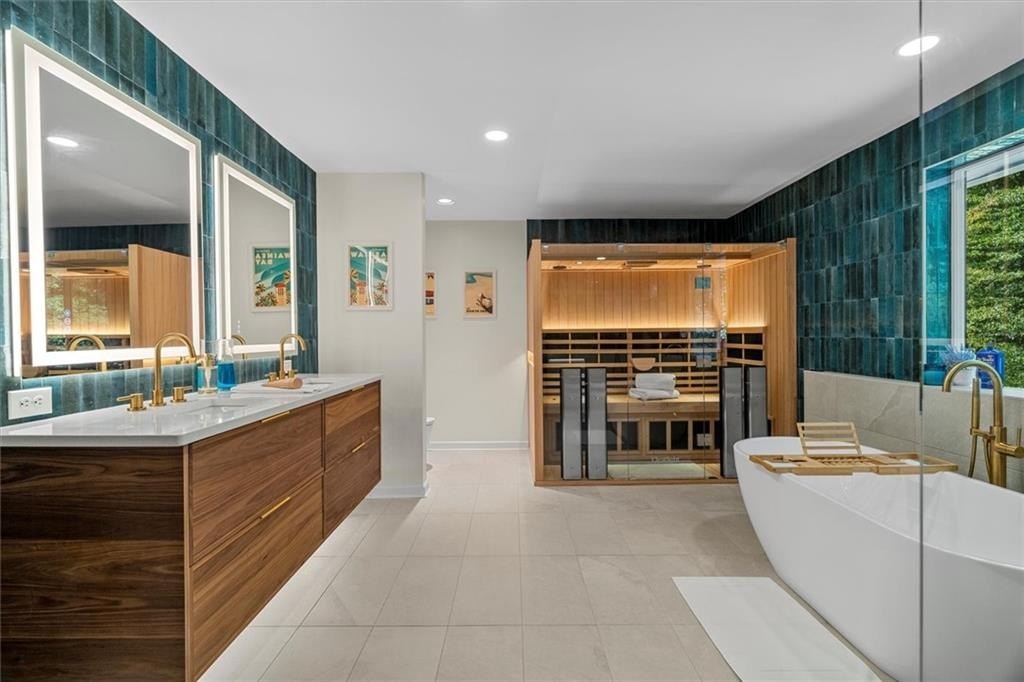 Upstairs, the show-stopping owner’s suite sets this home apart. A former fifth bedroom has been ingeniously transformed into a boutique-style walk-in closet of enviable scale with a en-suite laundry area, flowing seamlessly into the primary bedroom and a completely remodeled, state-of-the-art spa bath. This personal retreat is a masterpiece, featuring a stepless, frameless glass shower, a freestanding soaking tub, and the ultimate wellness upgrade: a built-in Clearlight Sanctuary 5 full-spectrum 5-person infrared sauna. It’s more than a luxury; it’s a differentiator! This is a true sanctuary for health, recovery and rejuvenation without ever leaving the house! Your daily escape to detox, relax, and reset!