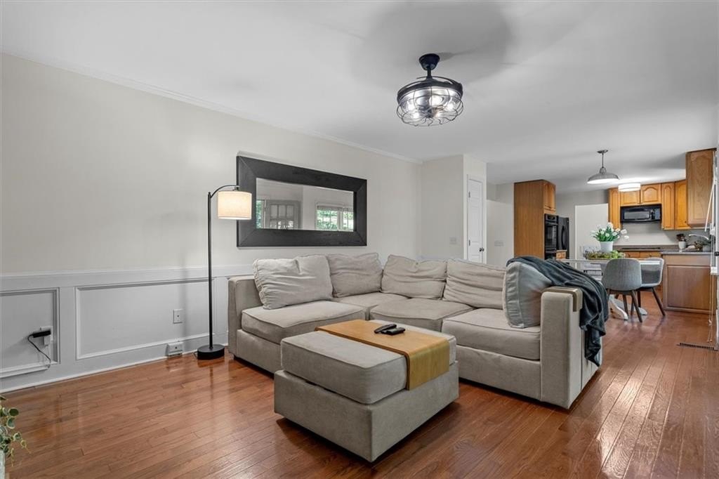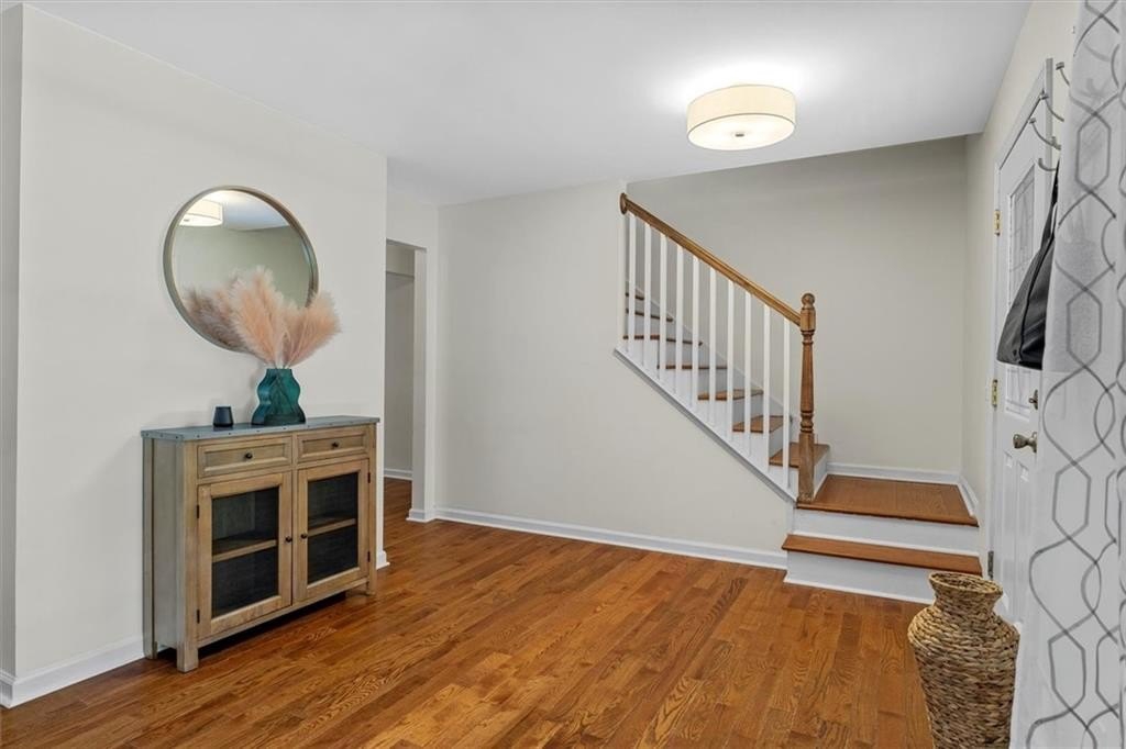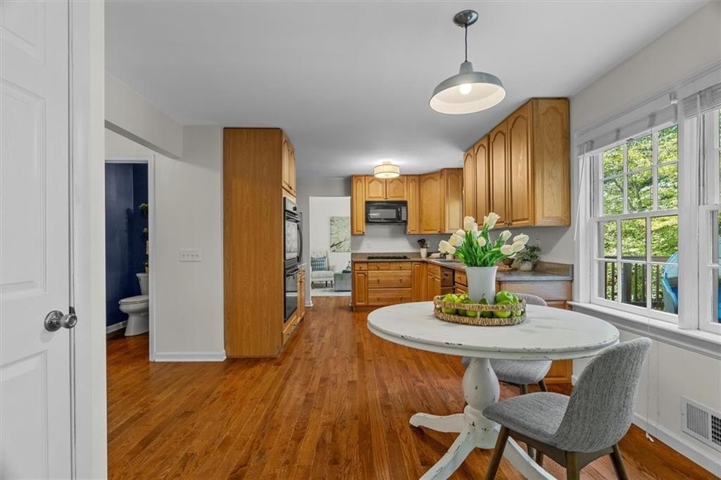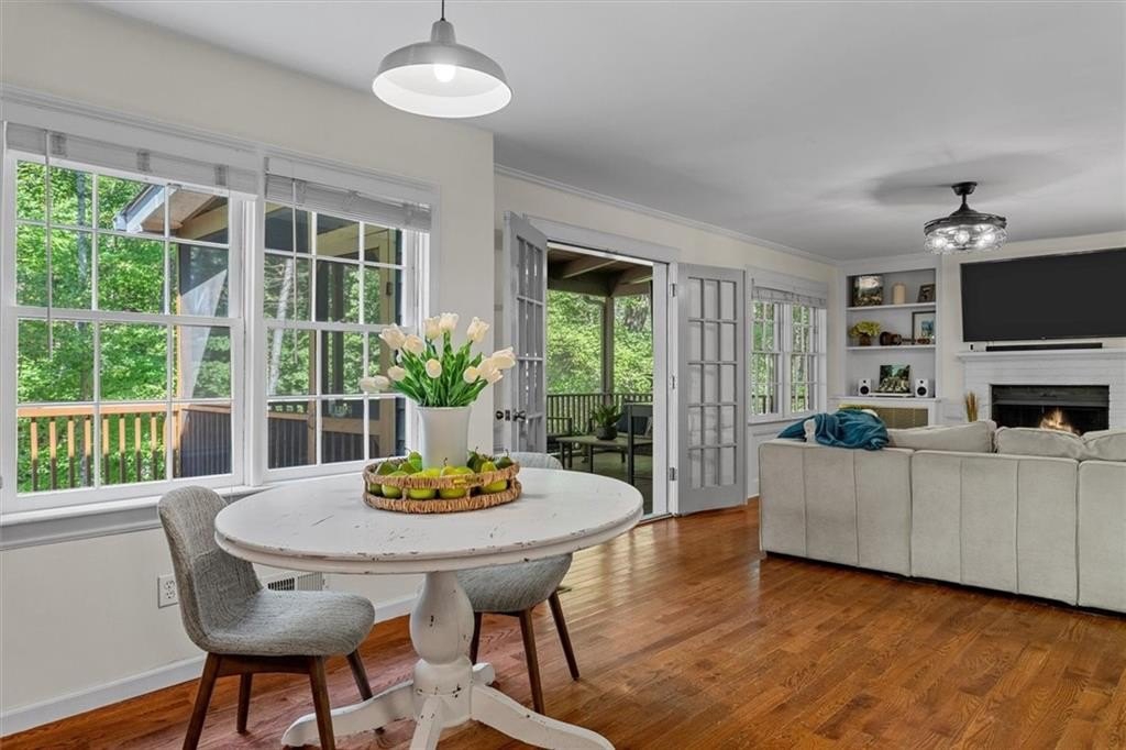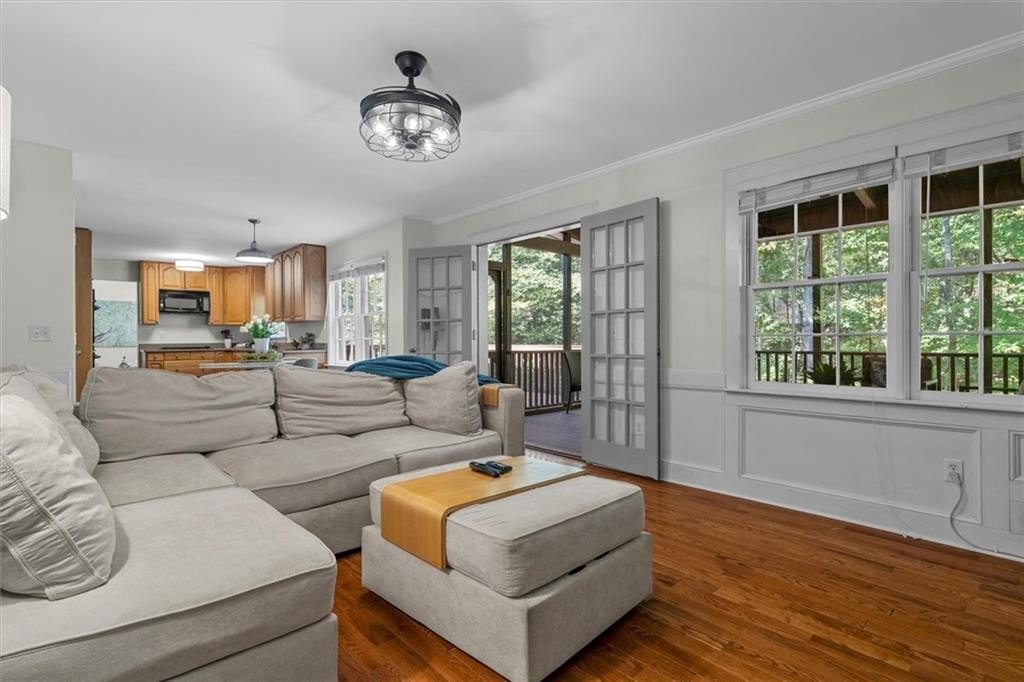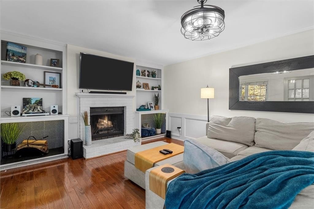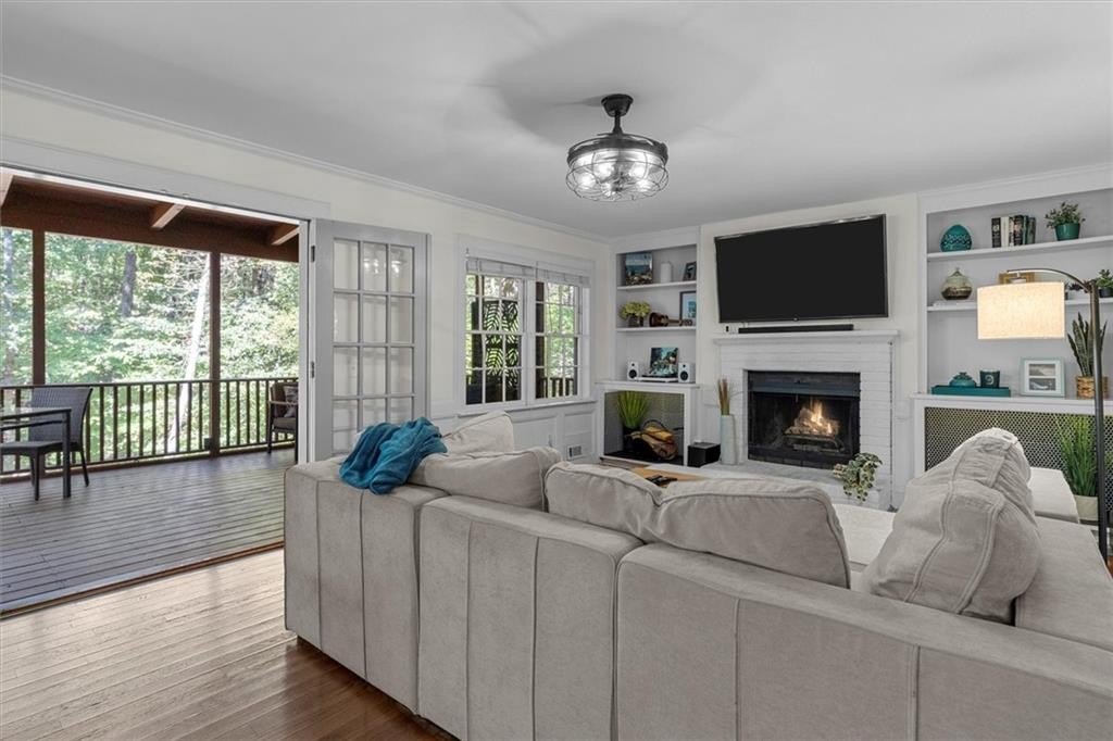 Inside, gleaming hardwood floors extend throughout both the main and upper levels, creating a warm and cohesive flow. The inviting family room, centered around a cozy fireplace and built-in shelving, opens to a charming screened-in porch, and open decking - your private treehouse retreat. The kitchen offers a generous footprint and opens to the family room, presenting a perfect canvas ready for your personal touch. A separate dining room and formal living room provide ample space for hosting and entertaining.
