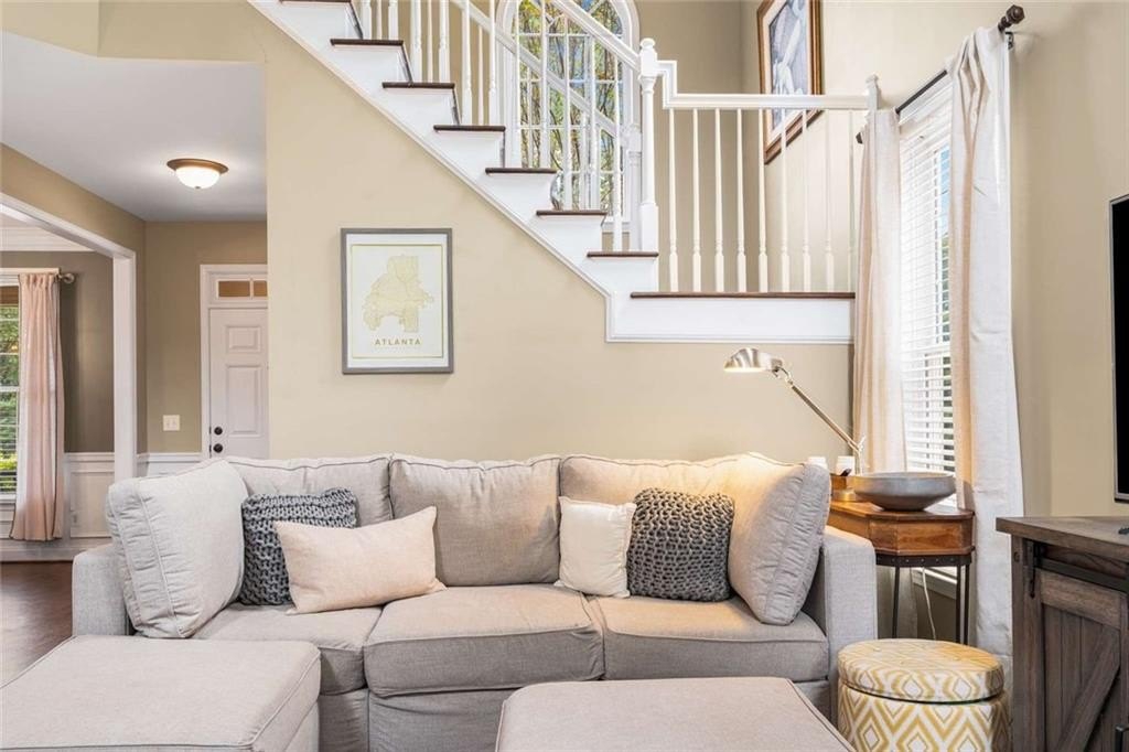 Welcome to this stunning MOVE-IN READY home with NEW ROOF,  in a desirable swim and tennis community with resort-style amenities. Enjoy gatherings in the dramatic two-story living room with cozy fireplace, hardwood floors and an abundance of daylight. The eat-in kitchen with breakfast bar, pantry and hardwood floors, provides easy access to the dining room where entertaining will be a delight. This fantastic floorplan offers a bedroom and full bathroom on the main floor. Upstairs you will find an oversized owner's suite with spa-like bathroom, two additional bedrooms, a hall bathroom and laundry room. The owner's suite bathroom boasts a soaking tub, a walk-in shower with glass enclosure, separate vanities, and a private water closet. The secondary bedrooms each have custom painted walls that will take you to imaginary places. This fabulous home offers a spacious, fenced-in backyard with patio, ideal for outdoor dining and entertaining.  The Retreat at Old Vinings Lake is a vibrant community where residents can enjoy a community pool, a park, tennis courts, a scenic lake with walking trail, and a clubhouse. Don’t miss this move-in-ready home located in an unbeatable location for less than $500K!