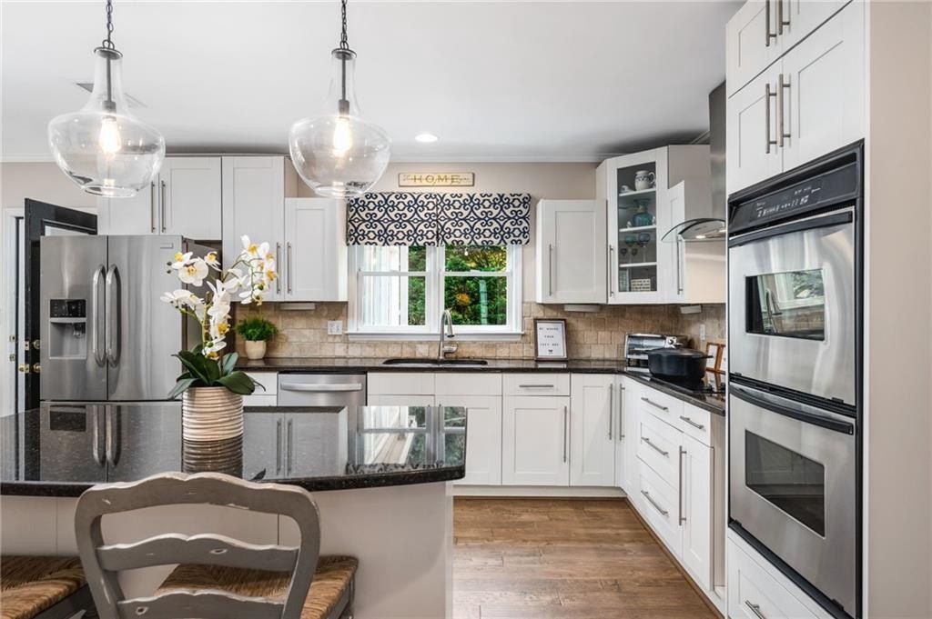 Welcome home to this beautifully updated East Cobb gem in a quiet swim community within the county’s top school district. The HOA includes all lawn care, giving you a low-maintenance lifestyle and more time to relax. Inside, the two-story great room features a charming brick gas/wood-burning fireplace and opens to a spacious dining area. The updated kitchen offers white cabinetry, granite countertops, stainless steel appliances, island seating, and ample storage. A cozy keeping room just off the kitchen is the perfect spot to enjoy morning coffee or use as an additional dining space. The bright, versatile sunroom - currently used as a home gym and office - provides flexible space for endless possibilities. Step outside to an expanded deck overlooking a private yard, adorned with party lights and designed with separate areas for dining and lounging - perfect for everyday living or entertaining.