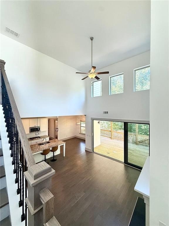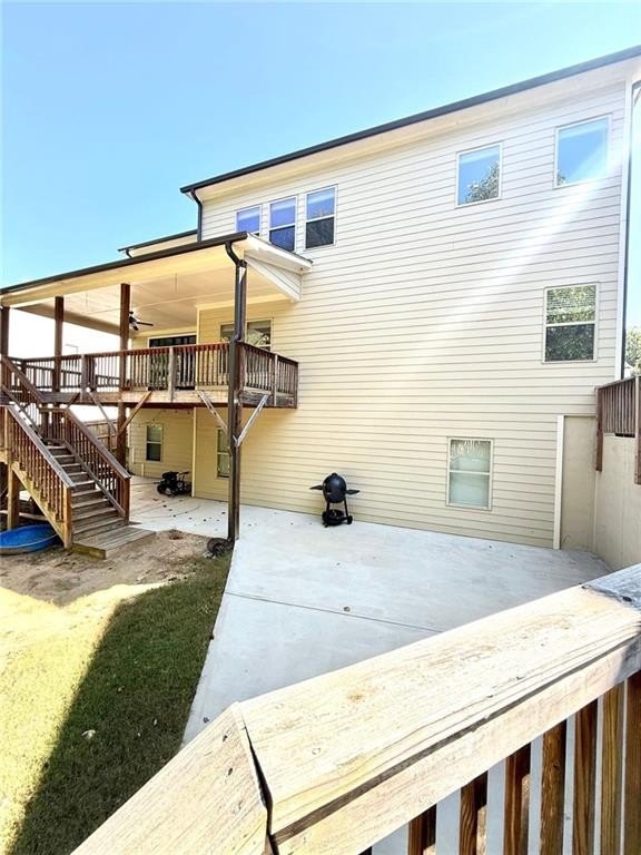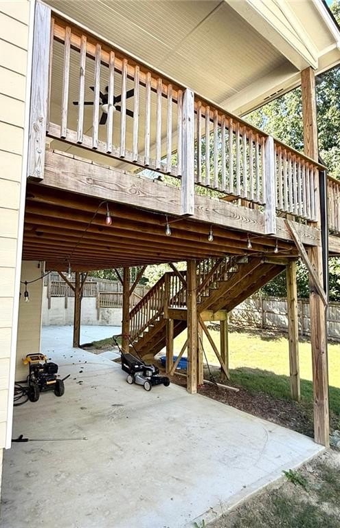 Step out onto the deck with stairs leading to the fenced backyard—ideal for pets and playtime.
