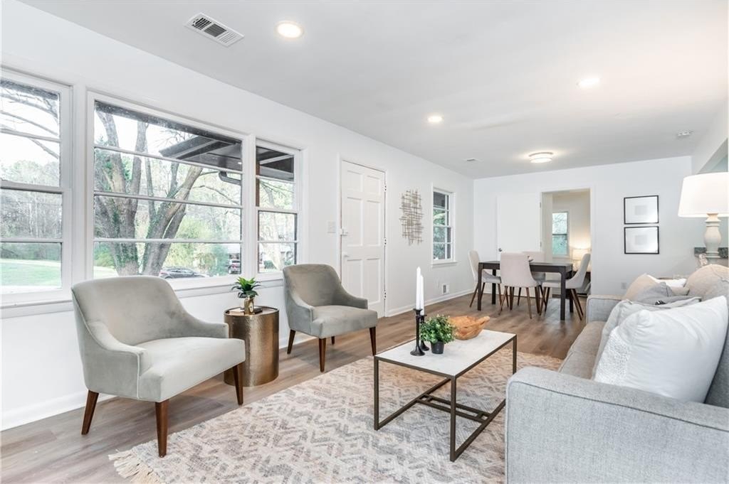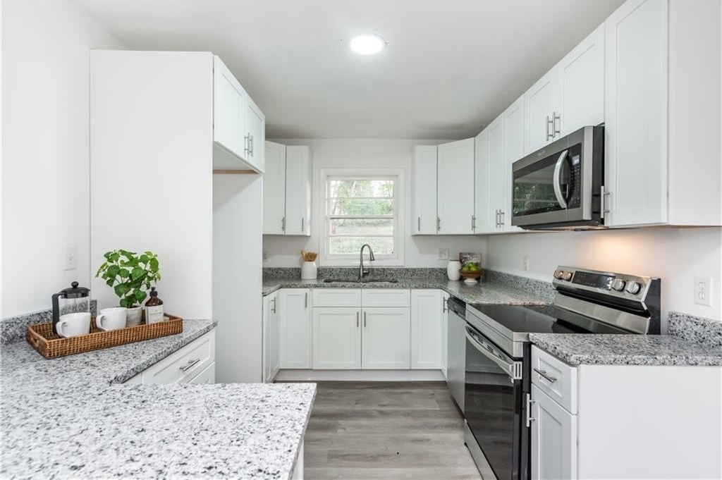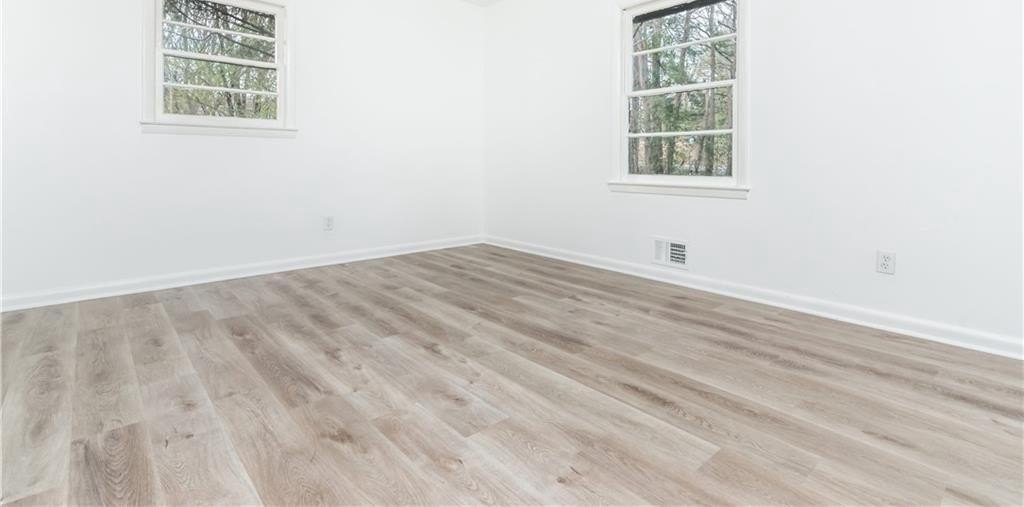 Completely updated 4-bedroom, 2-bathroom white brick home in a quiet, established Austell neighborhood! This move-in-ready home features an open-concept living and dining area filled with natural light, brand-new kitchen with white cabinets, granite countertops, and stainless steel appliances, plus stylish LVP flooring throughout. The private primary suite offers two closets and a fully renovated bathroom with a trendy tile shower. On the opposite side, you’ll find three spacious bedrooms and another fully remodeled bath — with one bedroom opening directly to the large, level backyard through sliding glass doors.