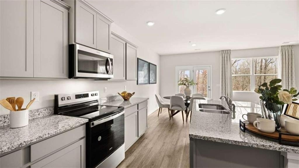 4 MINS FROM INTERSTATE I75, SHOPPING, RESTAURANTS, & GREAT SCHOOLS. AMENITIES INCLUDE: WALKING TRAILS, COVERED PAVILIONS, PLAYGROUNDS, GRILLS, FIREPIT, WATER FOUNTAIN, DOGGIE PARK: CALL TODAY FOR ***SPECIAL INTEREST RATE APPLY W/PREFERRED LENDER. THIS PRISTINE COMMUNITY OFFERS INCREDIBLE INTERIOR FEATURES, INCLUDING TILED SHOWERS, QUARTZ COUNTERS IN THE KITCHEN, MARBLE COUNTERS IN THE BATHROOMS, SOFT CLOSE CABINETS & BACK-SPLASH. Located just minutes from Piedmont Henry Hospital, ECHO GLEN Community is conveniently located to shopping and dining, as well as easy access to I-75. The SALISBURY plan is a three-bedroom townhome that features an open concept on the main level, with a spacious family room, casual dining and island kitchen so everyone can gather round. Cabinet color options is white or gray. You will never be too far from home with Home Is Connected. Your new home is built with an industry leading suite of smart home products that keep you connected with the people and place you value most. Upstairs offers a private bedroom suite with spa-like bath and the secondary bedrooms include lots of closet space. Please note: The Secondary photos of this home are of a decorated model or spec home (STOCK PHOTOS) used for illustrative purposes only and do not depict the actual home. ***Prices, Incentives and other information are subject to change without prior notice.