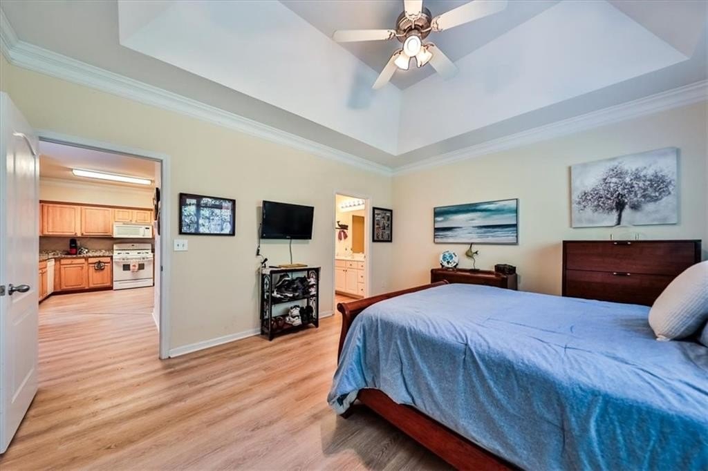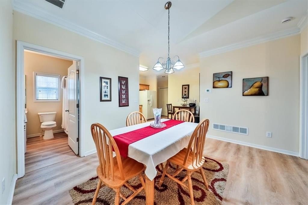 Welcome Home! Enjoy easy living in this low-maintenance 2-bedroom, 2-bathroom condo located in the gated Villas of Seven Springs community. This privately tucked-away unit features its own entrance with a covered front porch. Step inside to an open floor plan showcasing new blonde laminate flooring throughout. The cozy living room includes a gas fireplace flanked by two windows that fill the space with natural light and offers an open view to the dining area and kitchen. An office or sunroom features two walls of windows, allowing you to enjoy the beauty of every season while remaining comfortable indoors. The hall bathroom is conveniently accessible from both the common area and the second bedroom. The kitchen offers stained cabinets, granite countertops, and a tiled backsplash. A pantry and laundry area are located near the door to the garage, making unloading groceries and managing laundry a breeze. The spacious primary bedroom features a tray ceiling and a large triple window with a center arch. The split primary bathroom includes a long marble countertop with single-bowl sink, a large mirror, walk-in closet access, and a double shower. The double garage features an insulated, automated door and a custom-built workbench. Community amenities include a pool and a putting green for your enjoyment.