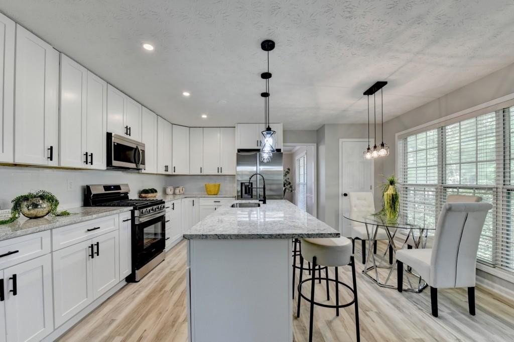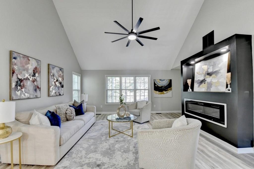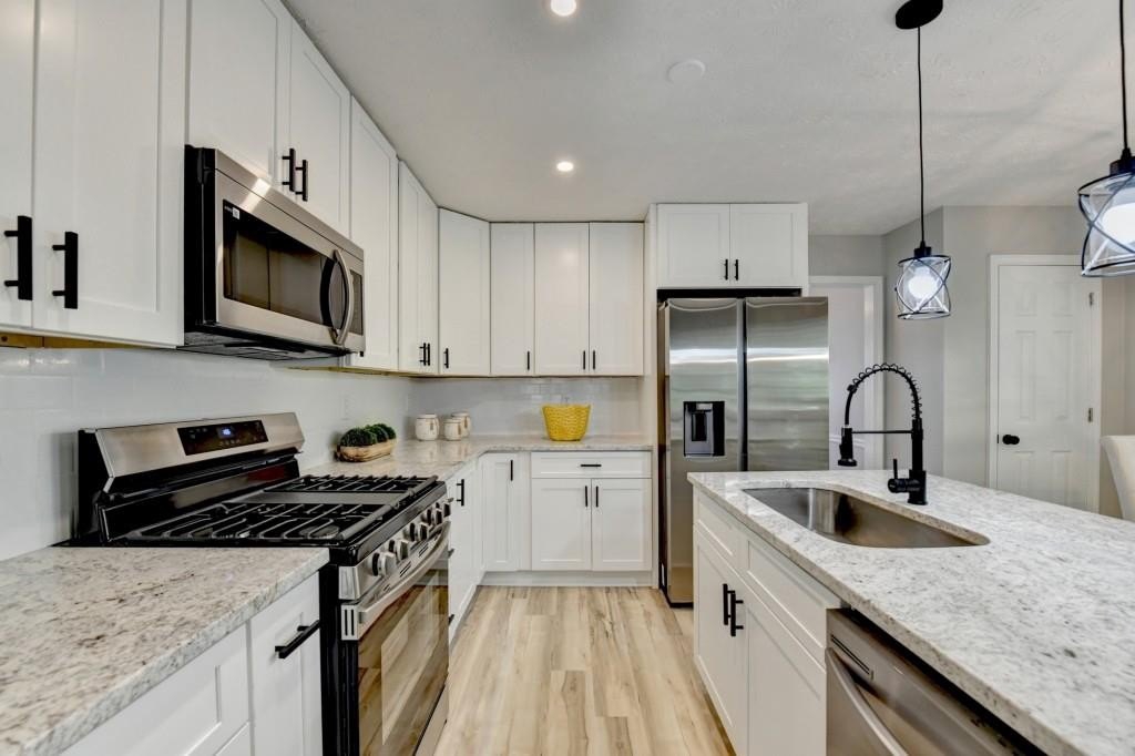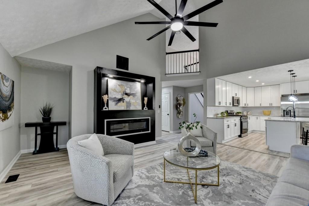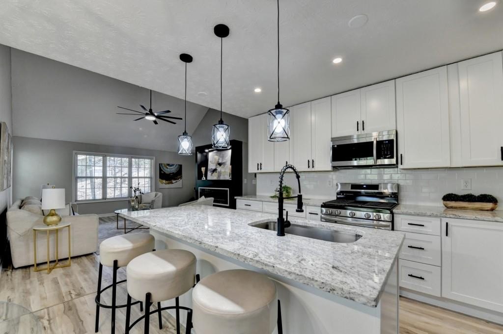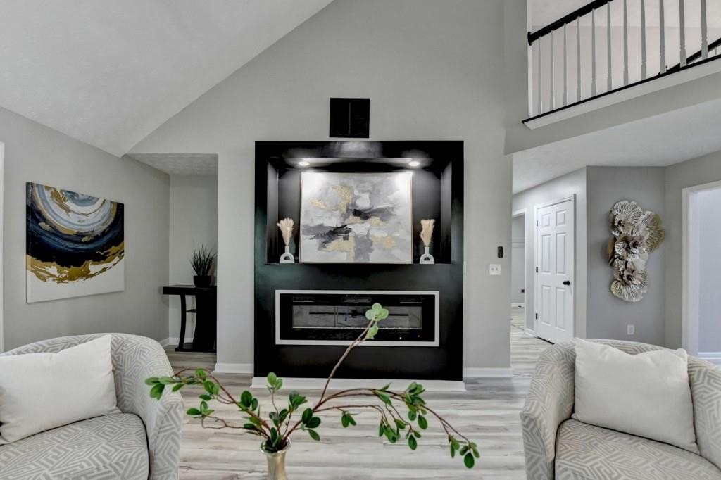 Experience modern luxury at its finest in this completely reimagined home. It is perfectly situated on a quiet cul-de-sac lot with a picturesque creek backdrop. Every detail has been elevated with sleek finishes and sophisticated design. Step inside to soaring style with all-new LVP flooring. Enjoy fresh designer paint and contemporary light fixtures that create an airy, elegant ambiance. The chef's kitchen is a true centerpiece. It features brand-new cabinetry, quartz-style countertops, a striking backsplash, and stainless-steel appliances. These elements bring both beauty and function. The living area is anchored by a stunning modern fireplace, offering a bold statement of style and comfort. Each of the 2.5 custom bathrooms has been completely transformed with new vanities, chic tilework, and luxurious showers and tubs. Below, the expansive unfinished basement awaits your vision, perhaps a home theater, gym, or entertainment suite. This residence combines sophistication, innovation, and comfort. It delivers the ultimate move-in-ready home.