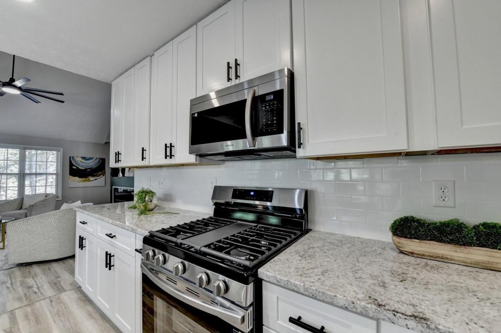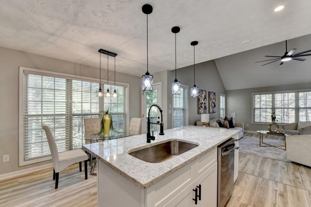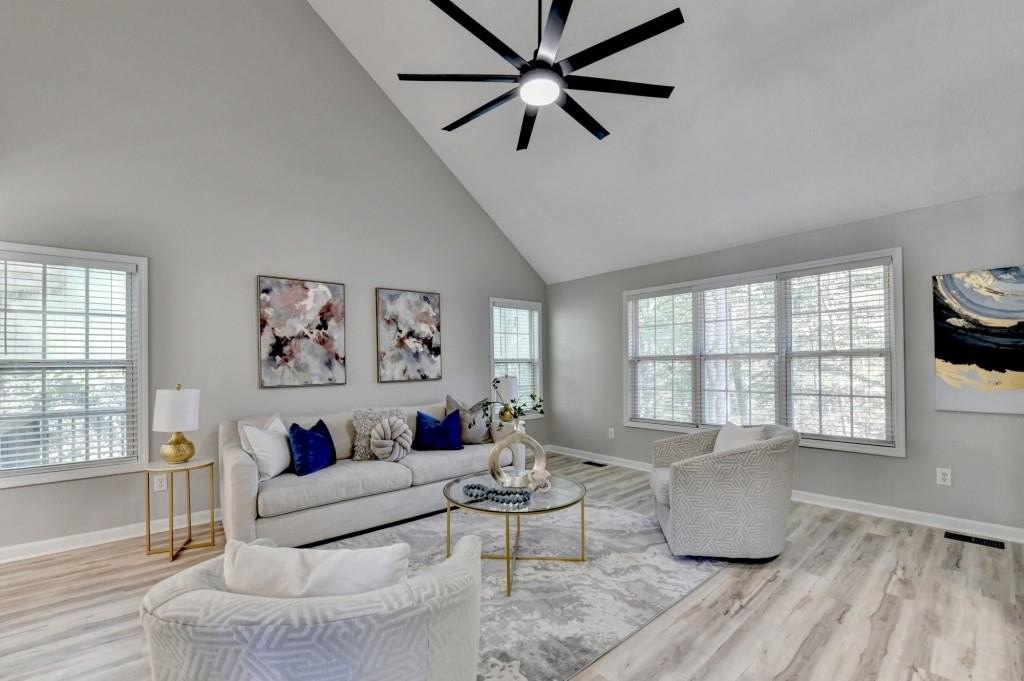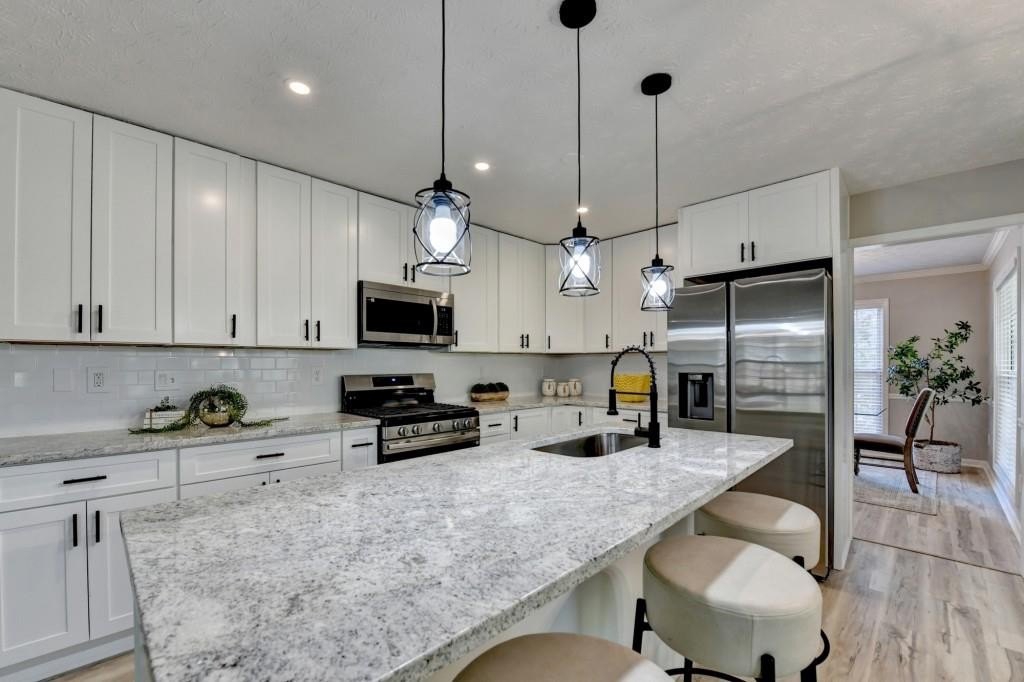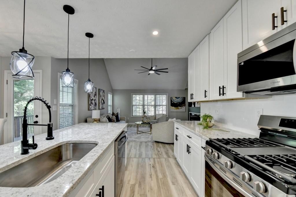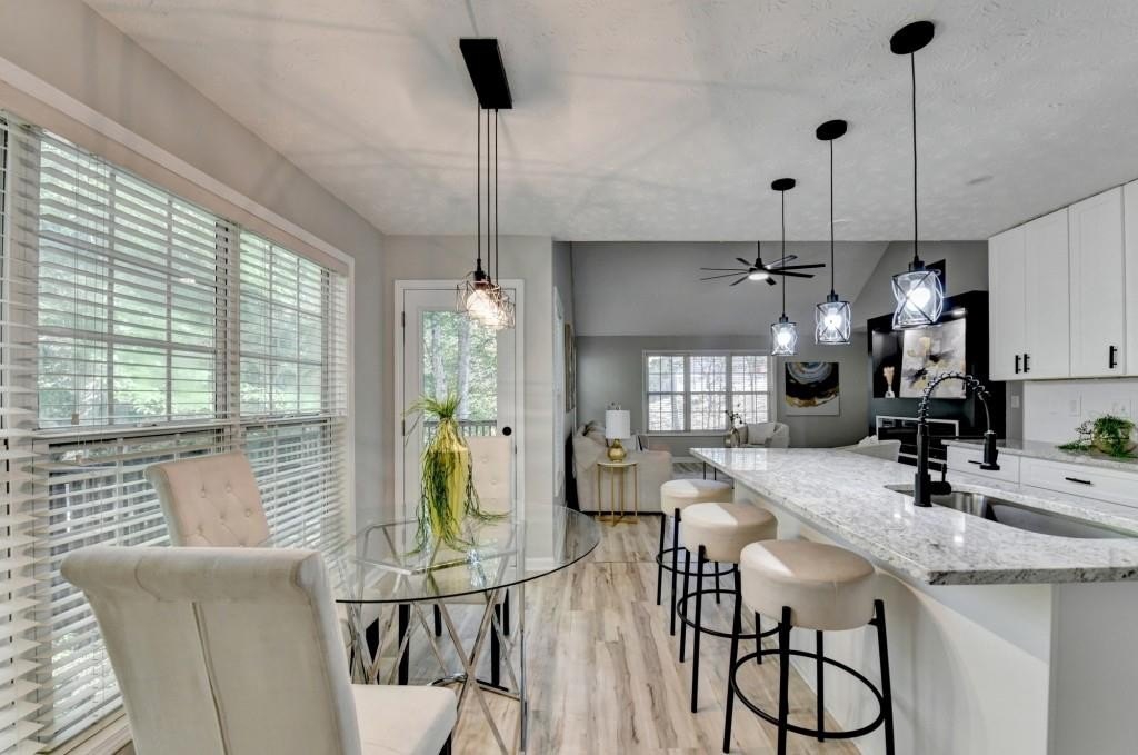 Experience modern luxury at its finest in this completely reimagined home. It is perfectly situated on a quiet cul-de-sac lot with a picturesque creek backdrop. Every detail has been elevated with sleek finishes and sophisticated design. Step inside to soaring style with all-new LVP flooring. Enjoy fresh designer paint and contemporary light fixtures that create an airy, elegant ambiance. The chef's kitchen is a true centerpiece. It features brand-new cabinetry, quartz-style countertops, a striking backsplash, and stainless-steel appliances. These elements bring both beauty and function. The living area is anchored by a stunning modern fireplace, offering a bold statement of style and comfort. Each of the 2.5 custom bathrooms has been completely transformed with new vanities, chic tilework, and luxurious showers and tubs. Below, the expansive unfinished basement awaits your vision, perhaps a home theater, gym, or entertainment suite. This residence combines sophistication, innovation, and comfort. It delivers the ultimate move-in-ready home.