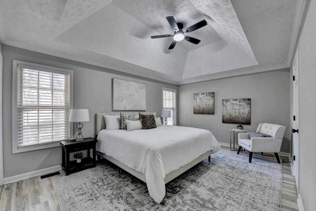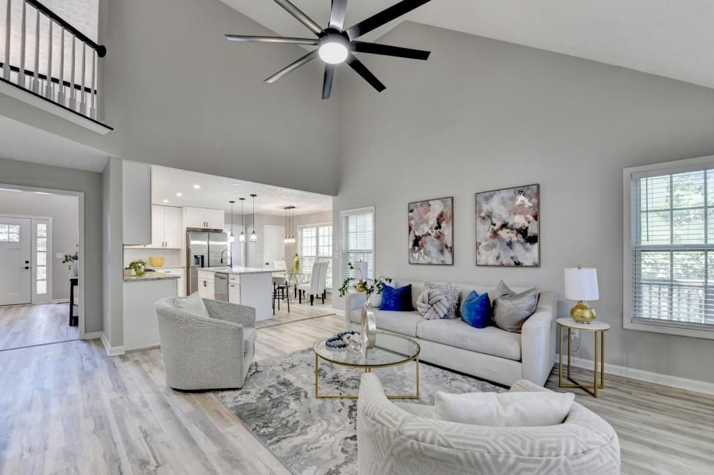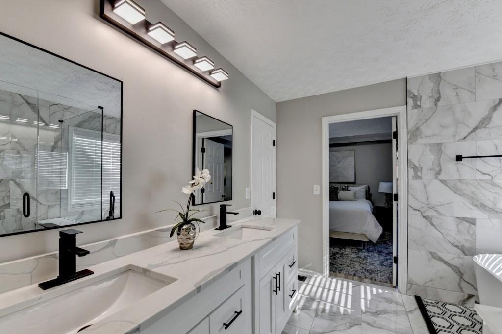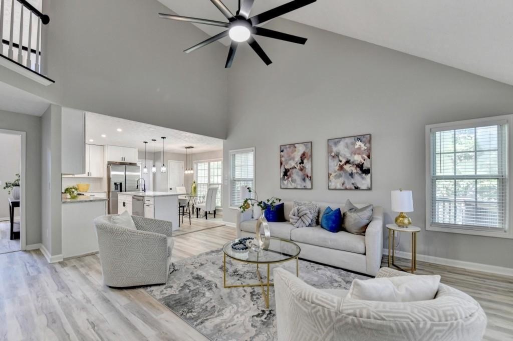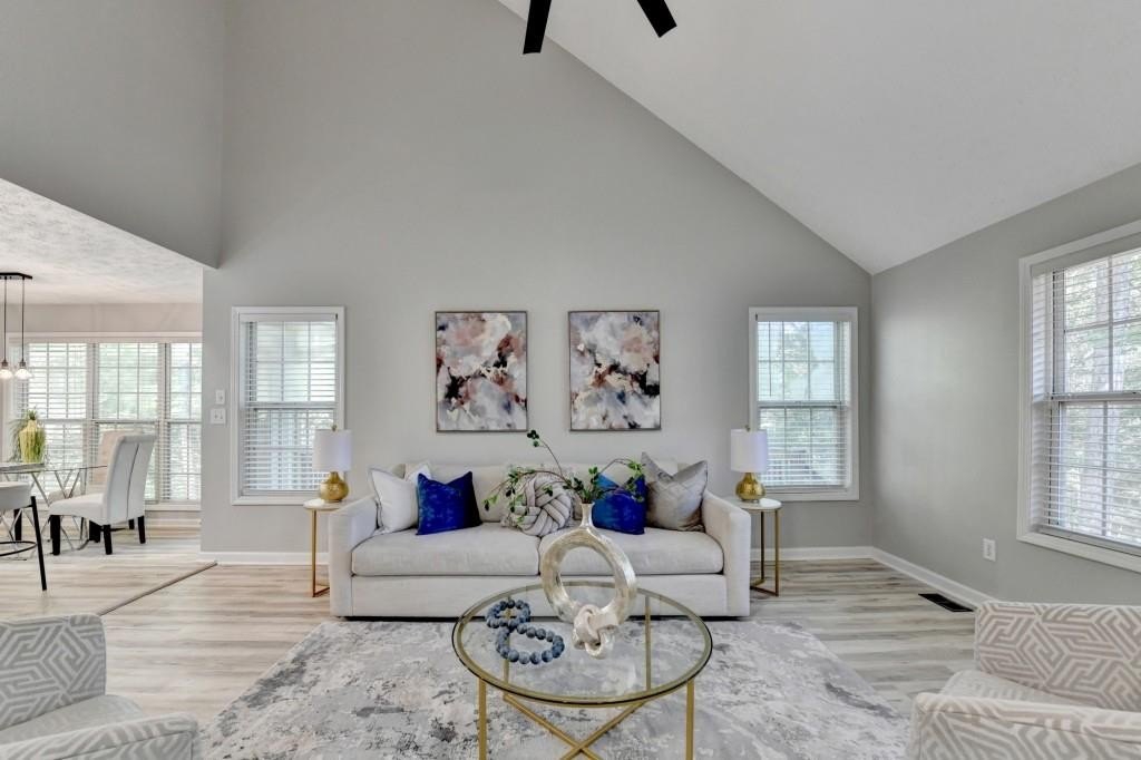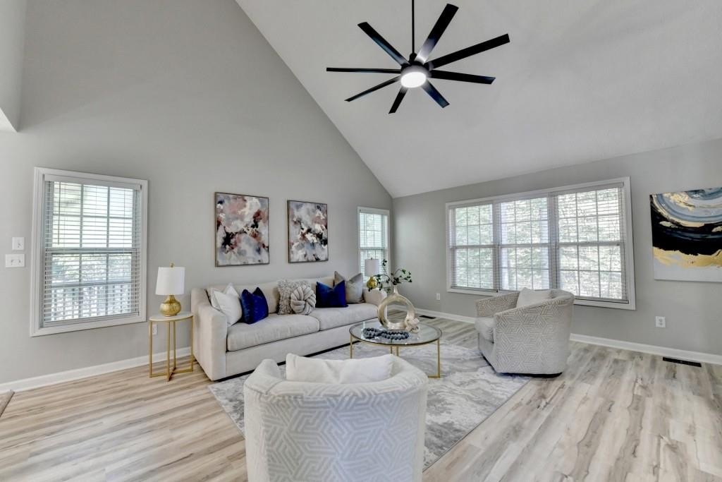 Experience modern luxury at its finest in this completely reimagined home. It is perfectly situated on a quiet cul-de-sac lot with a picturesque creek backdrop. Every detail has been elevated with sleek finishes and sophisticated design. Step inside to soaring style with all-new LVP flooring. Enjoy fresh designer paint and contemporary light fixtures that create an airy, elegant ambiance. The chef's kitchen is a true centerpiece. It features brand-new cabinetry, quartz-style countertops, a striking backsplash, and stainless-steel appliances. These elements bring both beauty and function. The living area is anchored by a stunning modern fireplace, offering a bold statement of style and comfort. Each of the 2.5 custom bathrooms has been completely transformed with new vanities, chic tilework, and luxurious showers and tubs. Below, the expansive unfinished basement awaits your vision, perhaps a home theater, gym, or entertainment suite. This residence combines sophistication, innovation, and comfort. It delivers the ultimate move-in-ready home.