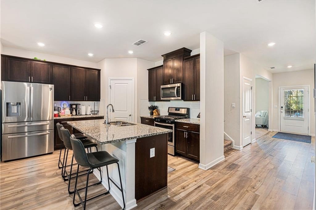 This stunning home features a spacious open floor plan with a large family room and a cozy electric fireplace—perfect for entertaining or relaxing. The eat-in kitchen boasts granite countertops, a large island, and stainless steel appliances, making it a chef’s dream. There’s also a separate formal dining room for special gatherings.