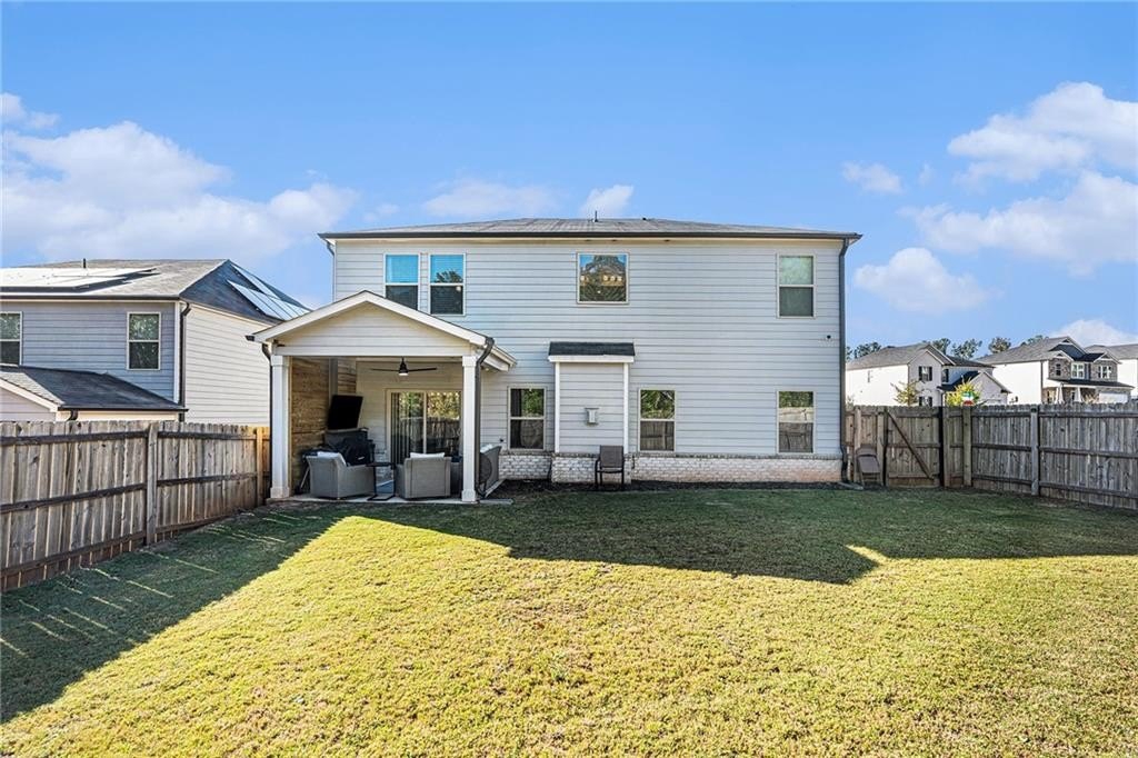 Enjoy the privacy of a fully enclosed backyard with a covered porch—ideal for outdoor dining or relaxing evenings.
