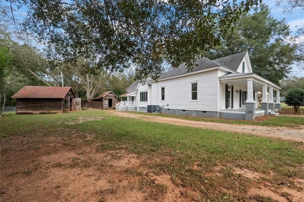 Welcome to this grand 1908 Craftsman Bungalow in the Apalachee community of Morgan County. Conveniently located between Madison (10 mins) and Watkinsville (20 mins), this community offers some of the best historic property in the area and all the quiet and relaxation of country life without spending 3 days on a lawnmower. The property retains most of its original features, like high bead board ceilings, a lot of the original heart pine floors, doors, door hardware, columns, fireplaces, mantels, and a great piece of fretwork when you first walk in. It also offers a lot of new windows, a recently replaced HVAC system and a roof that is about 10 years old in addition to recent replacement of the Septic (2024), well, water heater and upgraded plumbing and electrical systems. The space offers 3 true bedrooms plus a great office space or playroom. Lots of space in the yard for the pups to wear themselves out and 2 rustic outbuildings for that car restoration hobby or to turn into a killer she-shed. The front porch is absolutely the best room in the house and the place to meet all the neighbors but at night the show the stars put on cannot be beat. Call today for an appointment to see if you can make this piece of paradise your own.