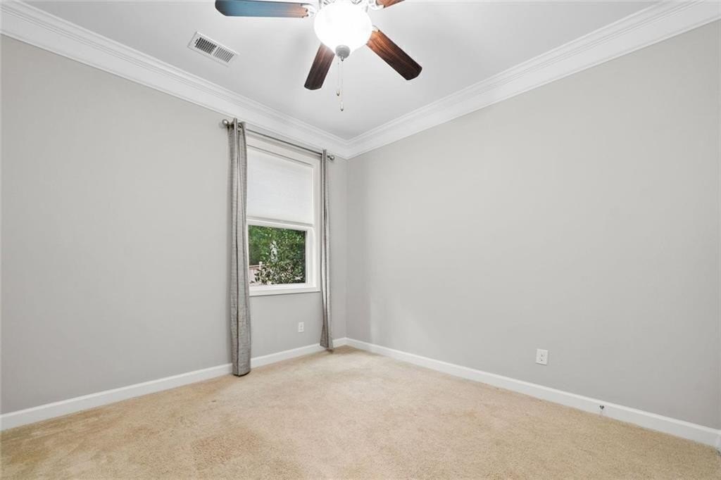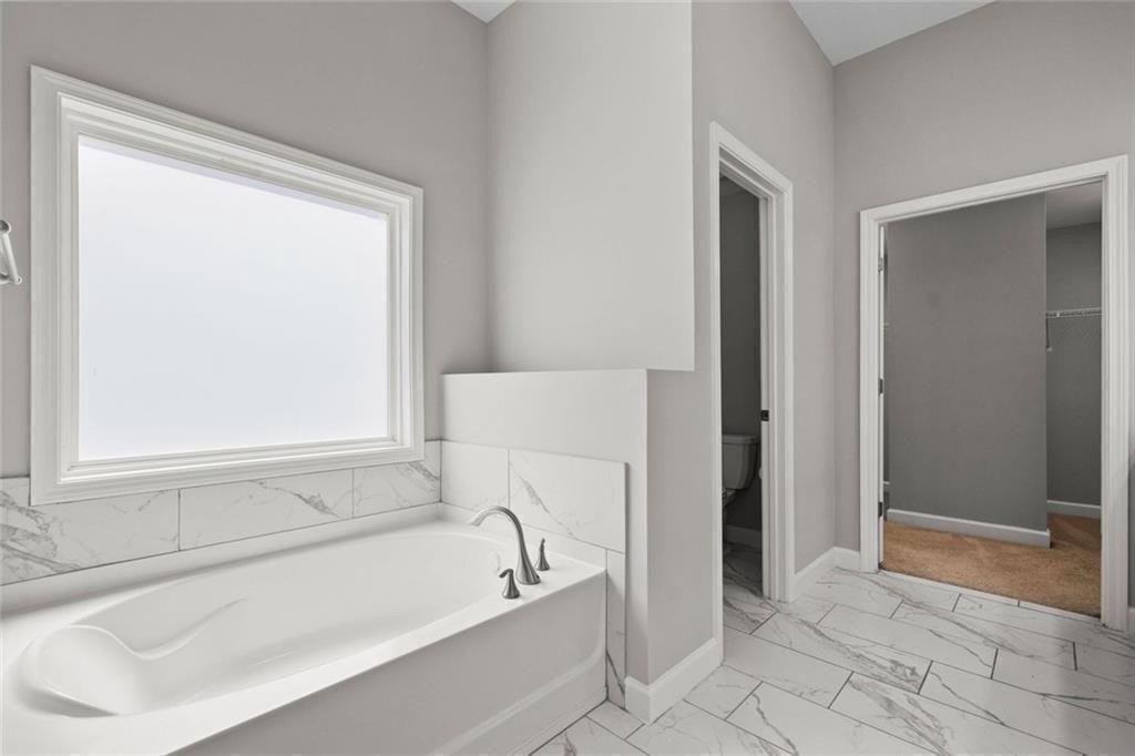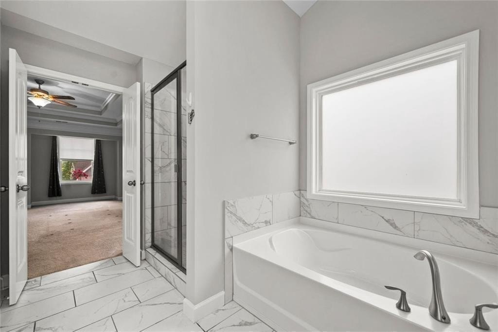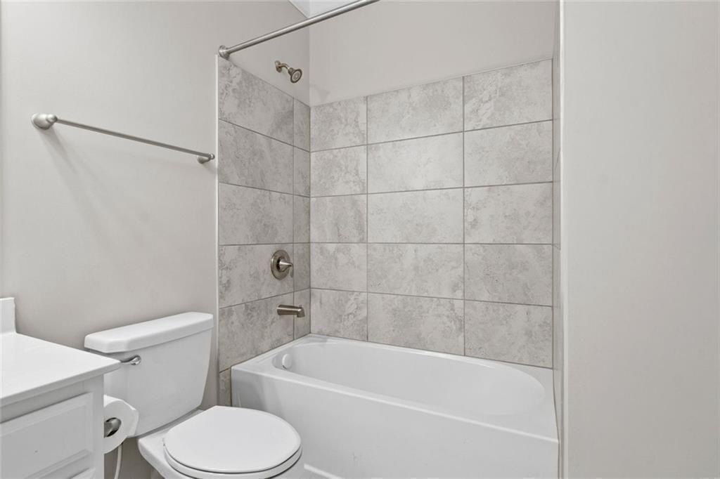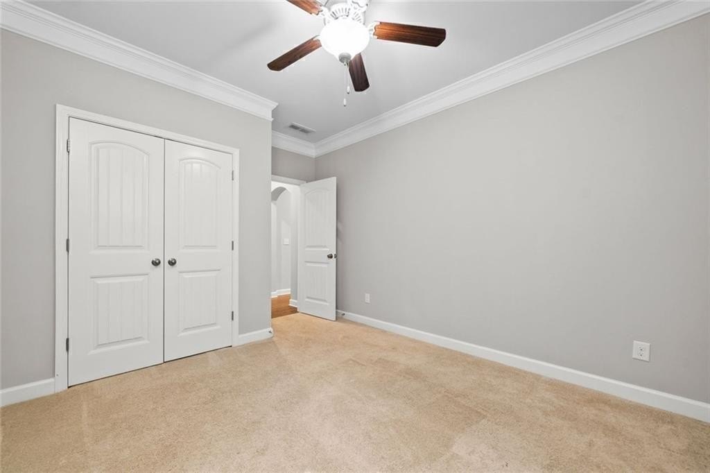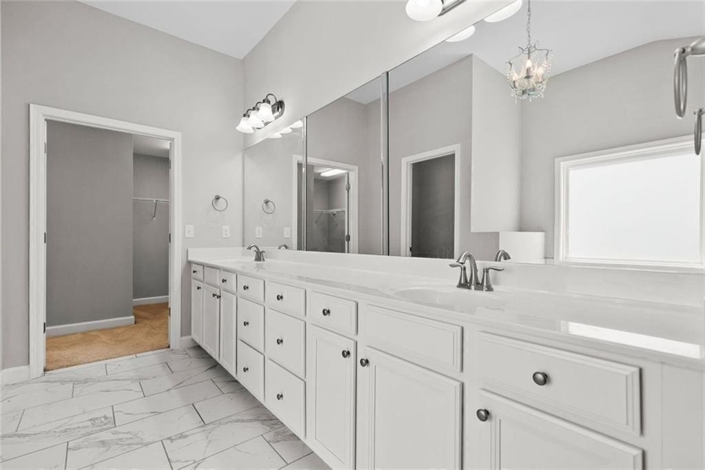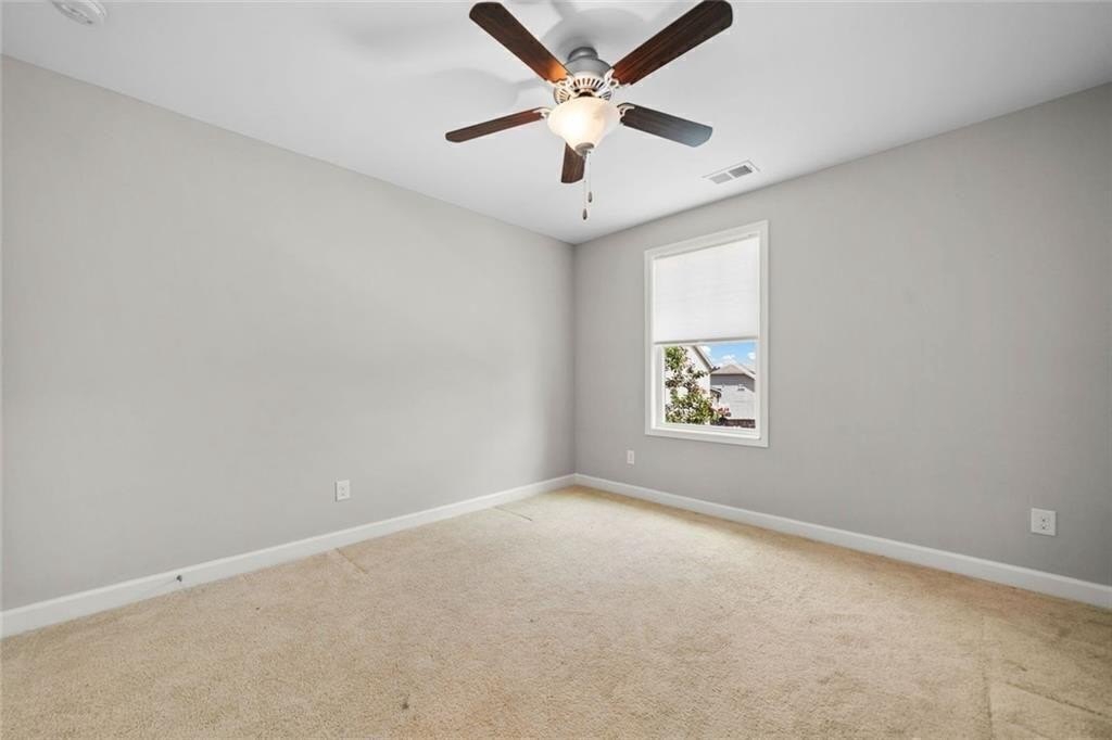Upstairs, there’s a flexible loft great for gaming, working, or relaxing. You’ll also find three good-sized bedrooms, and a full bath. The roomy primary suite boasts a double trey ceiling. It includes a large walk-in closet and a lovely en suite bath. The bath features a soaking tub, a tiled shower, and double vanities.