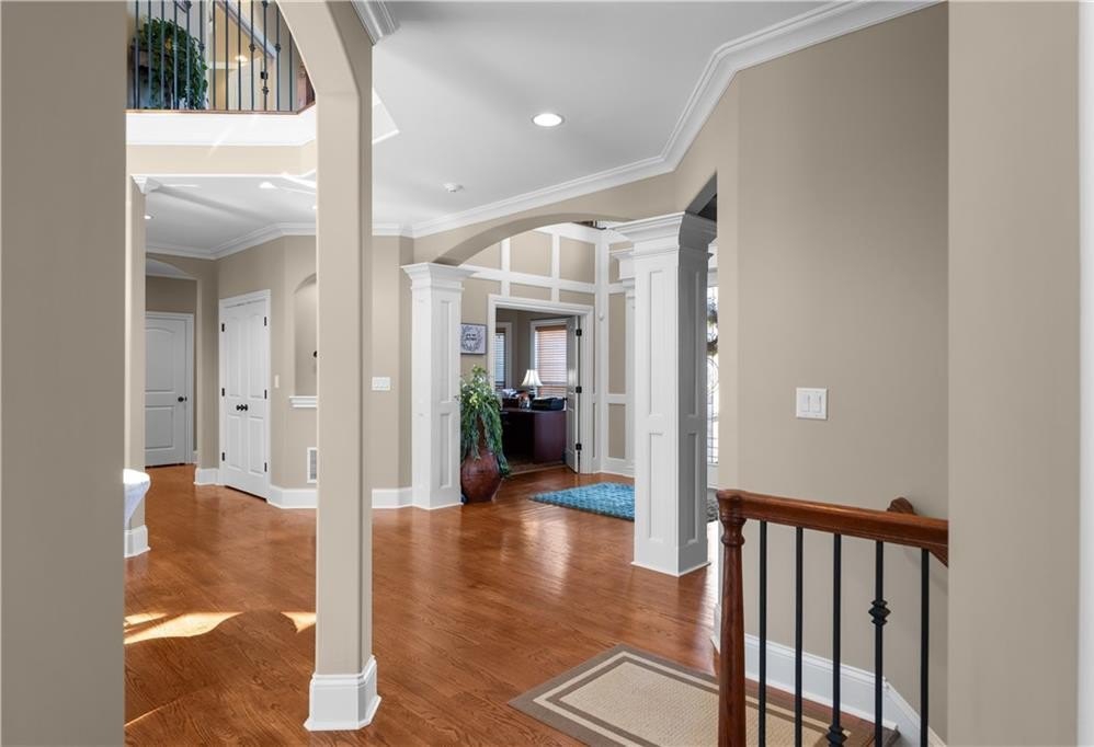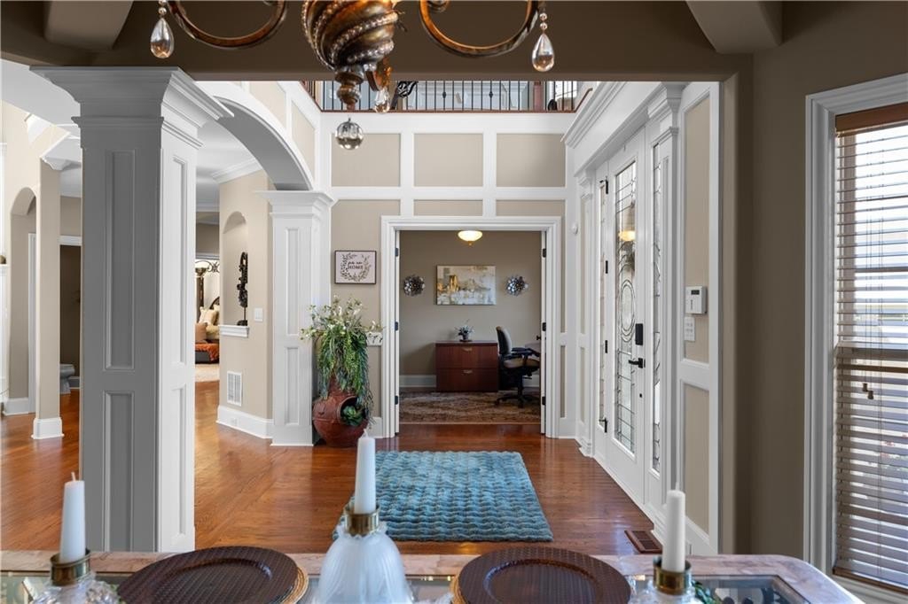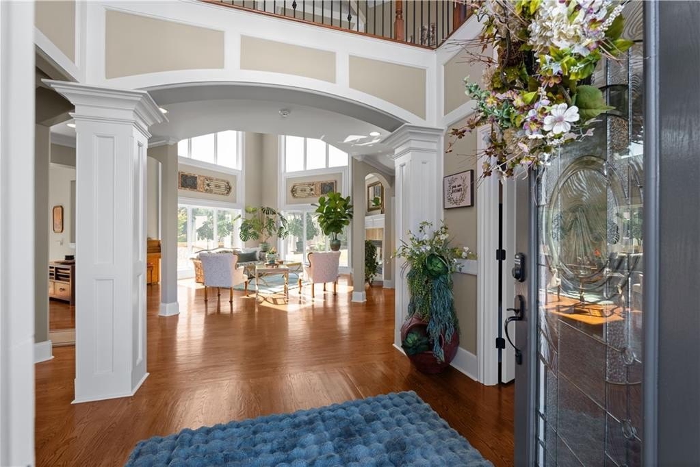 Welcome home to your stunning 5,200 sq. ft. custom-built private estate, gracefully nestled along a chain of tree-lined lakes in the highly sought-after Vickery Lane neighborhood. A long, dramatic driveway leads to an impressive 4-car garage, setting the tone for this elegant lakeside estate. This meticulously maintained 4-bedroom, 4.5-bath residence offers two luxurious owner’s suites—one on each level—and ensuite bathrooms in every bedroom, thoughtfully designed to adapt to your family’s evolving lifestyle.