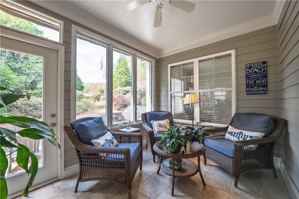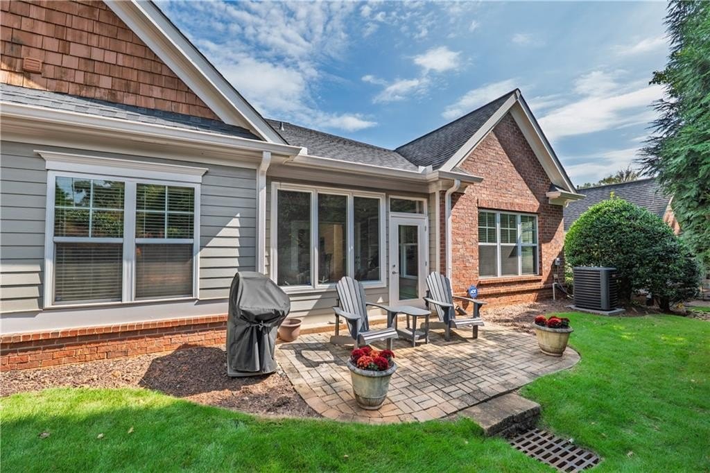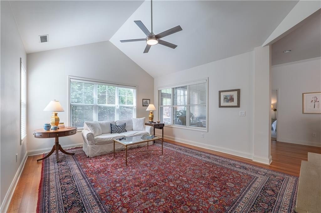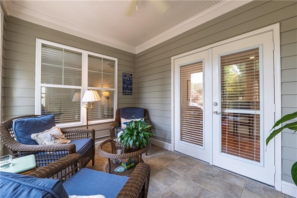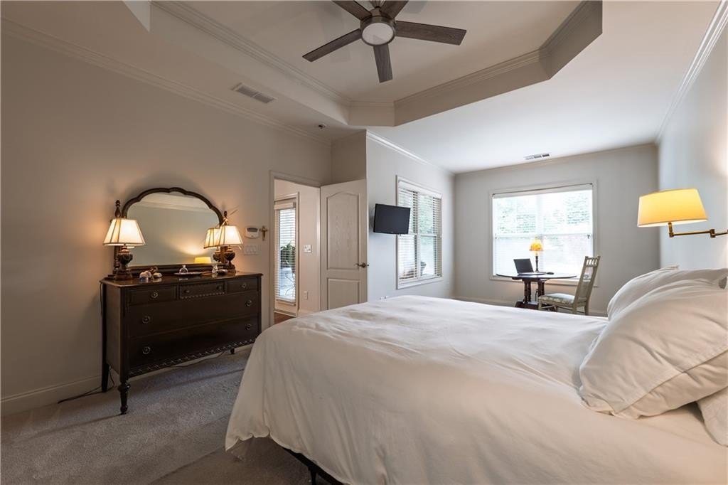 Seasons of Creekside is a charming swim and clubhouse community in a great location. Just minutes from downtown Alpharetta and Crabapple. Easy walk to Wills Park! This well maintained end unit has plenty of natural daylight offering one level living. Prior to entering the main living space you will find the spare bedrooms with a full bath. The dining room is very spacious with easy access to the kitchen. The kitchen has new quartz counter tops/back splash and warm cabinetry. The oversized main living space is ready for entertaining. The private owners suite is located in the rear of the property and has a sitting area with a view of the courtyard, an updated bathroom with a separate shower/garden tub and a custom walkin closet. Enjoy the "All Season" room with access to a private outdoor patio. The home also features an upper level climate controlled storage area that easily can be finished for an additional living space. The owner has taken great care adding new light fixtures, bathroom vanity refacing including counter tops, new HVAC, & fresh paint. Do not miss out on this rare opportunity to tour this lovely condo in a quaint community of just 27 homes in the heart of Alpharetta.