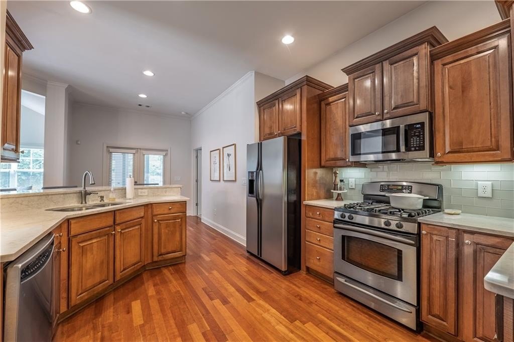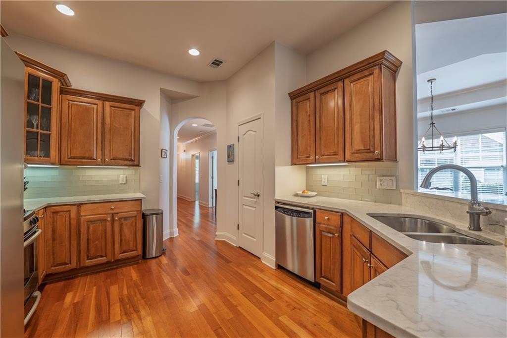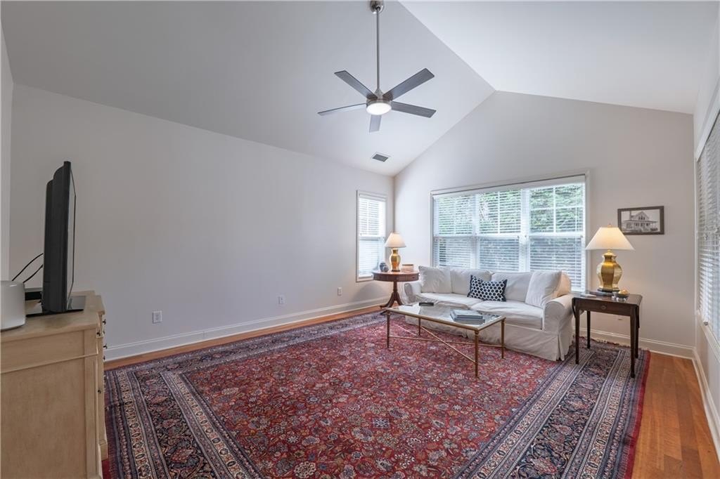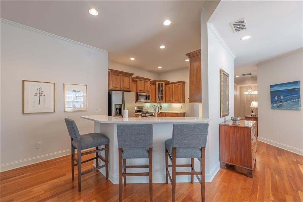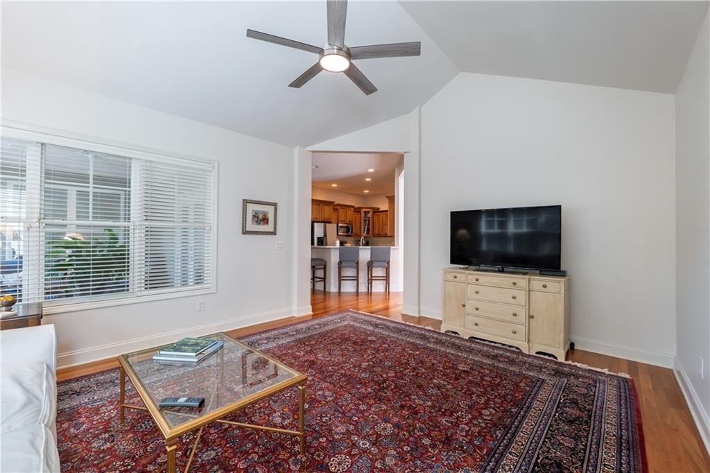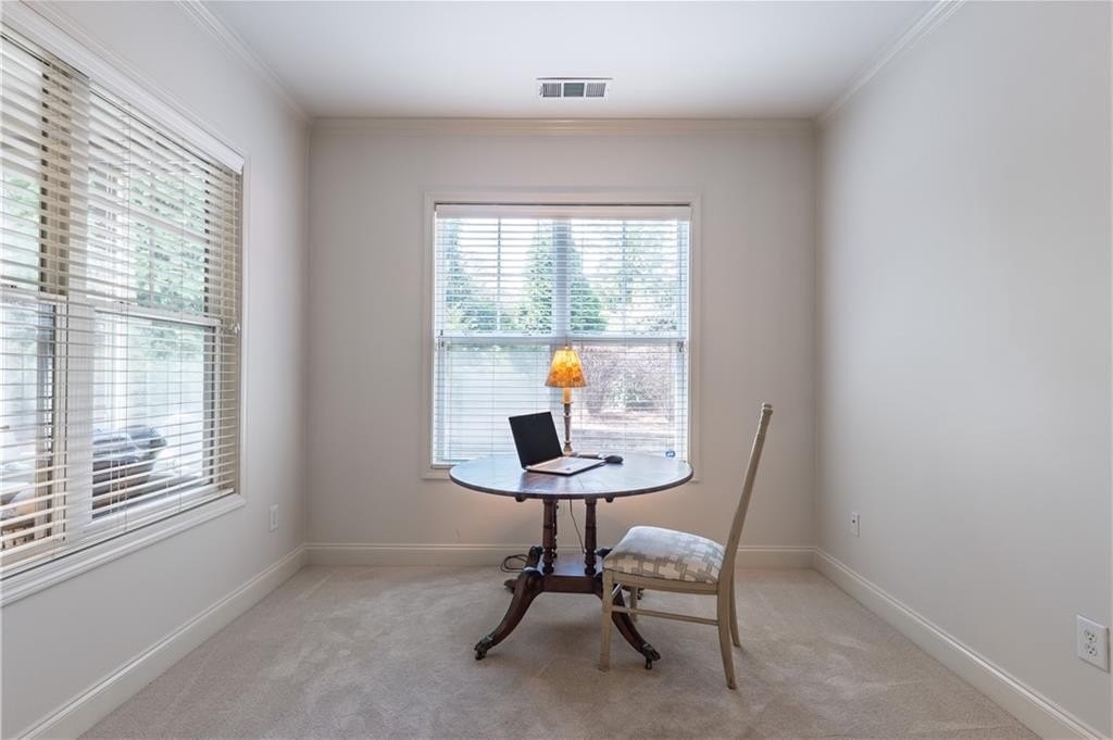 Seasons of Creekside is a charming swim and clubhouse community in a great location. Just minutes from downtown Alpharetta and Crabapple. Easy walk to Wills Park! This well maintained end unit has plenty of natural daylight offering one level living. Prior to entering the main living space you will find the spare bedrooms with a full bath. The dining room is very spacious with easy access to the kitchen. The kitchen has new quartz counter tops/back splash and warm cabinetry. The oversized main living space is ready for entertaining. The private owners suite is located in the rear of the property and has a sitting area with a view of the courtyard, an updated bathroom with a separate shower/garden tub and a custom walkin closet. Enjoy the "All Season" room with access to a private outdoor patio. The home also features an upper level climate controlled storage area that easily can be finished for an additional living space. The owner has taken great care adding new light fixtures, bathroom vanity refacing including counter tops, new HVAC, & fresh paint. Do not miss out on this rare opportunity to tour this lovely condo in a quaint community of just 27 homes in the heart of Alpharetta.