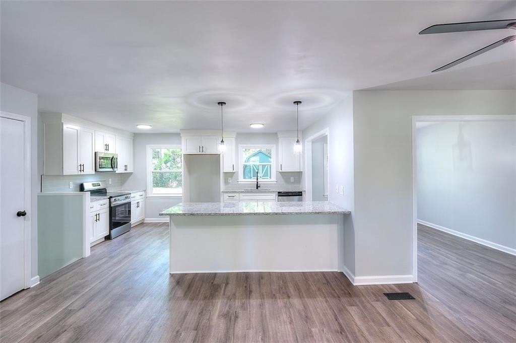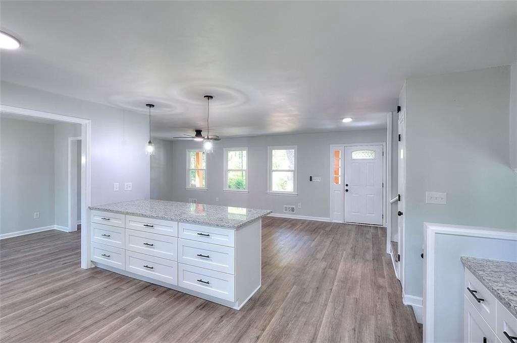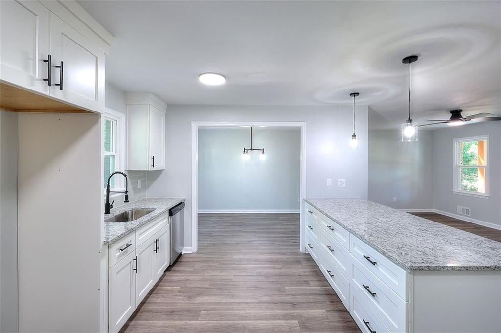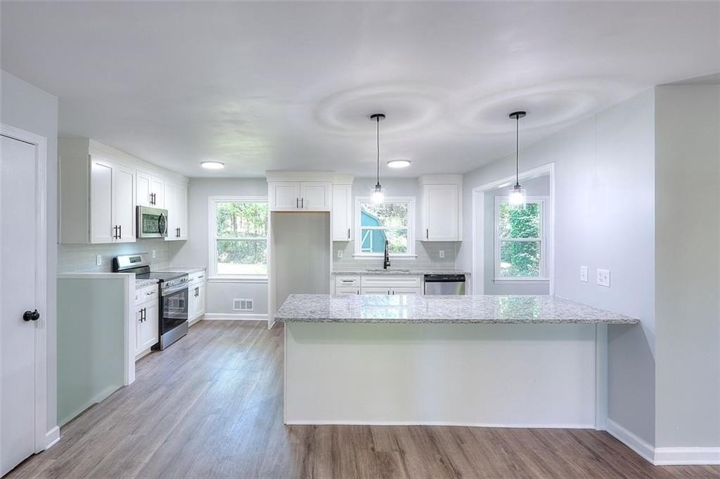 Welcome to 2538 Three Bars Drive! This home has been beautifully renovated and offers 4 bedrooms and 2.5 bathrooms. It is in the Grayson school district with very easy access to Highway 78 and shopping in Snellville and Loganville. The HVAC is new as well as all the flooring throughout the house, the water heater, all the windows, gutters, shutters, and new concrete siding. The brick exterior and the whole inside of the home has been freshly painted. The main level has an open floor plan with a large living room, dining room and gorgeous remodeled kitchen. The kitchen has new cabinets, granite countertops and new stainless steel appliances. The lower level has another living room area with a large fireplace and a half bathroom. The 4 spacious bedrooms are on the upper level as well as 2 full bathrooms. The primary bedroom has a large closet and LVP flooring. The primary bathroom has a double vanity and a lovely tiled stand up shower. The almost half acre lot has been beautifully landscaped and even has a small storage shed. No HOA!
