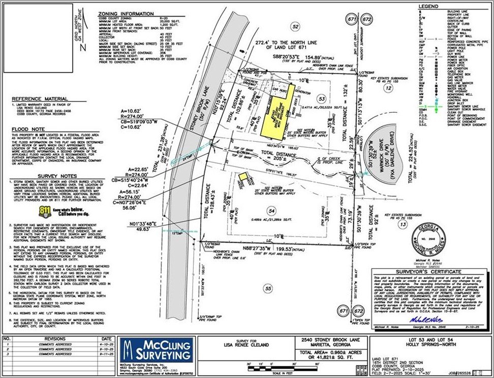 The lot is located in a strong school district and offers convenient access to Marietta Square, shopping, dining, highways, and interstates. Bring your builders and imagination to create something truly special! According to Cobb County, because the lots were platted prior to the year 2000 only a 25’ stream buffer is required on this site as noted on the survey.